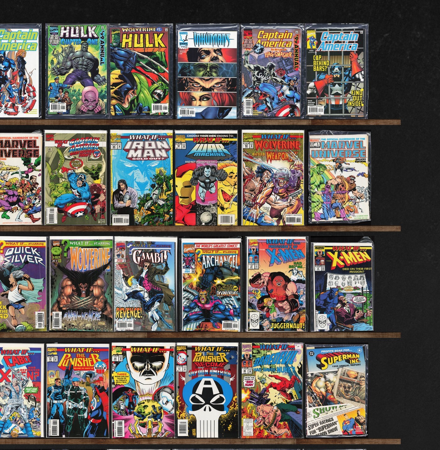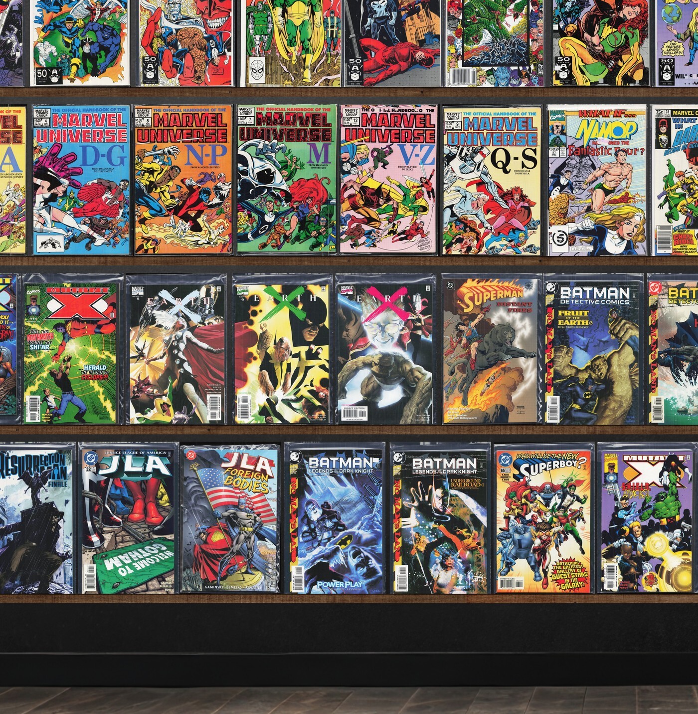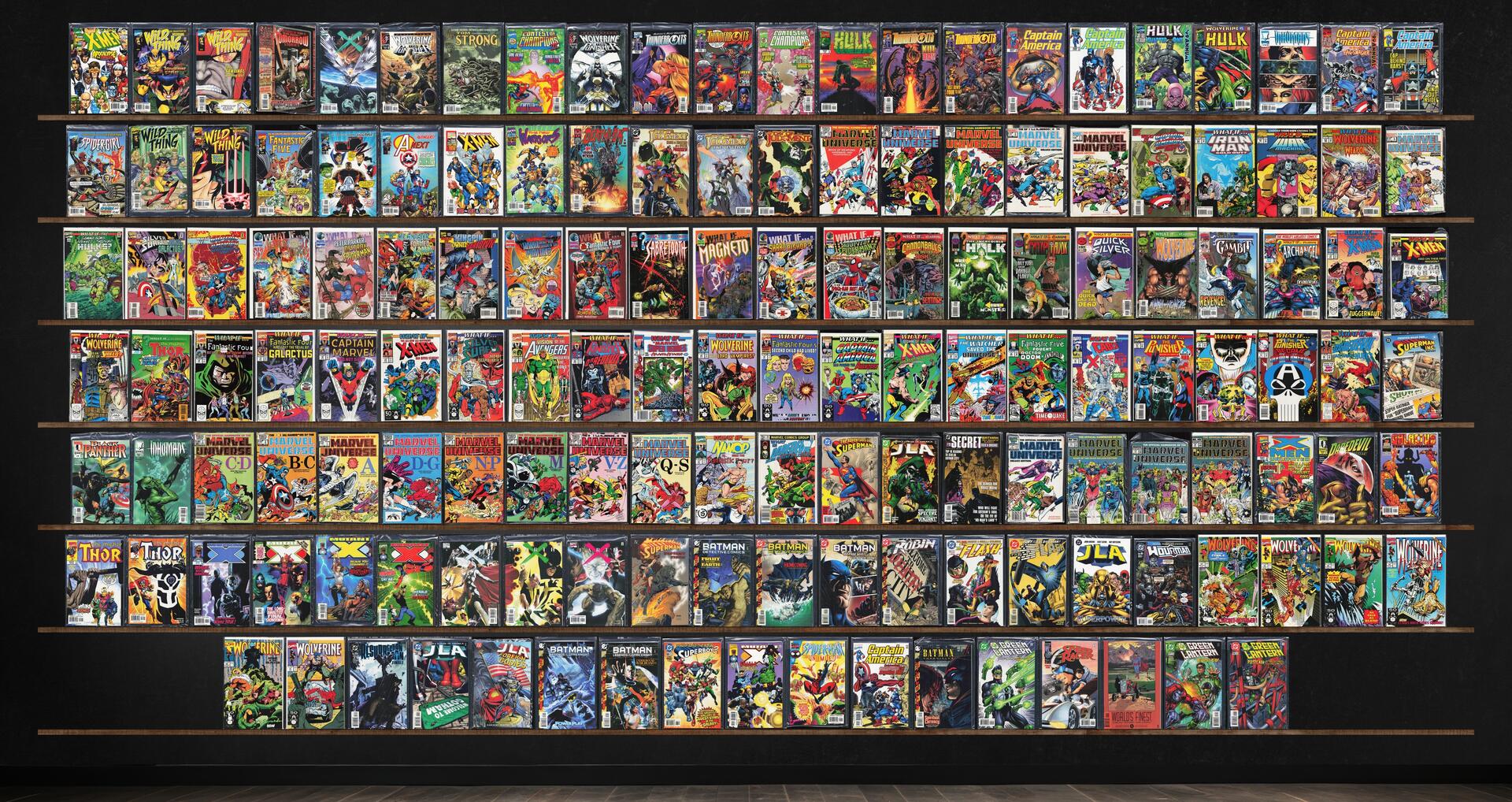 What If...?, Wolverine, Mutant X, Wild Thing, Earth X, Thunderbolts, Captain America, Day Of Judgment, Green Lantern, Wolverine/Punisher Revelation, Hulk, Inhumans, Jla, Thor, Detective Comics, The Flash, The Uncanny X-Men, Tomorrow Stories, Tom Strong, Spider-Girl, Fantastic Five, J2, A Next, Astonishing X-Men, The New Warriors, Deathlok, Black Panther, What If?, Adventures Of Superman, X-Men Unlimited, Daredevil, Galactus The Devourer, Batman 80 Page Giant, Robin, Hourman, Resurrection Man, Superboy, Spider-Man Unlimited, Batman Chronicles (1995), Speed Racer