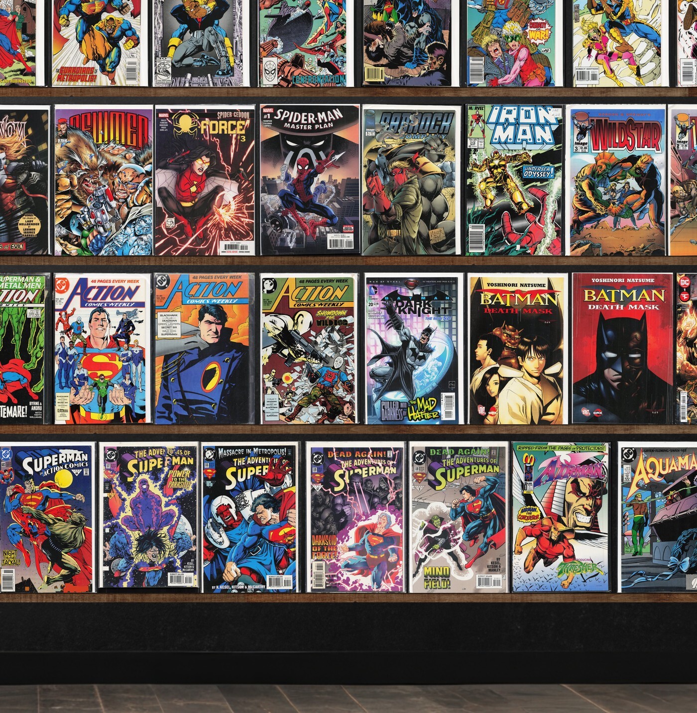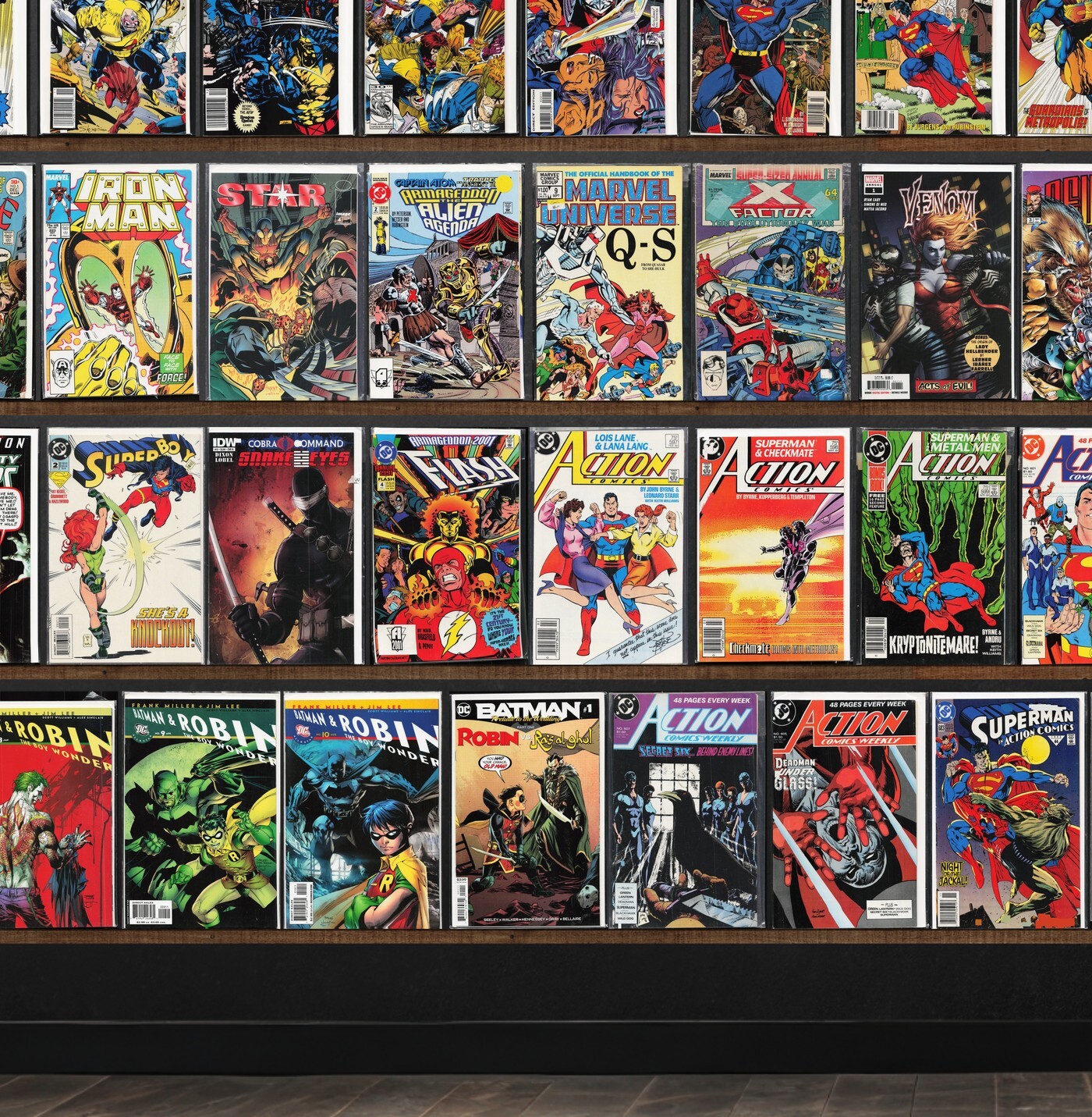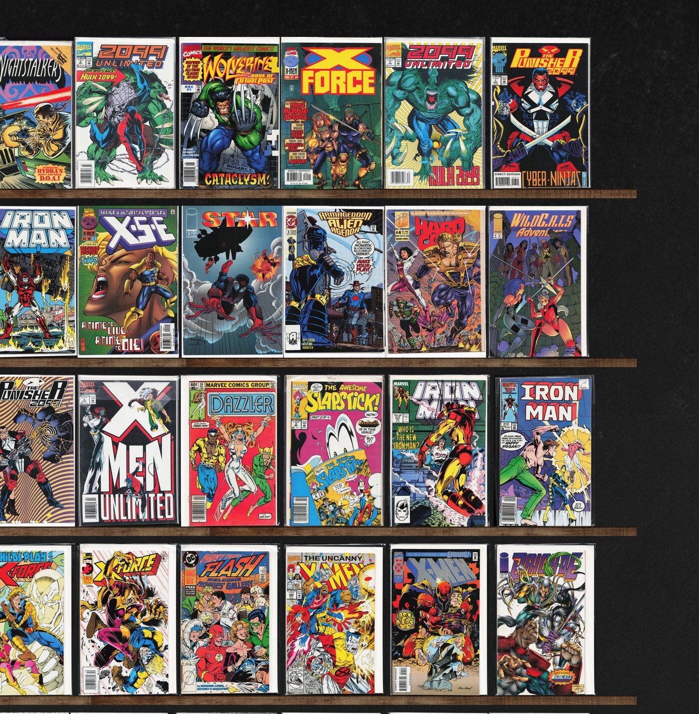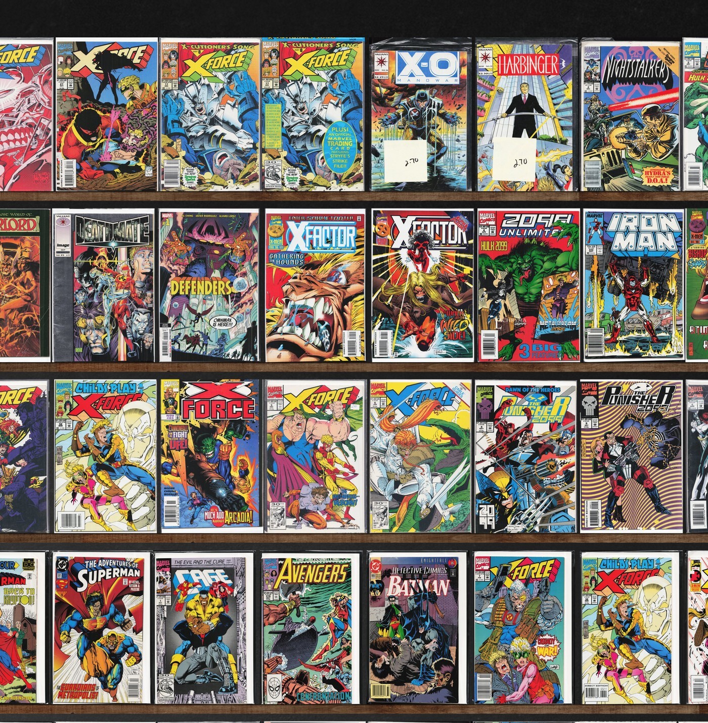 X-Force, Iron Man, Punisher 2099, X-Factor, Adventures Of Superman, Action Comics, Action Comics Weekly, X-Men, 2099 Unlimited, Defenders, Wildstar: Sky Zero, Ravage 2099, Star, Bloodshot, Superman, Detective Comics, Batman: Death Mask, X-O Manowar, Harbinger, Nightstalkers, X-Man, Warlord, Deathmate, Xse, Hardcase, Wildc.A.T.S Adventures, Shadowman, The Punisher, Magnus Robot Fighter, X-Men Unlimited, Dazzler, Slapstick, Cage, The Avengers, The Flash, The Uncanny X-Men, Brigade, Doom'S Iv, Darkhawk, Karate Kid, X-Factor Annual, Newmen, Spider-Force, Badrock & Company, Basketful Of Heads, Iron Fist, The Mighty Avengers, Superboy, Snakes Eyes, The Flash Annual, Aquaman