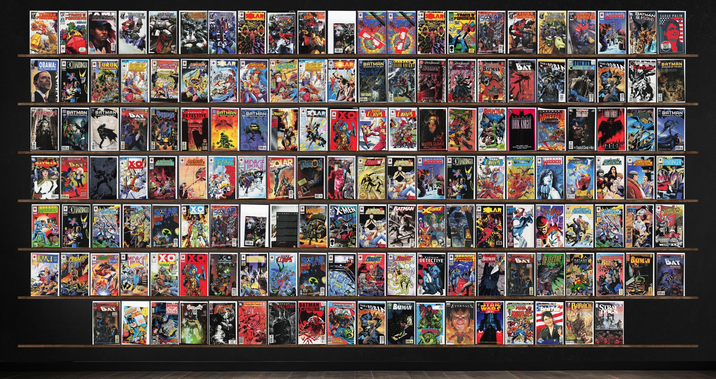 Archer & Armstrong, Detective Comics, Batman, Magnus Robot Fighter, Eternal Warrior, X-O Manowar, Harbinger, The H.A.R.D. Corps, The Transformers, Batman: Gotham Knights, Chaos Effect: Epilogue, Transformers: Generation 1, Turok, Dinosaur Hunter, Turok, Unity, Troublemakers, The Uncanny X-Men, X-Force, Rai, The Batman Adventures, Batman: Year 100, Defenders, Eternals, Amazing Adventures, Barack The Barbarian, Stray Dogs