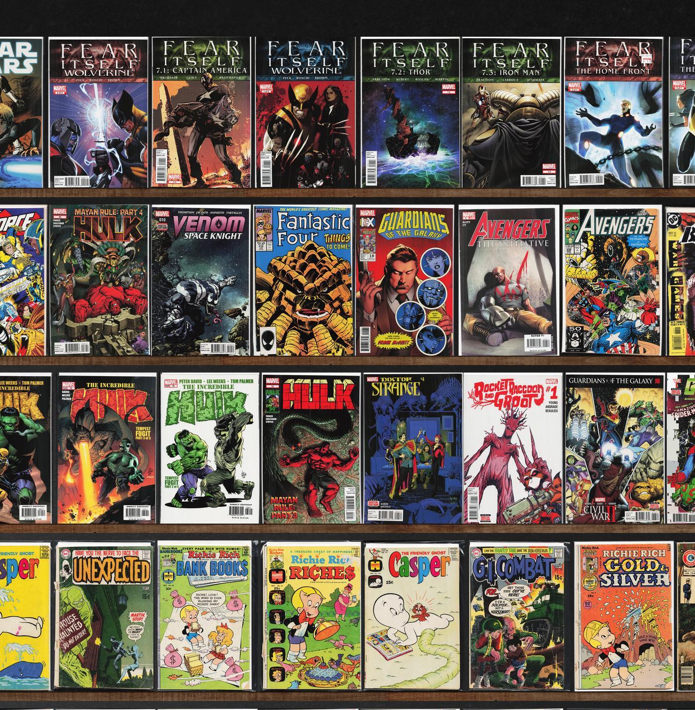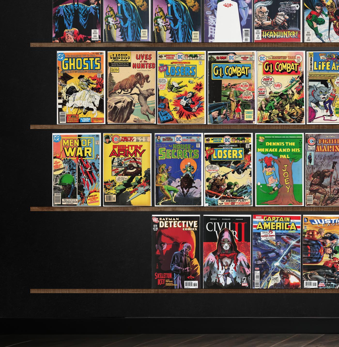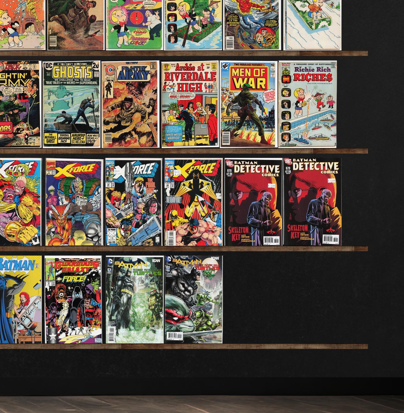 Batman, Detective Comics, X-Force, Fightin' Marines, Fightin' Army, Fear Itself: Wolverine, Star Wars, Fear Itself, Hulk, Venom: Space Knight, Incredible Hulk, G.I. Combat, Civil War Ii, Cable, Fantastic Four, Action Comics, Classics Illustrated, Richie Rich Riches, Ghosts, Our Fighting Forces, Life With Archie, House Of Secrets, Men Of War, Puma Blues (1986), Invincible Iron Man, Avengers: The Initiative, Avengers West Coast, Doctor Strange, Casper'S Ghostland, Pep Comics, The Unexpected, Richie Rich Millions, Attack, Billy The Kid, Richie Rich Fortunes, Justice League, Batman: Europa, Superman