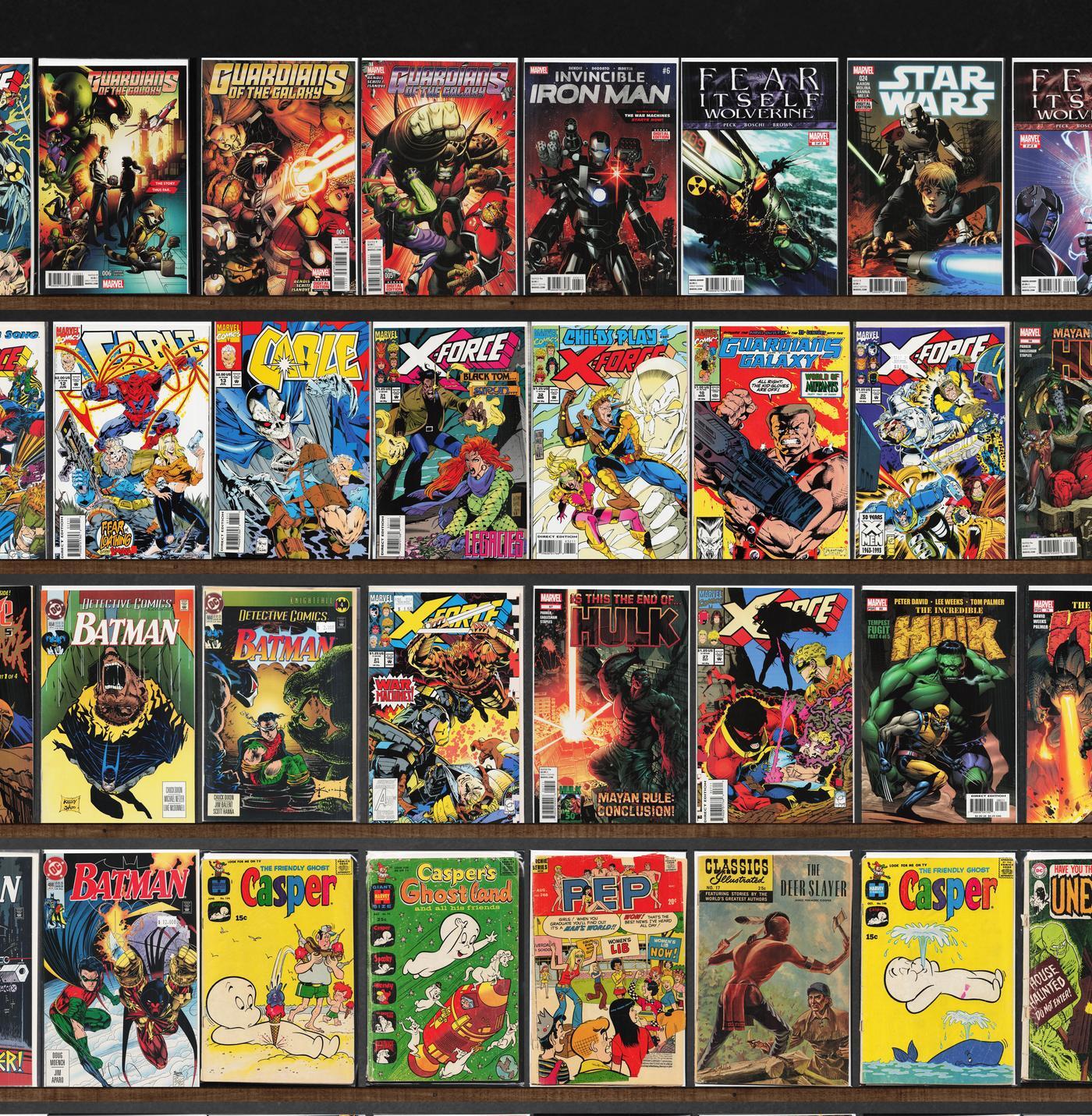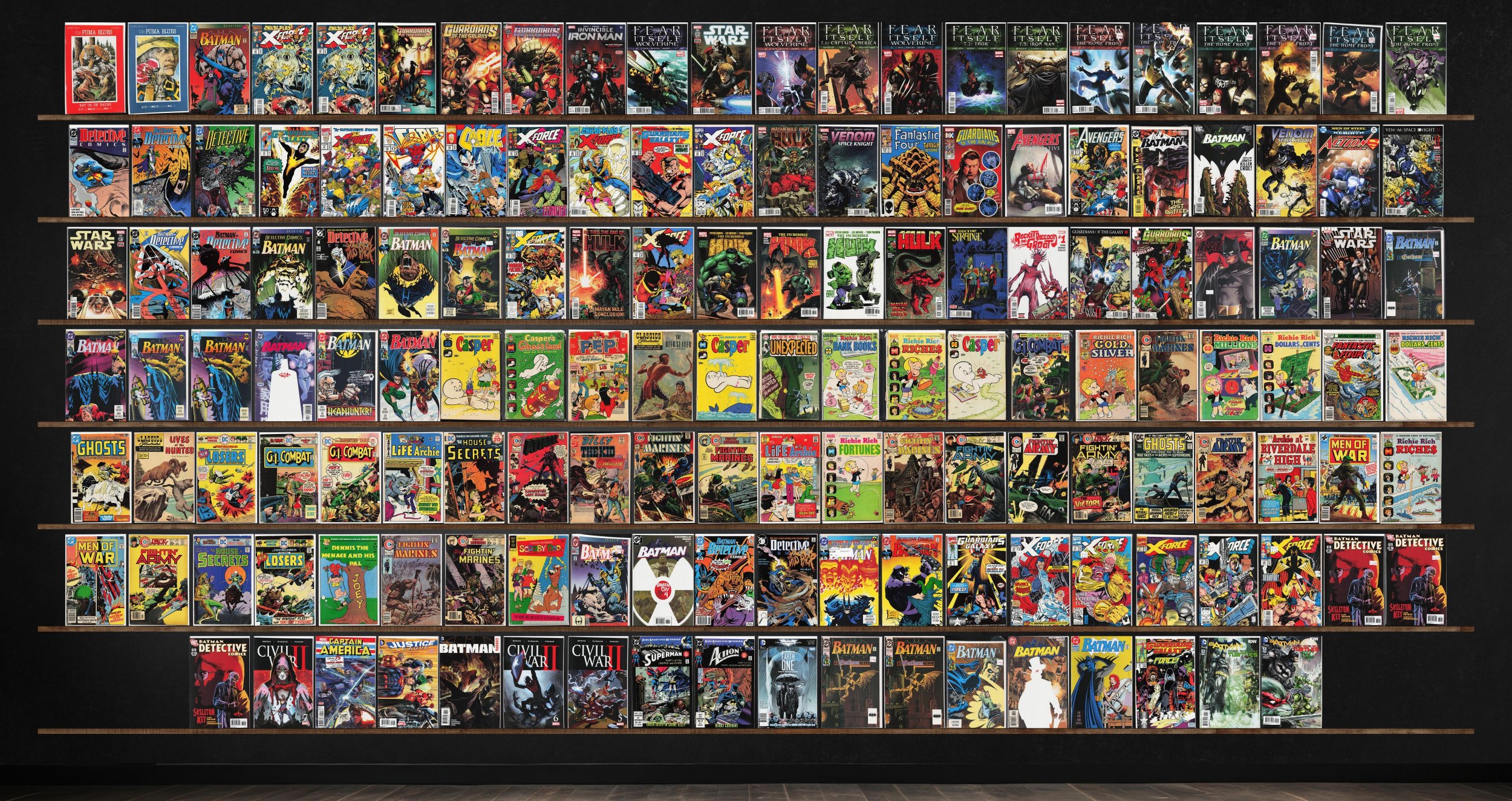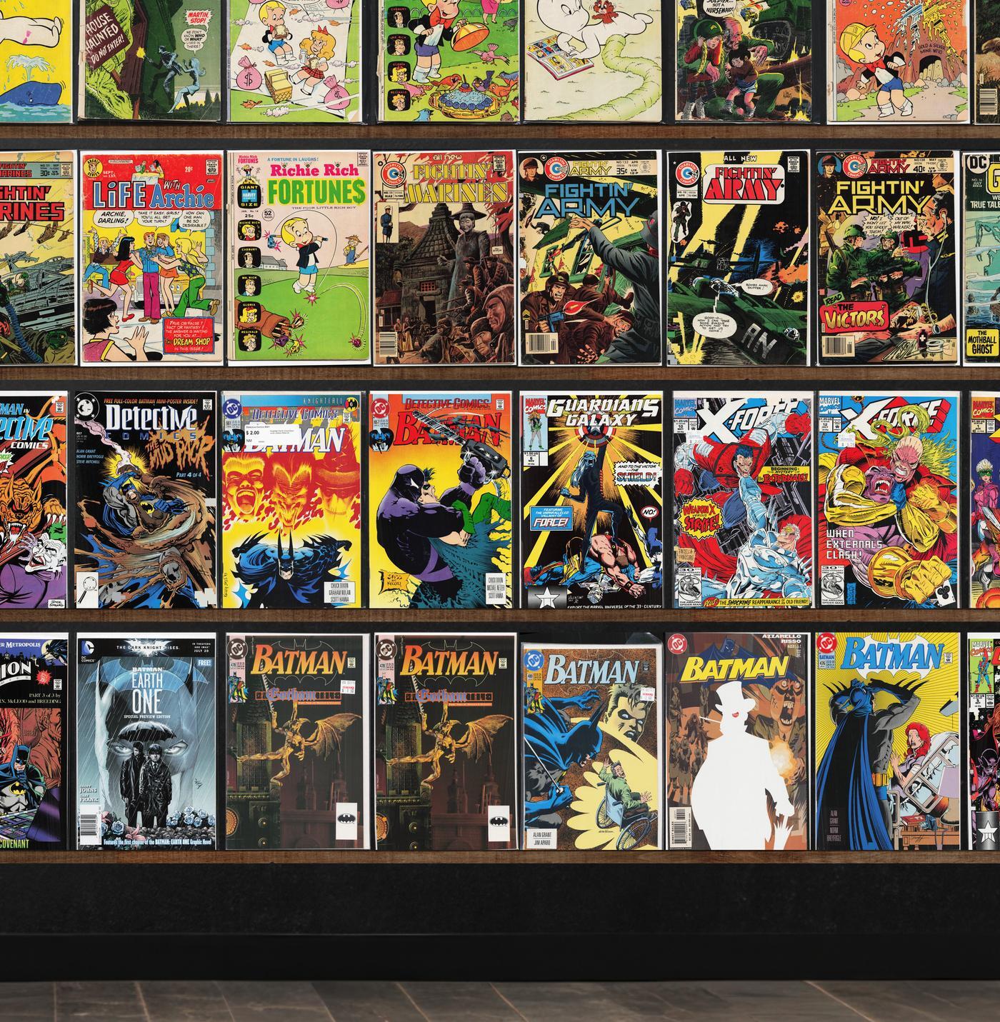 Batman, Detective Comics, X-Force, Fightin' Marines, Fightin' Army, Fear Itself: Wolverine, Star Wars, Fear Itself, Hulk, Venom: Space Knight, Incredible Hulk, G.I. Combat, Civil War Ii, Cable, Fantastic Four, Action Comics, Classics Illustrated, Richie Rich Riches, Ghosts, Our Fighting Forces, Life With Archie, House Of Secrets, Men Of War, Puma Blues (1986), Invincible Iron Man, Avengers: The Initiative, Avengers West Coast, Doctor Strange, Casper'S Ghostland, Pep Comics, The Unexpected, Richie Rich Millions, Attack, Billy The Kid, Richie Rich Fortunes, Justice League, Batman: Europa, Superman