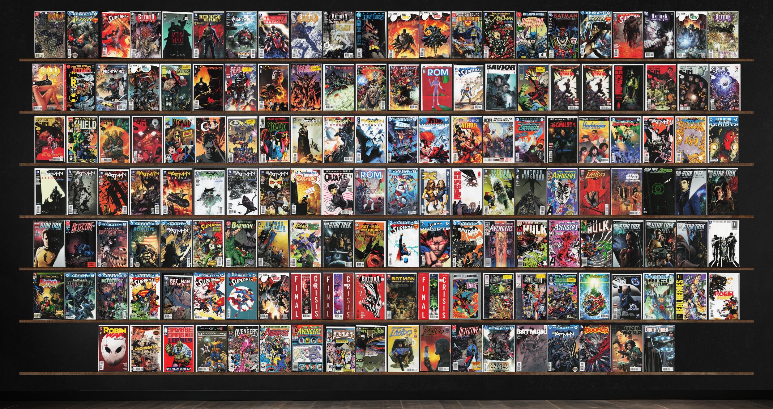 Batman Eternal, Detective Comics, Superman, Original Sin, The Avengers, Convergence, Star Trek, Batman, Action Comics, Nightwing, Savage Dragon, Deathblow, Rom, Ultimate End, Rumble, Nomad, Harley Quinn, Batman: Dar ... Read More