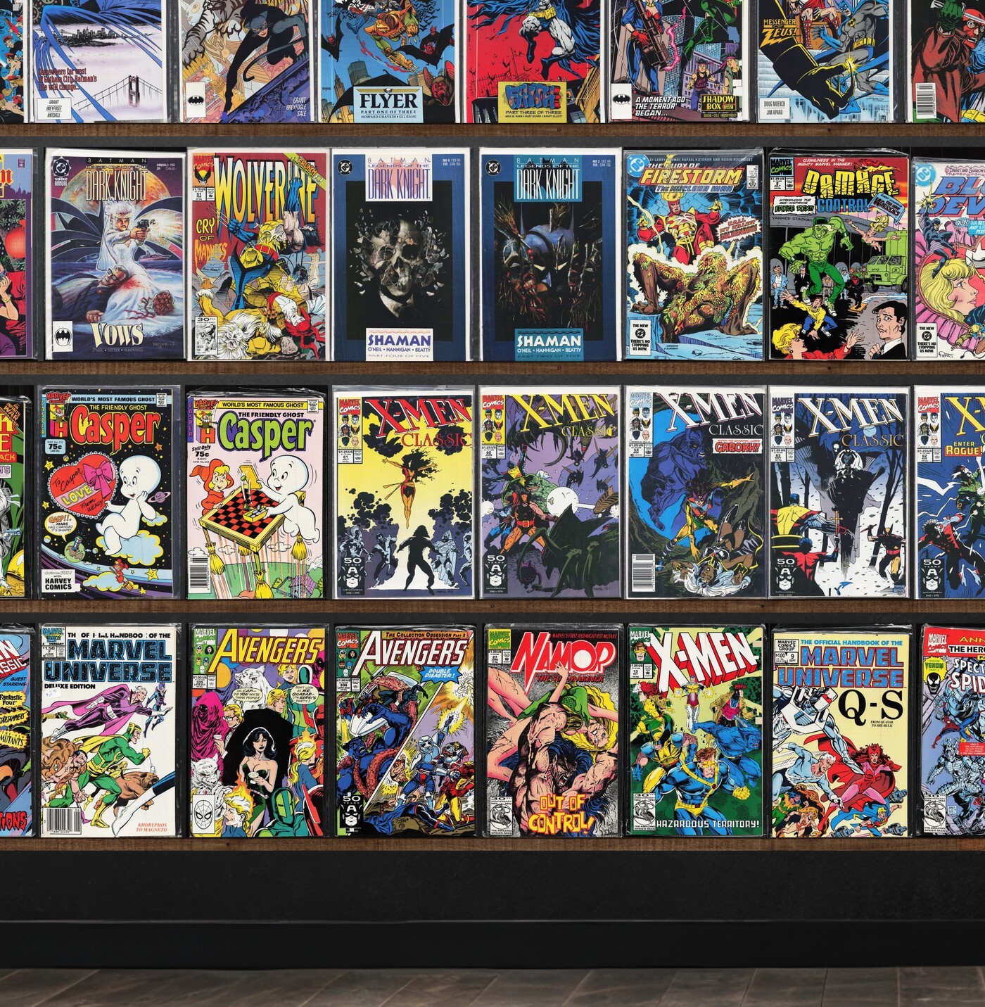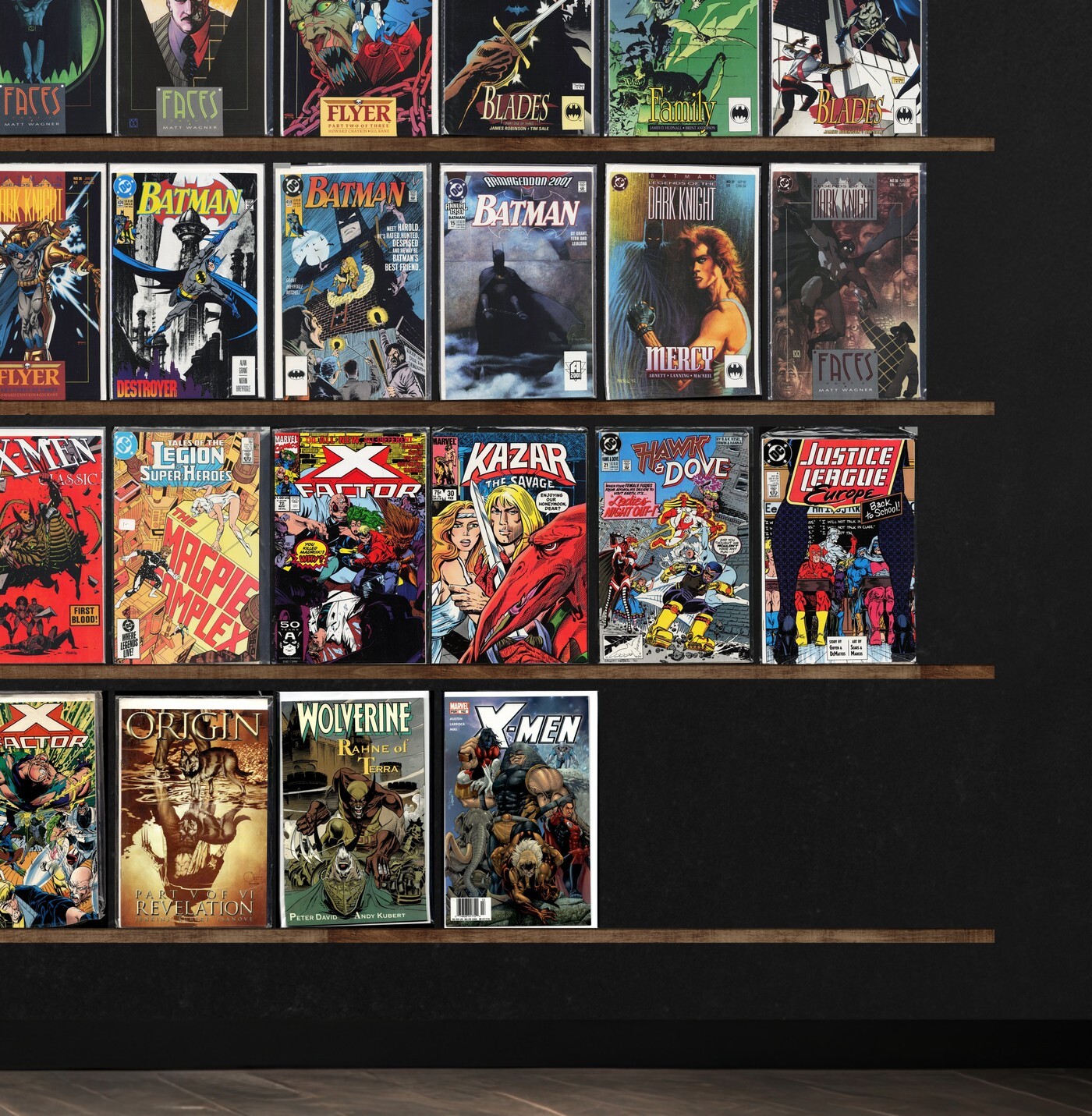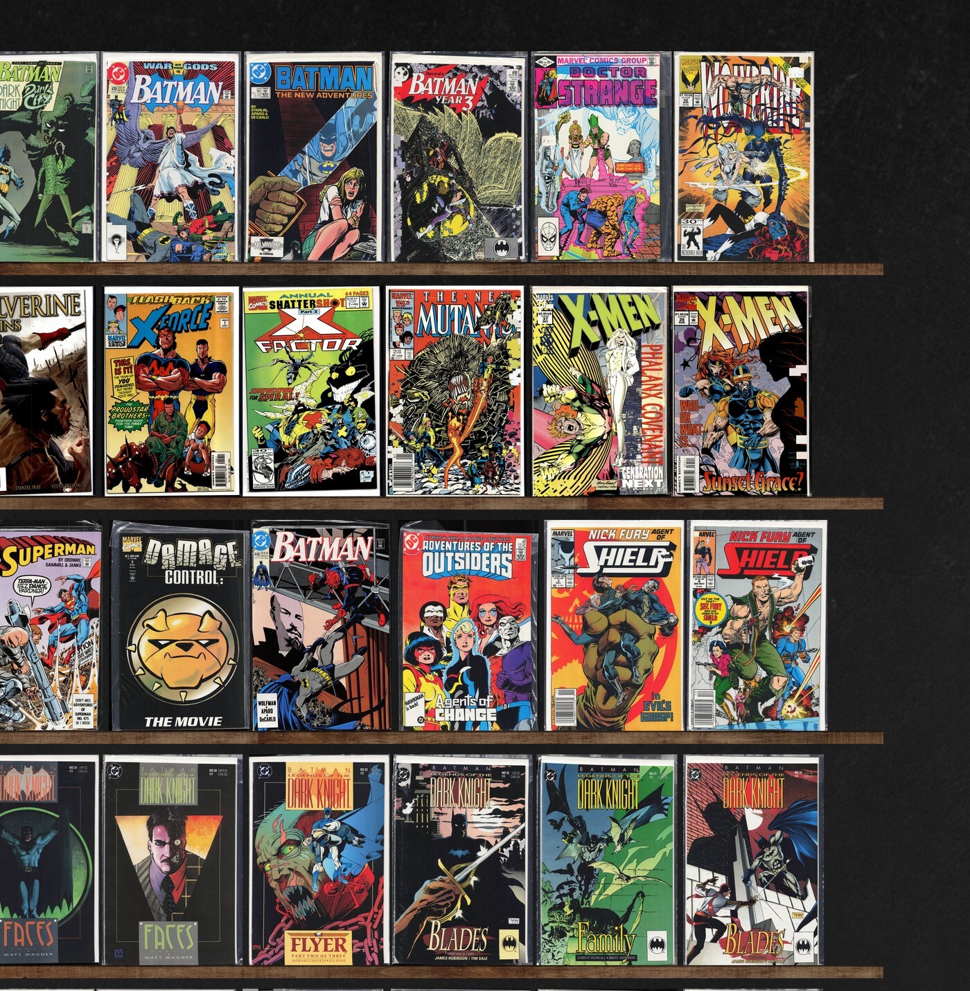 Batman, X-Men Classic, X-Men, The New Mutants, The Flash, X-Men Annual, X-Force Annual, The Avengers, X-Factor Annual, Wolverine, Origin, Damage Control, Robocop, Planet Terry, Archie, The Punisher, Betty And Veronica, Doctor Strange, The Incredible Hulk, New X-Men, X-Men Unlimited, Wolverine: Origins, X-Force, Wasteland, Fantastic Four, The Spectacular Spider-Man, Superman, Batman: Gotham Nights, Blue Devil, Batman Annual, E Man, Secret Defenders, Wonder Man, X-Factor, Ka Zar The Savage, Hawk And Dove, Justice League Europe, Justice League America, Namor, The Sub Mariner
