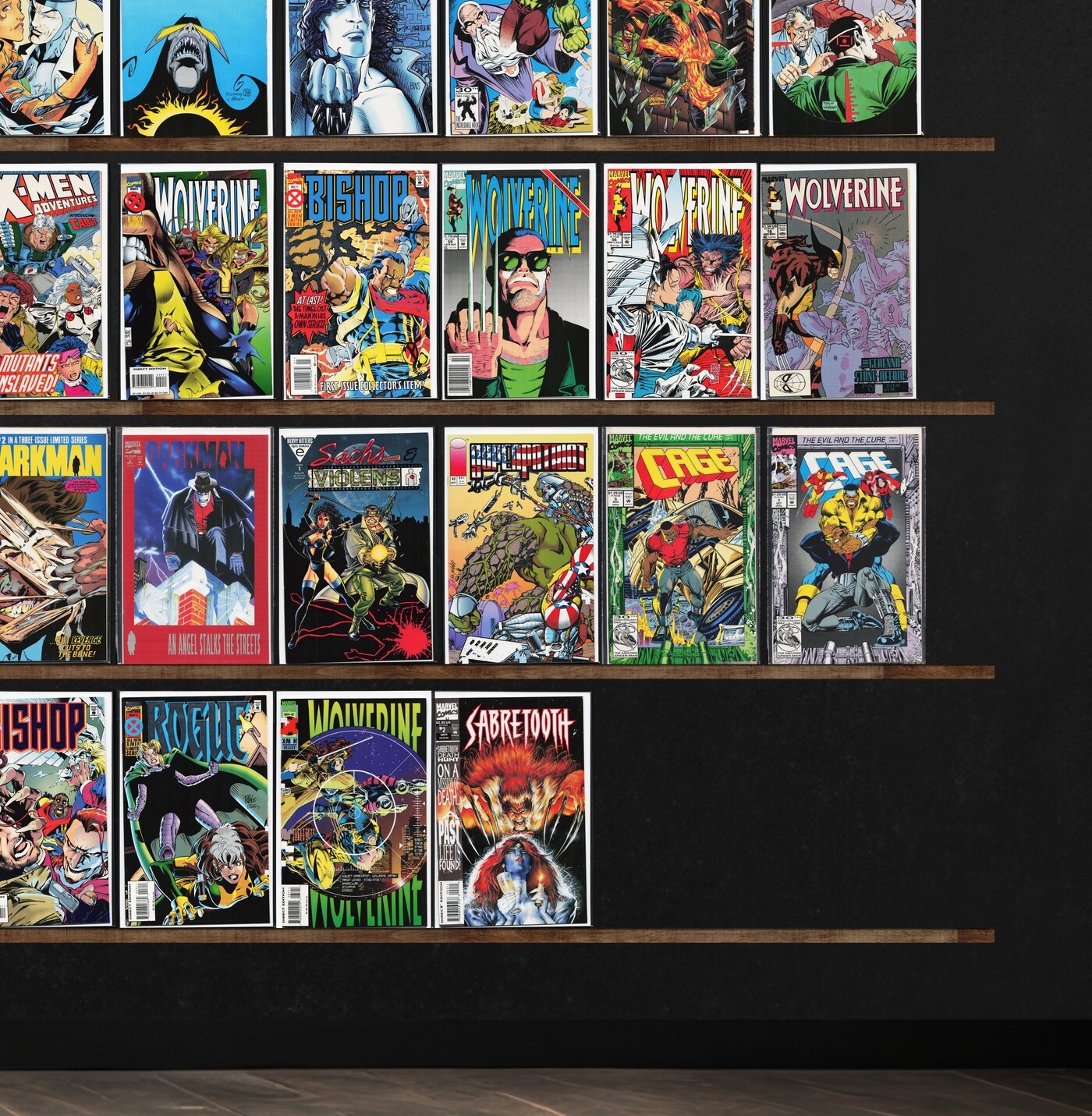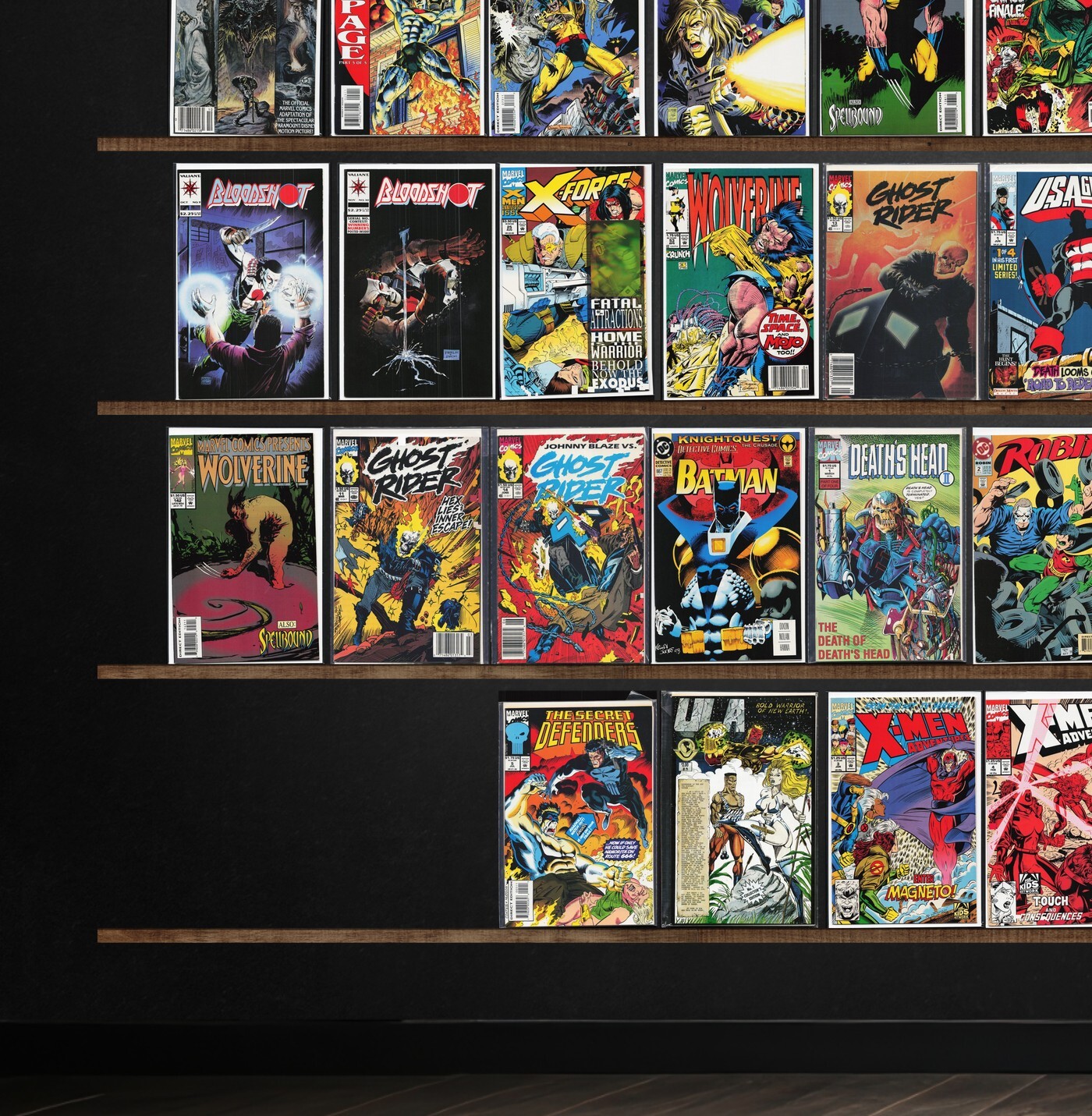 Bloodshot, Wolverine, Eternal Warrior, X-Men 2099, Marvel Comics Presents, X-Men Adventures, Bishop, Cage, The Incomplete Death&, Ghost Rider, Sabretooth, X-Man, Storm, Darkman, Gambit, Killraven, Magneto Dark Seduction, X-Nation 2099, Magneto, X-Universe, Dragonslayer, The Incredible Hulk, X-Force, U.S.Agent, Mystique & Sabretooth, Detective Comics, Death&, Robin, Metal Men, Tribe, Sachs & Violens, Superpatriot, Secret Defenders, Elftrek, G.I. Joe, Iceman, Rogue