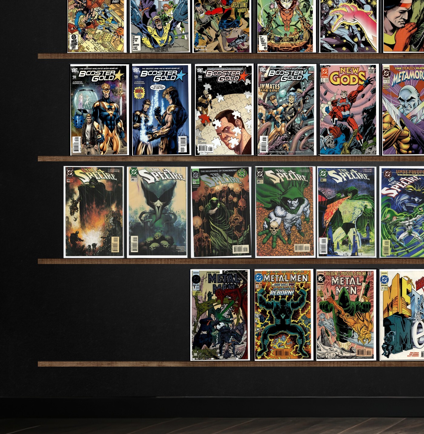 Booster Gold, The Spectre, Blue Devil, Wanderers, Metal Men, Blue Beetle, The Heckler, New Gods, Metamorpho, The New Guardians, Primal Force, The Phantom Stranger, Sword Of Sorcery, Deadman, Enginehead