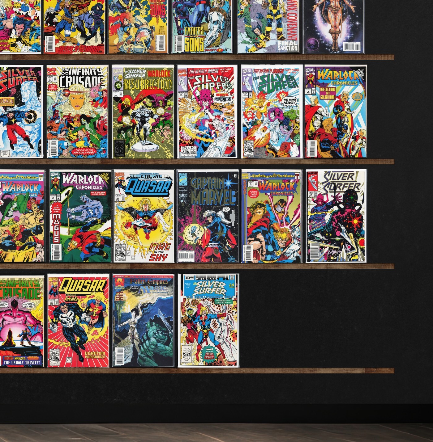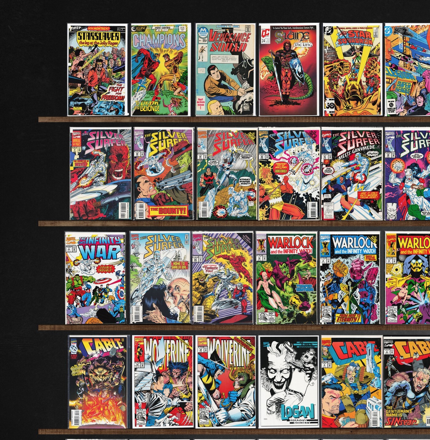 Cable, Silver Surfer, Quasar, Warlock Chronicles, The Infinity Crusade, Starslayer, The Director&, Silver Surfer Annual, The Infinity War, Silver Surfer/Warlock: Resurrection, Wolverine, The New Dnagents, Starslayer, Champions, All Star Squadron, Legion Of Super Heroes, Vengeance Squad, Slaine The King, Nexus, Crossfire, Crossfire And Rainbow, Tekworld, Starblast, Captain Marvel, The Marksman, Time Twisters