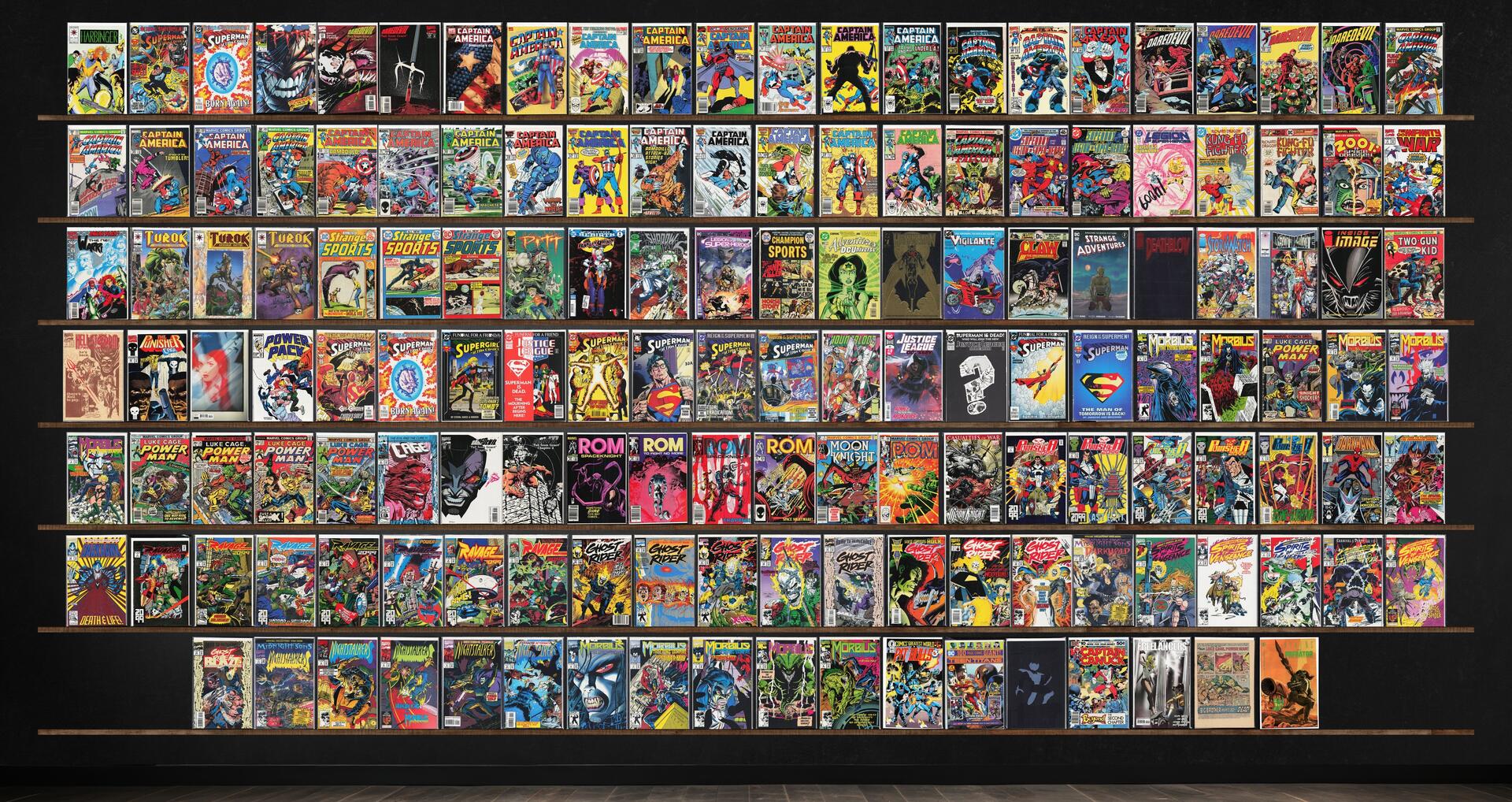 Captain America, Action Comics, Daredevil, Ghost Rider, Ravage 2099, Power Man, Rom, The Punisher 2099, Nightstalkers, Turok, Dinosaur Hunter, Strange Sports Stories, Darkhawk, Pitt, Justice League America, Superman ... Read More
