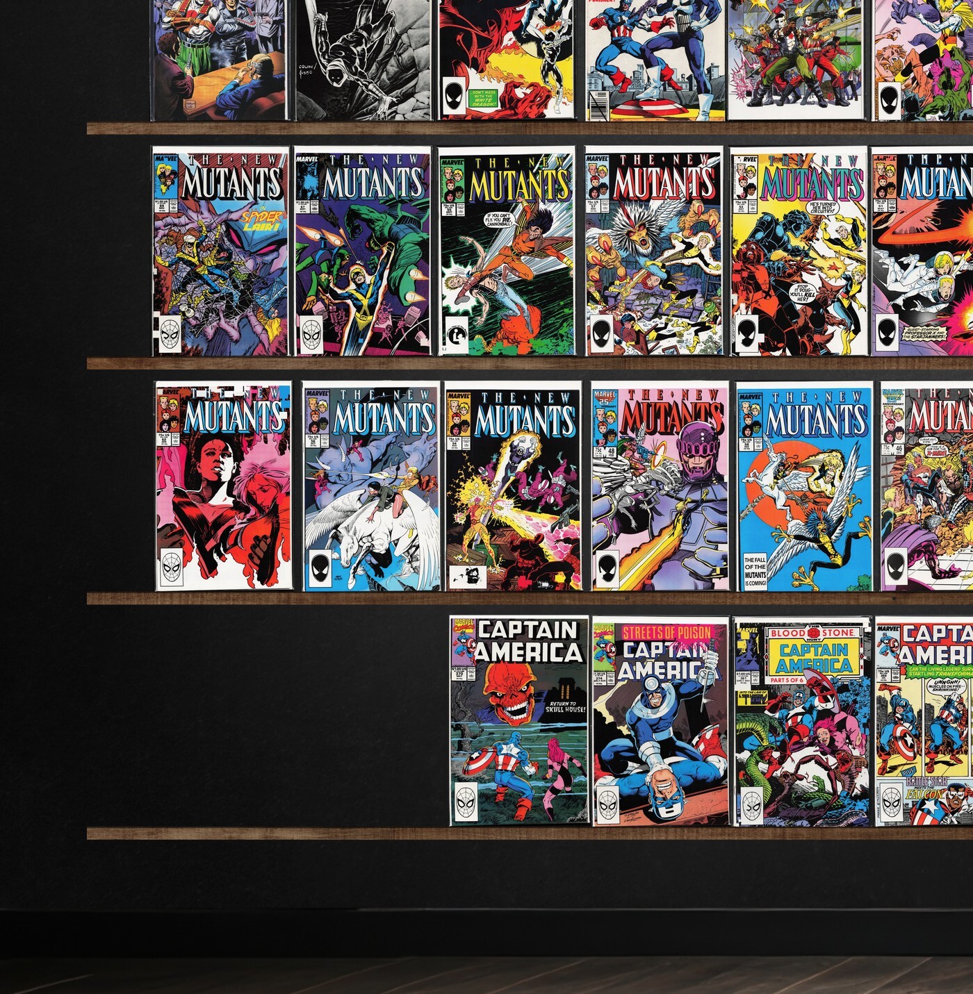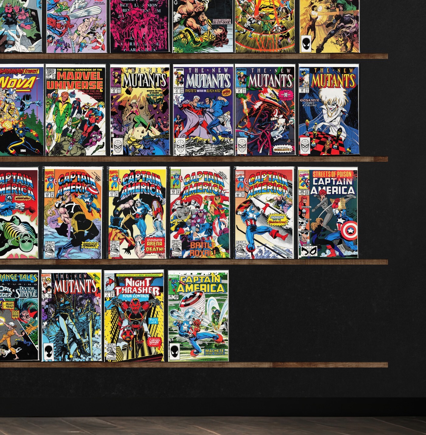 Captain America, The New Mutants, Cable, Nova, Namor, The Sub Mariner, Strange Tales, Marvel Team Up, Balder The Brave, Strikeforce: Morituri, Mephisto Vs. ..., The Avengers, X-Men Classic, Bloodshot, Eternal Warrior, Moon Knight, The H.A.R.D. Corps, Nightmask, Marvel Team Up Annual, Rai