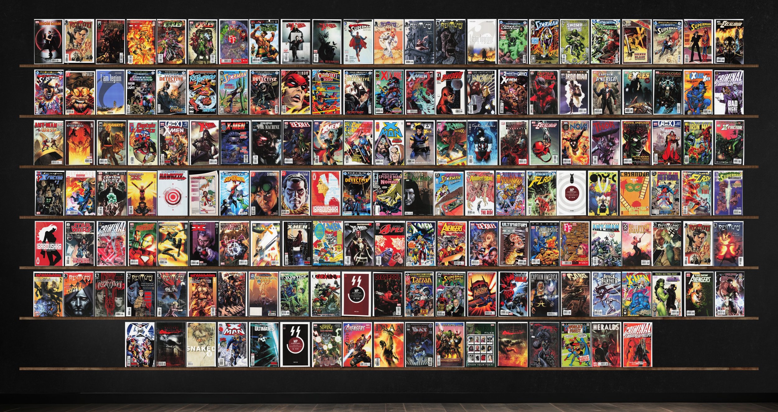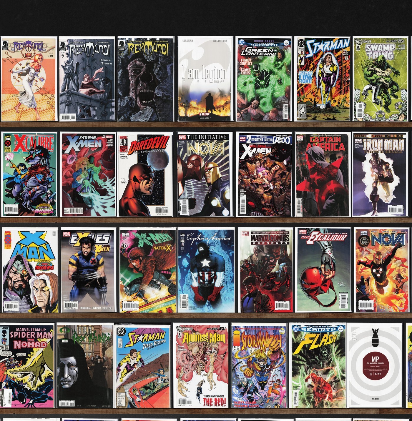 Captain America, Ultimate X-Men, Exiles, Starman, Detective Comics, X-Men, Rex Mundi, Green Lanterns, The Flash, Criminal, The Manhattan Projects, Invincible Iron Man, Ff, I Am Legion, Superman, New Excalibur, Impulse, X-Treme X-Men, Nova, Iron Man, New Exiles, X-Man, X-Men: Legacy, Marvel Comics Presents, X-Factor, Welcome To Hoxford, Dark Wolverine, Incredible Hercules, All Star Superman, Swamp Thing, Silverblade, Red Tornado, Camelot 3000, X-Calibre, Daredevil, Ant Man & Wasp, Ultimate Spider-Man, Runaways, War Machine, Thor, Uncanny X-Men, Ultimate Doom, Ultimate Comics Hawkeye, New Super Man, Marvel Team Up, Animal Man, Stormwatch, Ody C, Casanova, Superman: Birthright, Star Wars, New Warriors, Universe X, Ultimate Comics X-Men, Marvel Apes, Avengers: Prime, The Irredeemable Ant Man, Justice League, Gemini, Deadpool, Tarzan, Secret Avengers, Hulk, Cable, Black Panther, She Hulk, New Avengers, Avengers Vs. X-Men, Snaked, Ultimate Comics Ultimates, Avengers: X-Sanction, Drax The Destroyer, Franken Castle, The Darkness, World'S Finest Comics, Heralds