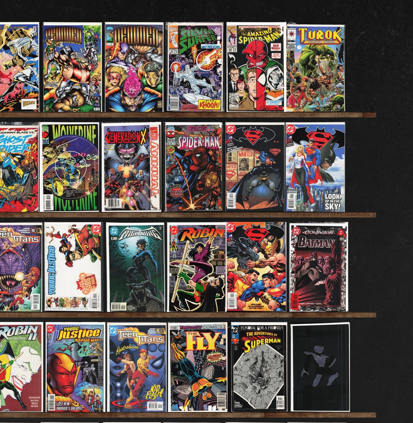 Death'S Head Ii, Daredevil, Robin, Wolverine, Prophet, Teen Titans, The New Warriors, Detective Comics, Darkhawk, The Sensational Spider-Man, Superman / Batman, The Others, The Uncanny X-Men, Newmen, Spider-Man, Thanos, Fantastic Four, Iron Man, Ghost Rider, The Final Night, Superman, Nightwing, Adventures Of Superman, Savage Dragon, Stormwatch, Daredevil Annual, Pitt, 1963 (1993 Image), The Ray, Ragman, Power & Glory, Mantra, Hero Premiere Edition, Silver Surfer, The Amazing Spider-Man, Turok, Dinosaur Hunter, Magnus Robot Fighter, Spider-Man: Chapter One, What If...?, Showcase '94, Robin Annual, Superman/Doomsday: Hunter/Prey, Catwoman, Robin 3000, Batman, The Fly, Shadowhawk Ii, Wetworks, The Kindred, Deathmate, Shadowhawk, Youngblood Battlezone, Namor, The Sub Mariner, Death&, Darkhawk Annual, Phantom Force