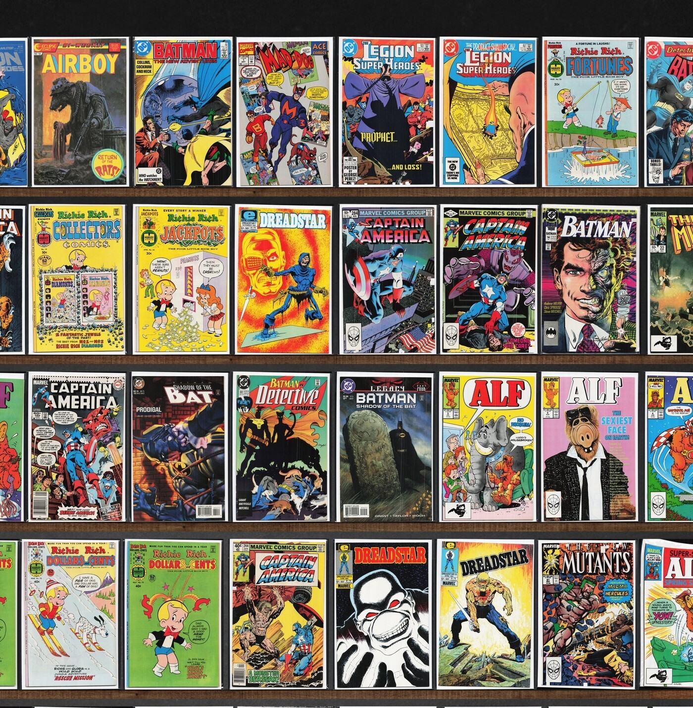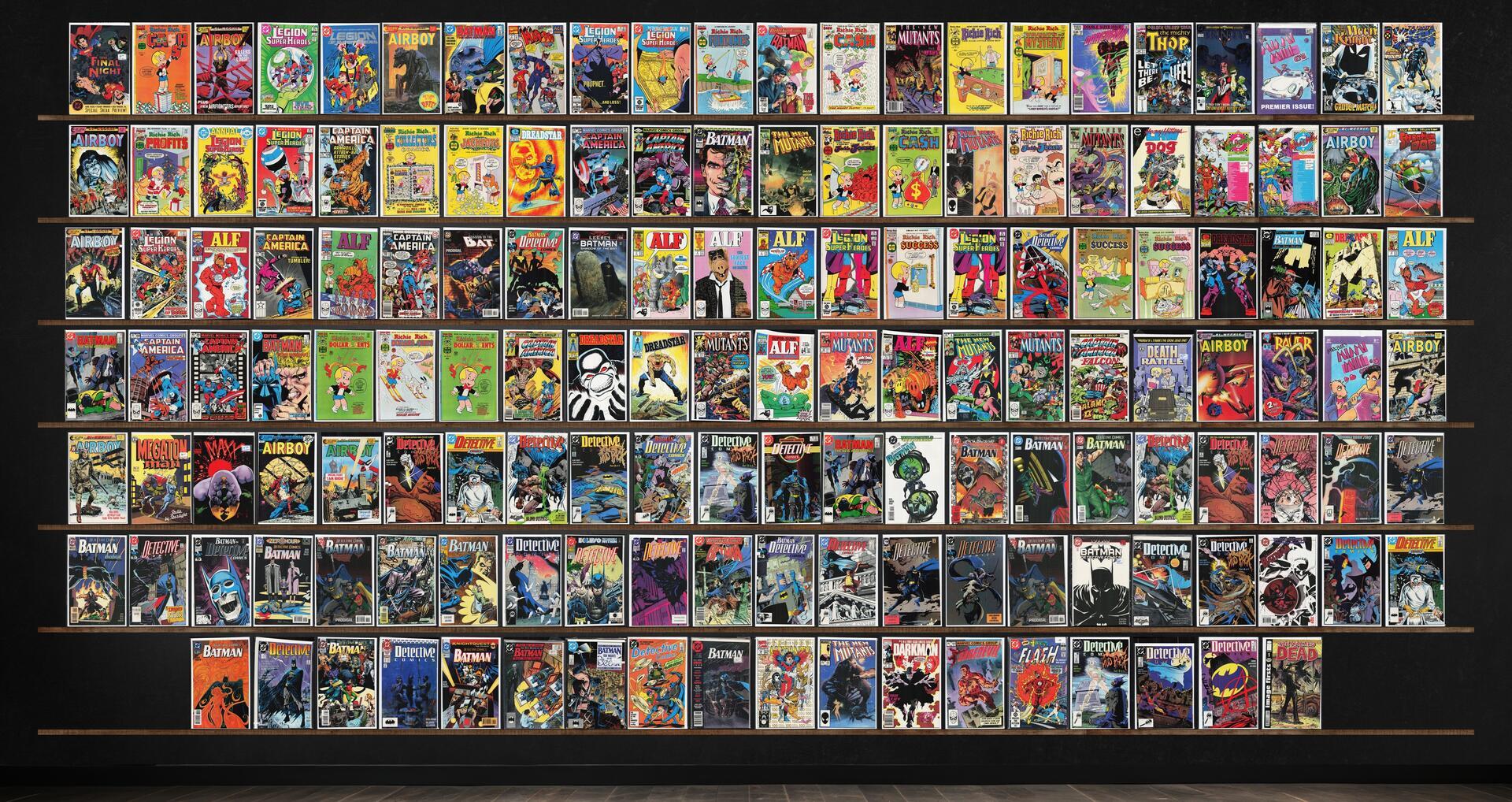 Detective Comics, Airboy, The New Mutants, Captain America, Legion Of Super Heroes, Batman, Alf, Detective Comics Annual, Richie Rich Cash, Daredevil, Miami Mice Comic, Batman Annual, The Final Night, Mad Dog, Richie Rich Fortunes, Richie Rich, The Mighty Thor, Dc Universe: Trinity, Amazing X-Men, Richie Rich Profits, Harvey Collectors Comics, Richie Rich Jackpots, Lawdog, Strontium Dog, Alf* Annual, Death Rattle, Raver, Megaton Man, The Maxx: Maxximized, Darkman, The Flash