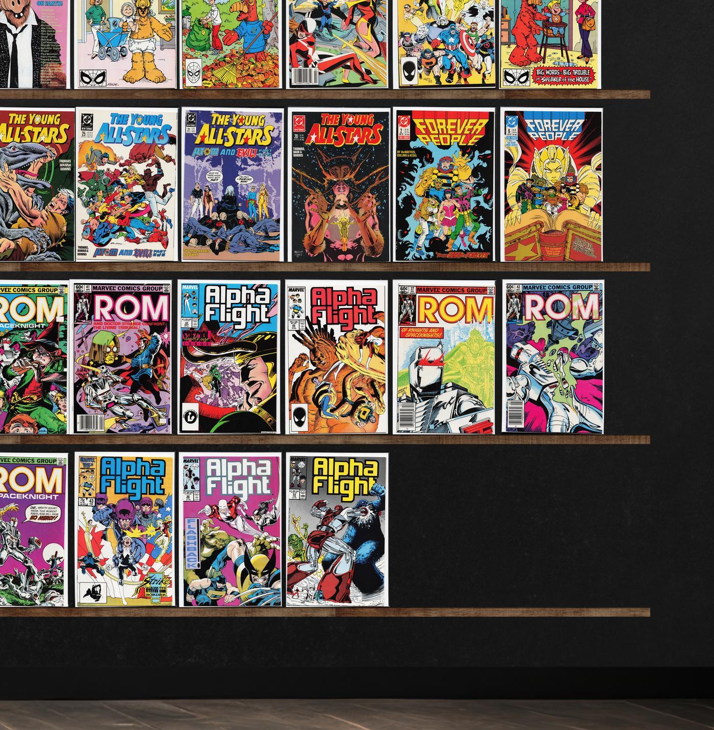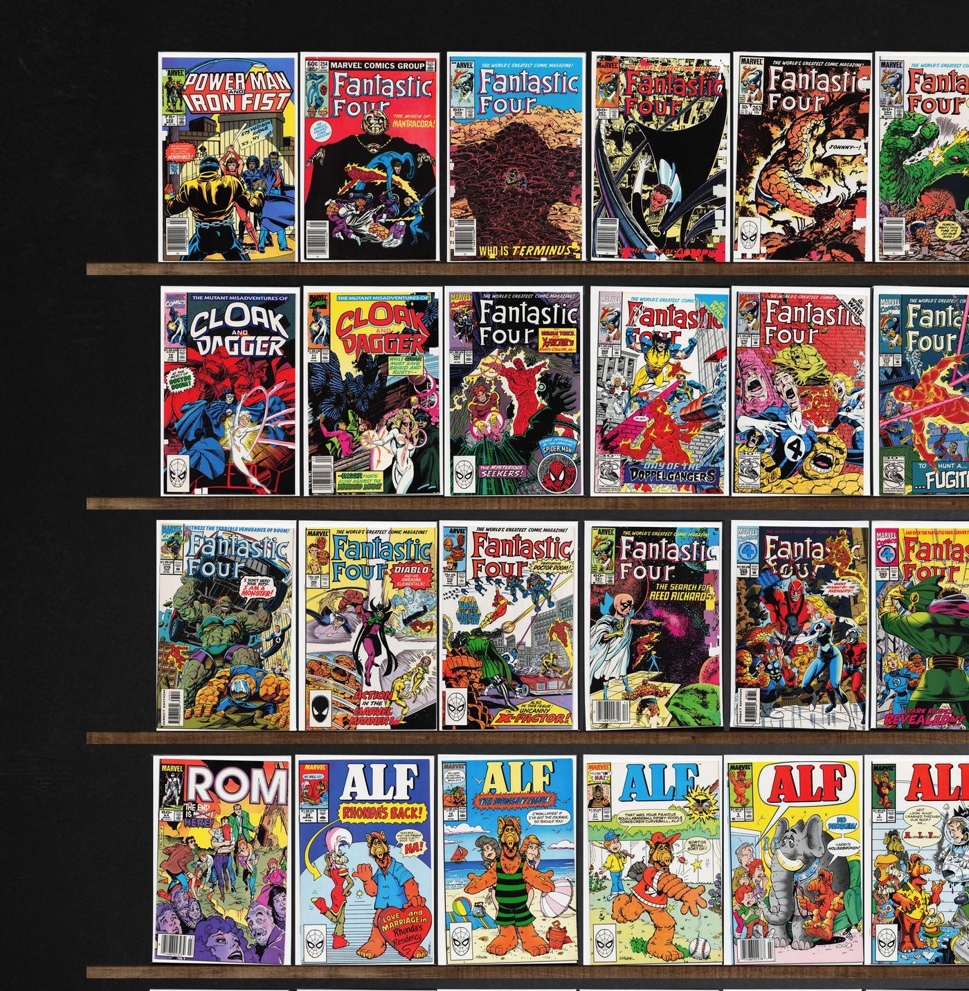 Fantastic Four, Rom, Alpha Flight, Alf, Young All Stars, Forever People, Power Pack, Blackhawk, Ms. Marvel, Batman, Rom Annual, Damage Control