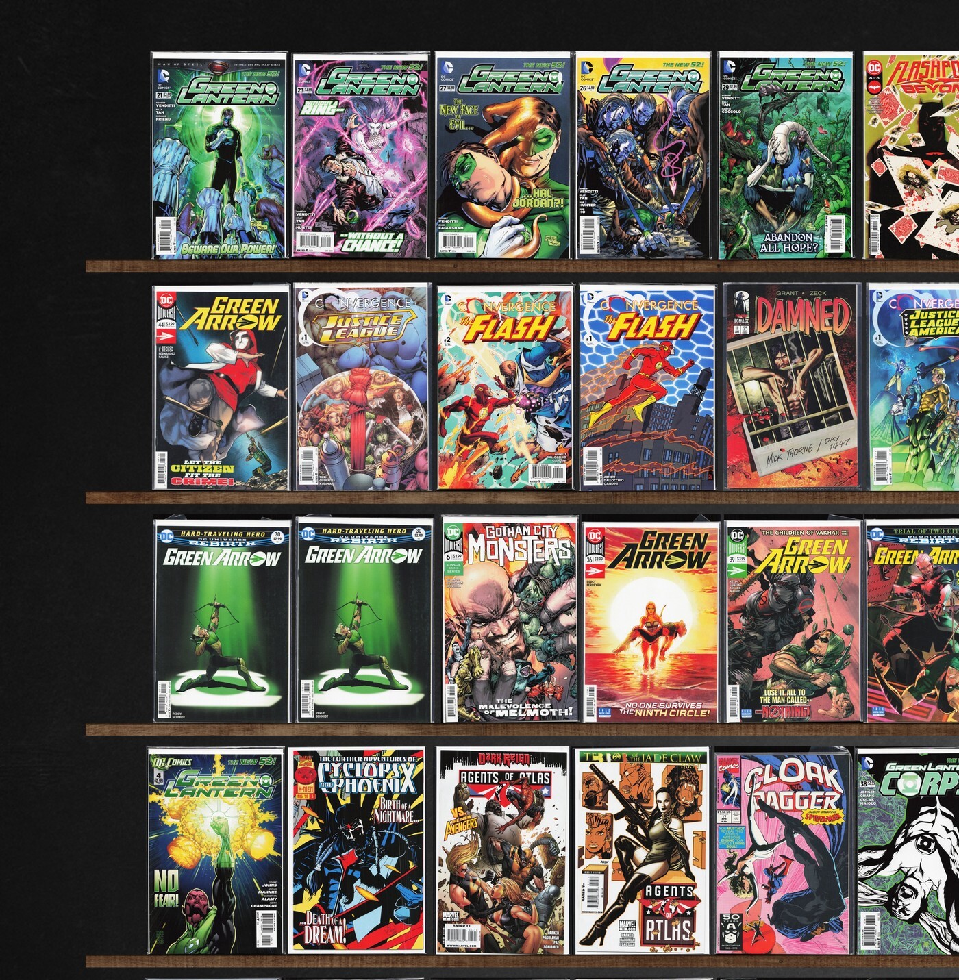 Green Lantern, Green Arrow, Gotham Academy, Green Lantern Corps, Green Lanterns, Dark Crisis, Agents Of Atlas, Exiles, Future Quest, Batwing, Convergence Justice League, Damned, The Bunker, Convergence The Flash, Crimson, Heroes For Hire, The Demon, Flashpoint Beyond, Batman/Superman Vol 1, Convergence Green Lantern/Parallax, Gotham City Monsters, Age Of Apocalypse, Ultimate X-Men, The Mighty Thor, Exiled (2012) Bor, Flashpoint: Hal Jordan, Flashpoint: The Outsider, Goddess Mode, Avx: Consequences, The Flash, Spider-Man, Cable, Convergence Detective Comics