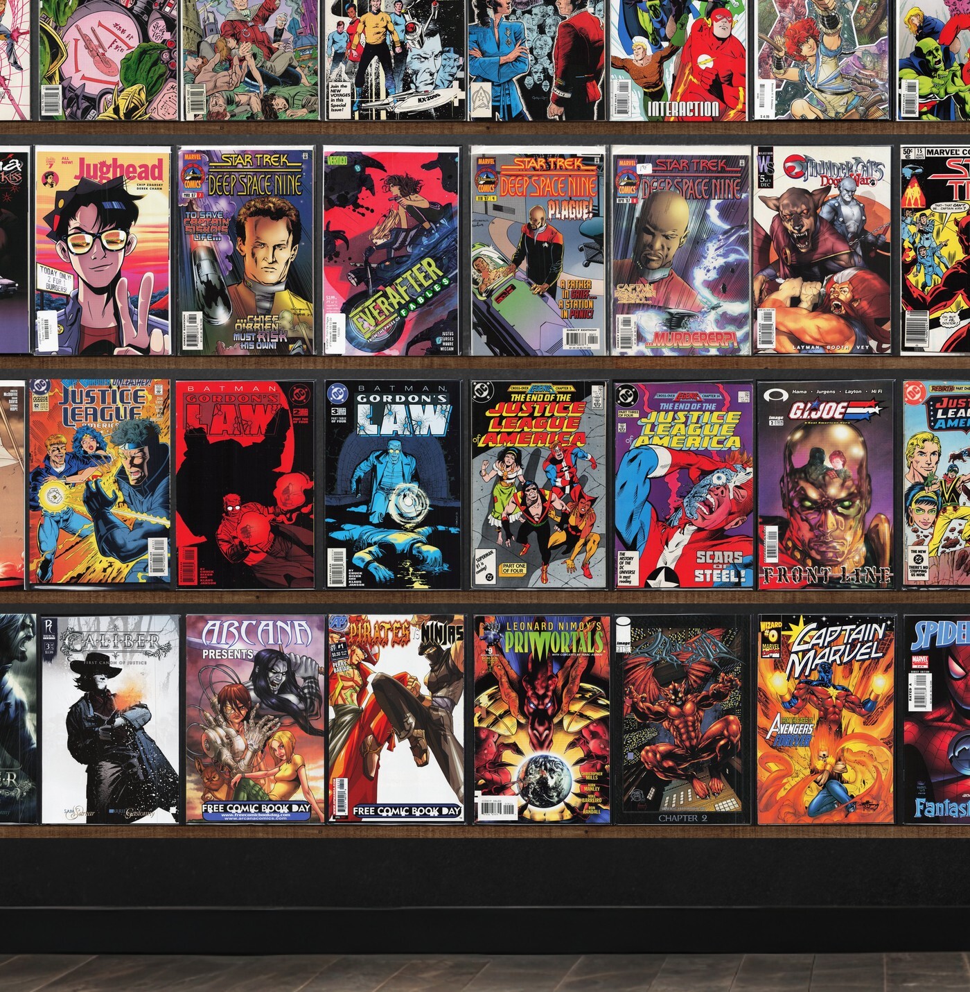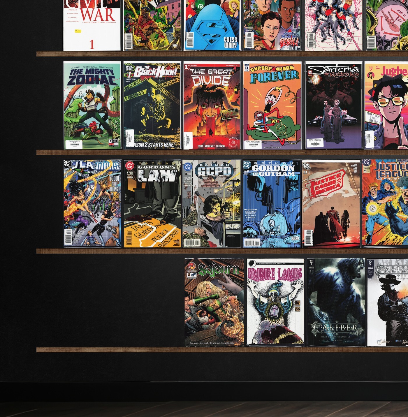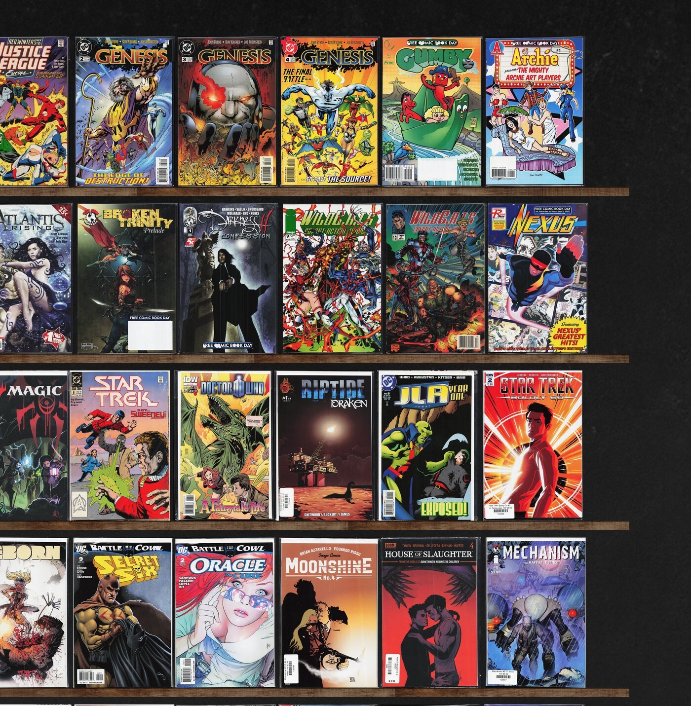 Jla: Year One, Star Trek, G.I. Joe: Frontline, Genesis, Justice League Europe, G.I. Joe Reloaded, Batman: Gordon'S Law, Oracle: The Cure, Justice League America, Wetworks, World Of Warcraft, Jla/Titans, Caliber, Showcase '94, Iron Man, Star Trek: Voyager, Flash Gordon, Jla Annual, Jla, Doctor Who, Radical, Green Lantern, Comic Genesis (2007), Imaginary (2008), The Stranded, Atlantis Rising, Hardcase, Stormwatch, Rai, Savage Dragon, Joy Operations, Magic, Riptide: Draken, Civil War, Bermuda, Spell On Wheels, Reborn, Secret Six, Moonshine, House Of Slaughter, Mechanism, The Mighty Zodiac, The Black Hood, The Great Divide, Superf*Ckers Forever, Jughead, Secret Defenders, Titans, Justice League International, Teen Titans, Batman: Gcpd, Sojourn, Empire Lanes, Pirates Vs. Ninjas, Leonard Nimoy'S Primortals, Demonslayer, Captain Marvel, Resurrection