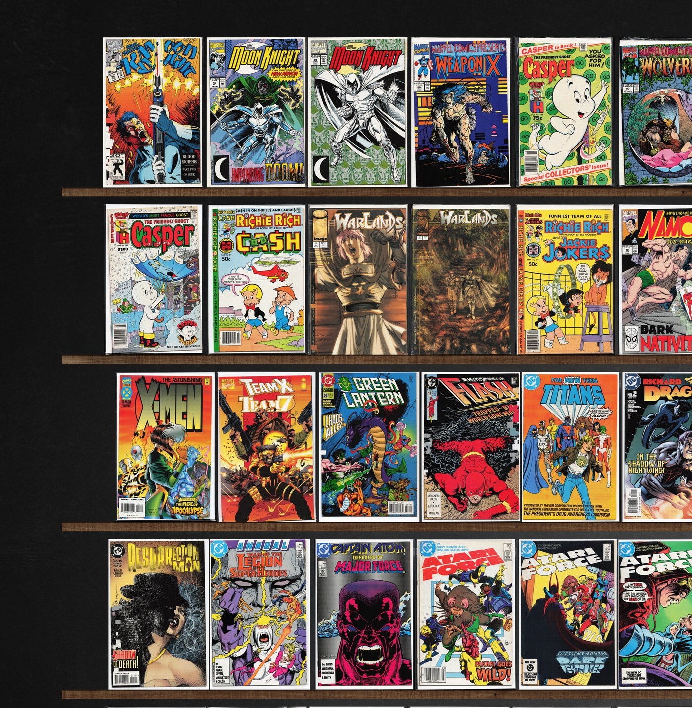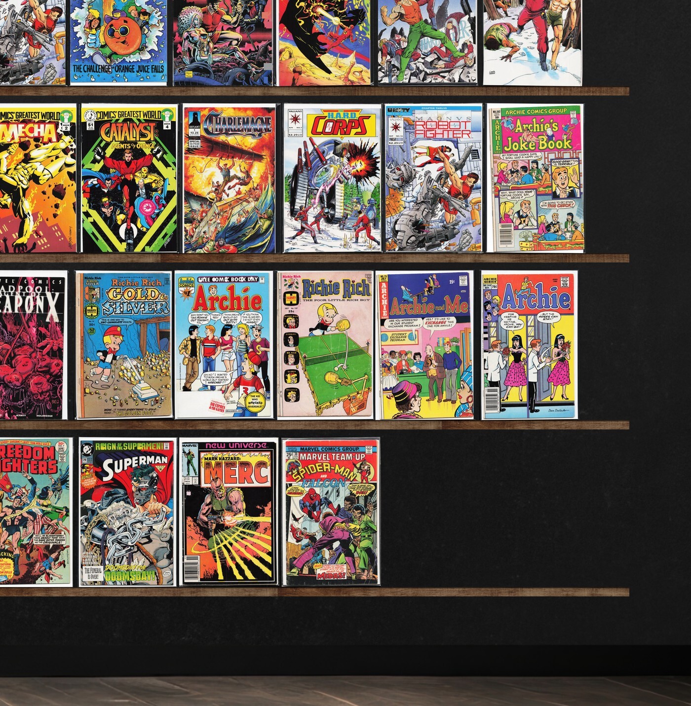 Magnus Robot Fighter, Laugh, Atari Force, Jughead, Namor, The Sub Mariner, Mark Hazzard: Merc, The H.A.R.D. Corps, Archie And Me, Warlands, Superman, Archie, Marvel Comics Presents, Life With Archie, Betty And Veronica, Sleepwalker, Astonishing X-Men, X-Men, Green Lantern, El Diablo, Archie'S Tv Laugh Out, Jughead&, Richie Rich Cash, X-Man, Excalibur, The Flash, Richard Dragon, Resurrection Man, Captain Atom, Team Titans, Nightwing, Adventures Of Superman, Superboy, Mad Dog, Dreadstar, Charlemagne, That Wilkin Boy, The Rawhide Kid, Deadpool, Richie Rich, Silver Surfer, Action Comics, Freedom Fighters, Marvel Team Up