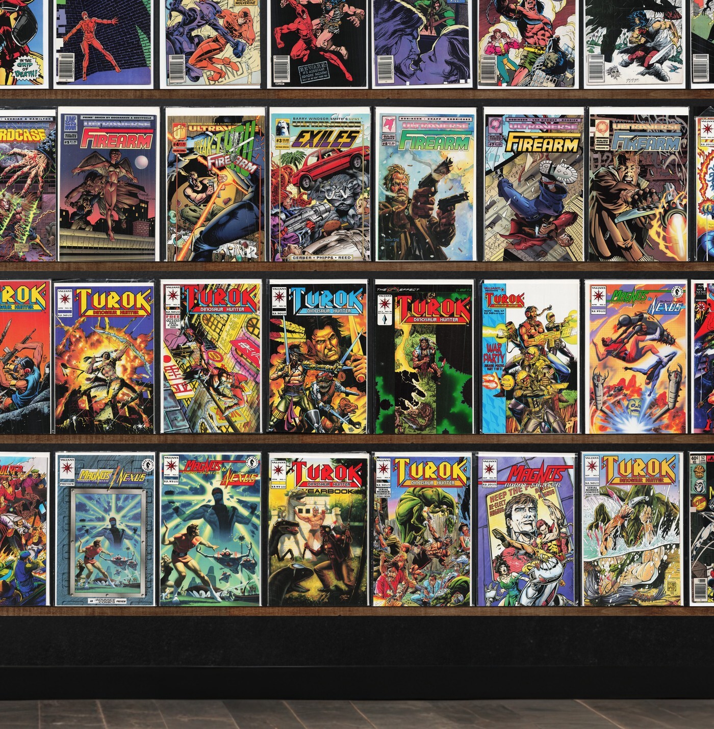 Magnus Robot Fighter, Turok, Dinosaur Hunter, Iron Man, Timewalker, Solution, Firearm, Daredevil, Marvel Two In One, Solitaire, Conan The Barbarian, Hardcase, Barb Wire, The Ferret, Marvel&, X-Men, Magnus Yearbook (1994), Eliminator, Ultraverse Comic Cards, Alien³, Harbinger, Dark Horse Comics, Ex Mutants, Web Of Spider-Man, Marvel Tales, The Uncanny X-Men, X-Men Archives, Exiles, Aliens Vs. Predator