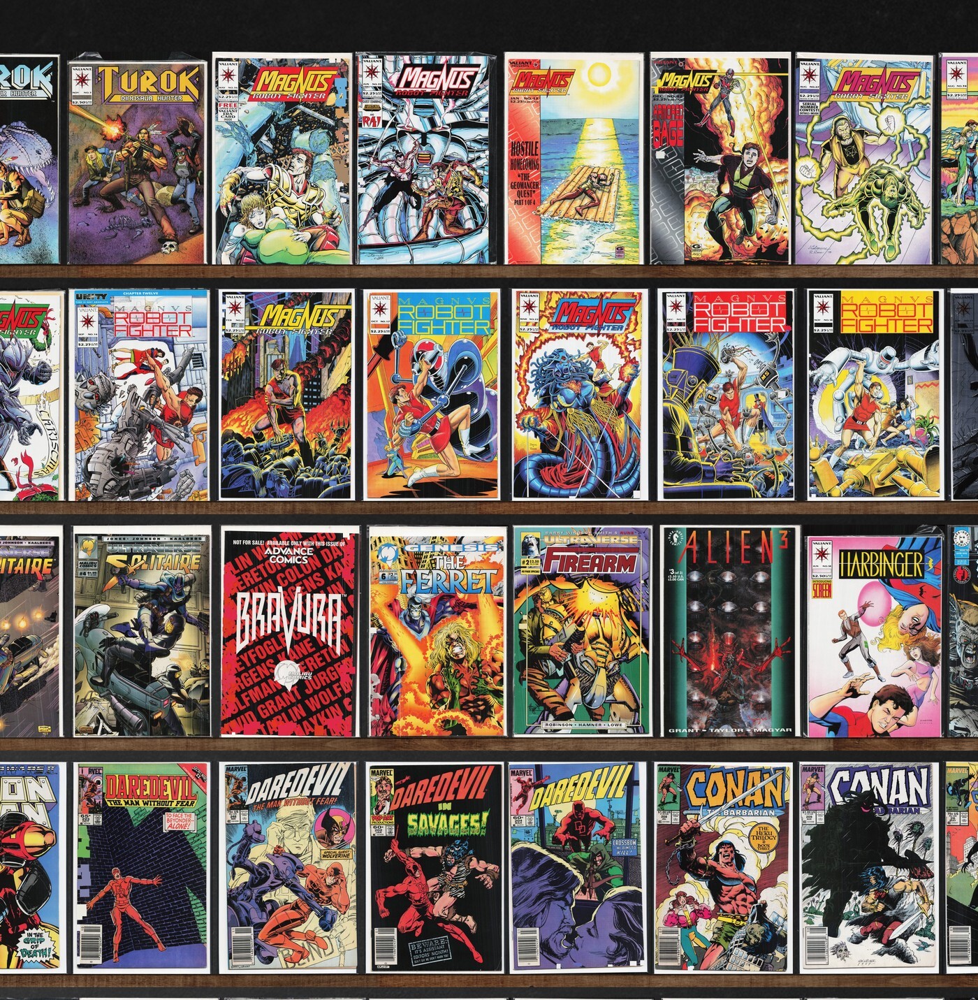 Magnus Robot Fighter, Turok, Dinosaur Hunter, Iron Man, Timewalker, Solution, Firearm, Daredevil, Marvel Two In One, Solitaire, Conan The Barbarian, Hardcase, Barb Wire, The Ferret, Marvel&, X-Men, Magnus Yearbook ( ... Read More