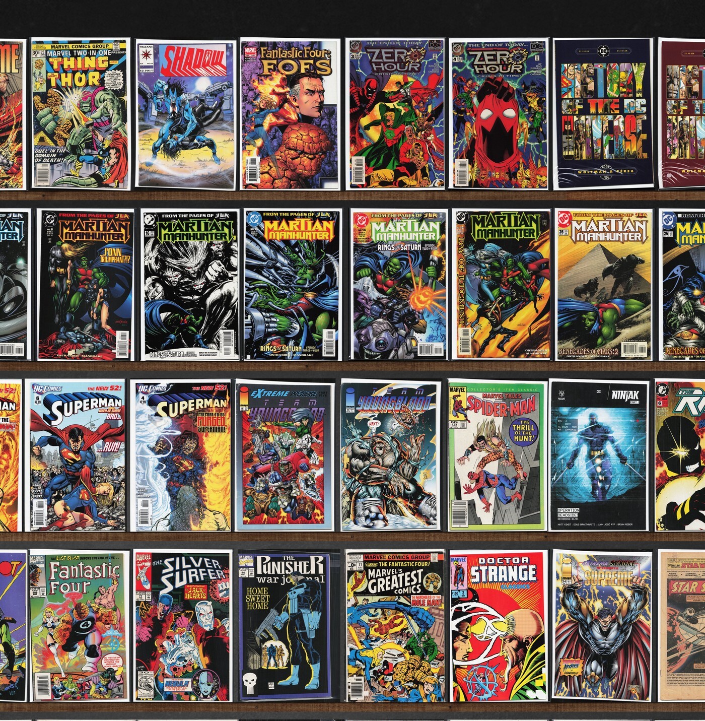 Martian Manhunter, The Strangers, Wrath, Teen Titans, Superman, Bloodshot, Supreme (1993), Prime, Brigade, The Final Night, Marvel Tales, Team Youngblood, Justice League Europe, Star Slammers, Solution, Marvel Two In One, Shadowman, Fantastic Four: Foes, Legends, Action Comics, Ninjak, The Ray, Who&, Steel, Bloodshot Reborn, Magnus Robot Fighter, Cyberforce, Fantastic Four, Silver Surfer, Marvel&, Doctor Strange Classics, Harbinger, Boof, Raver, Mantra: Infinity, Tarzan The Warrior, Mantra, Genesis, Justice League America, Green Lantern, Wolverine, Bloodstrike, Turok, Dinosaur Hunter, Nightwing, Rai, Stormwatch, Aliens Vs. Predator