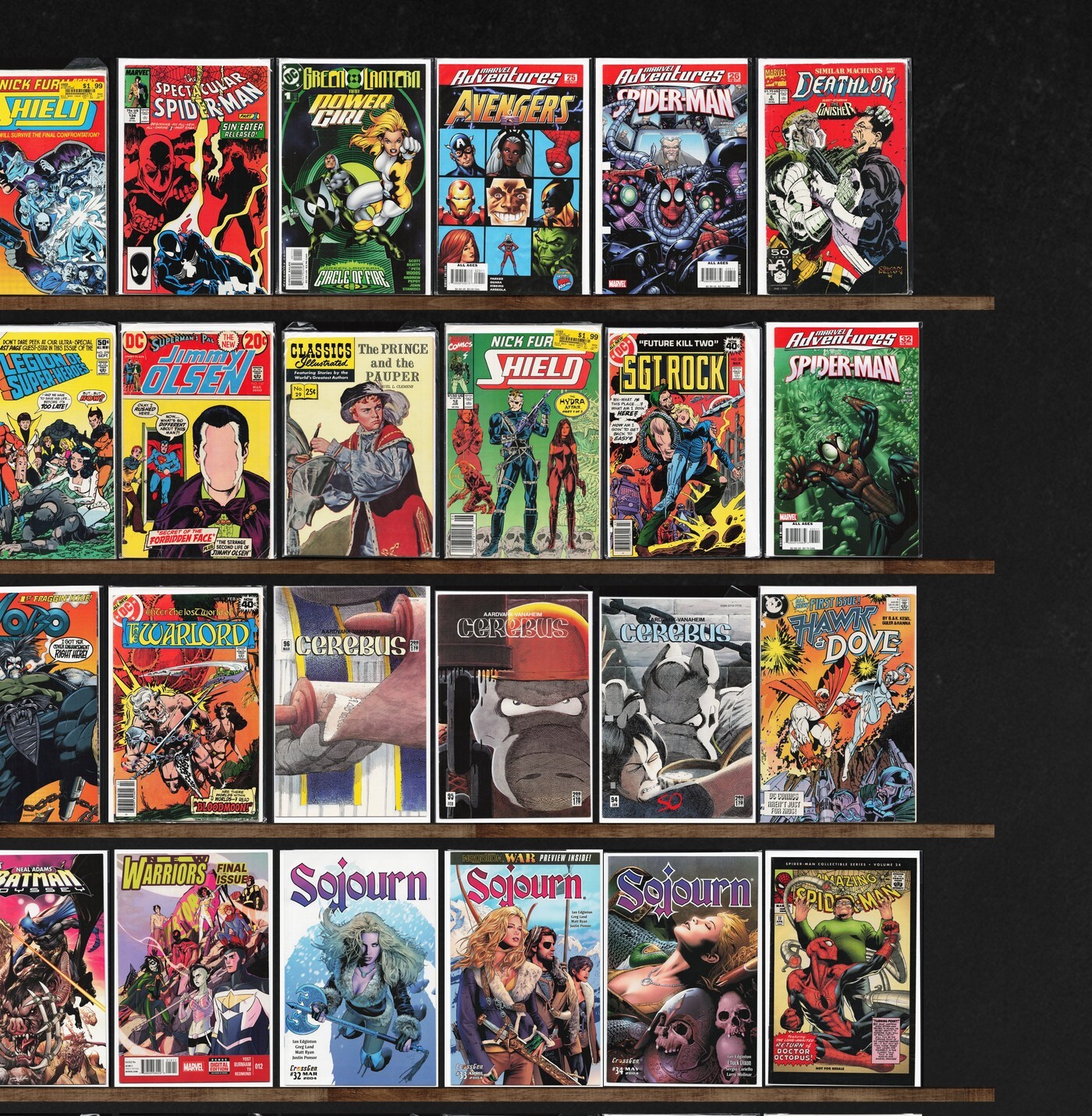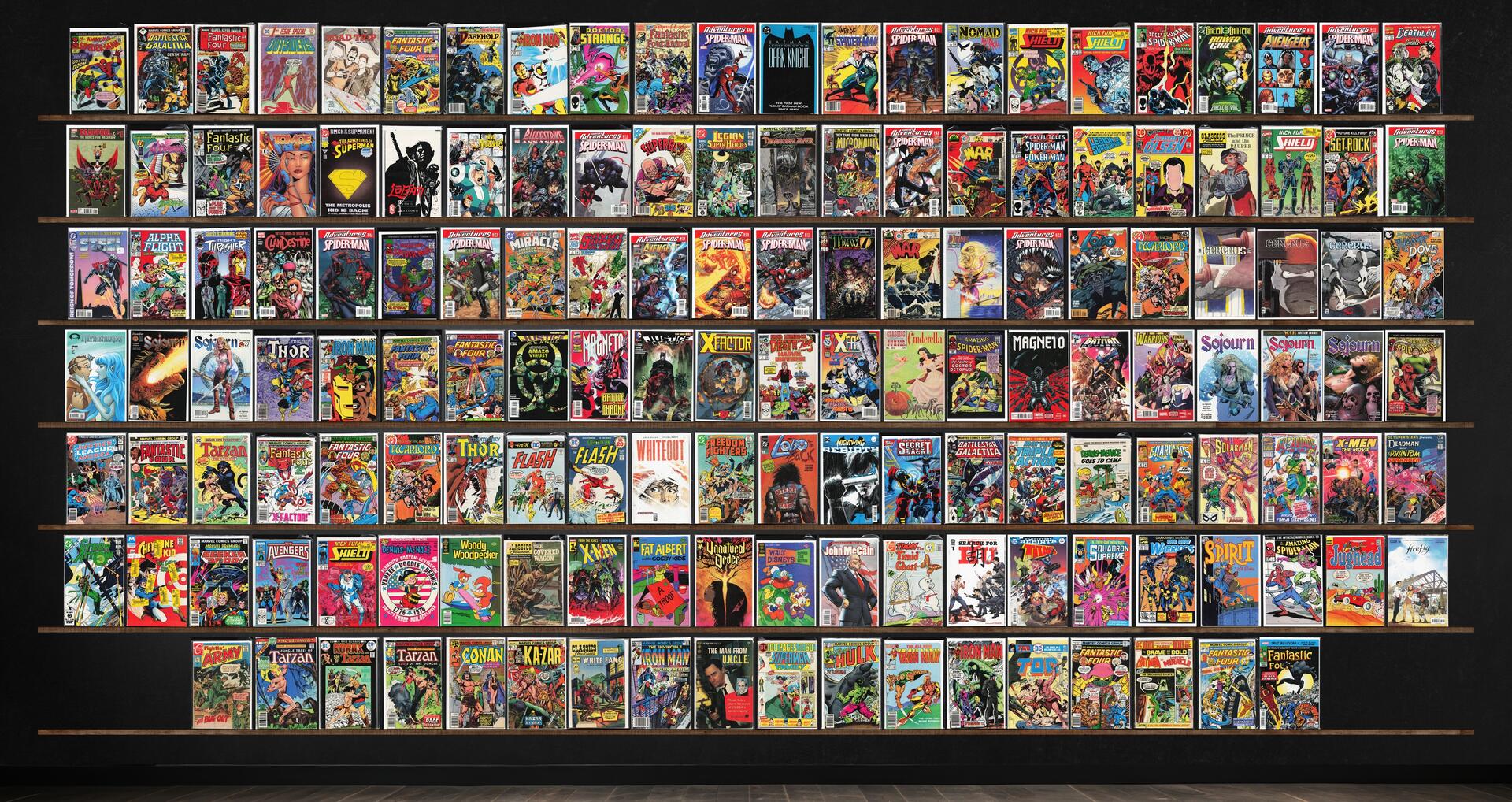 Marvel Adventures: Spider-Man, Fantastic Four, Iron Man, Sojourn, Spider-Man Collectible Series, Classics Illustrated, Cerebus (1977 2004 Aardvark Vanaheim), Battlestar Galactica, Fantastic Four Annual, Marvel Adventures: Avengers, New Warriors, Legion Of Super Heroes, War, Warlord, Thor, Justice League, Magneto, X-Factor, The Flash, 1St Issue Special, Road Trip, Doctor Strange, Web Of Spider-Man, Nomad, The Spectacular Spider-Man, Deathlok, Tomoe, Adventures Of Superman, Bloodstrike: Assassin, Dragonslayer, Micronauts, Marvel Tales, Superman&, Sgt. Rock, Steel, Alpha Flight, Night Thrasher, Clandestine, Mister Miracle, Lobo, Hawk And Dove, Mythstalkers, Classics Illustrated Junior, Batman: Odyssey, Whiteout, Freedom Fighters, Lobo'S Back, Marvel Triple Action, Solarman, Dc Super Stars, Green Arrow, Cheyenne Kid, Marvel Premiere, The Avengers, X-Men, Fat Albert, Unnatural Order, Search For Hu, Titans, Squadron Supreme, The New Warriors, The Spirit, Jughead, Firefly, Fightin' Army, Tarzan Annual, Tarzan, Conan The Barbarian, Ka Zar, The Superman Family, The Incredible Hulk, Tor