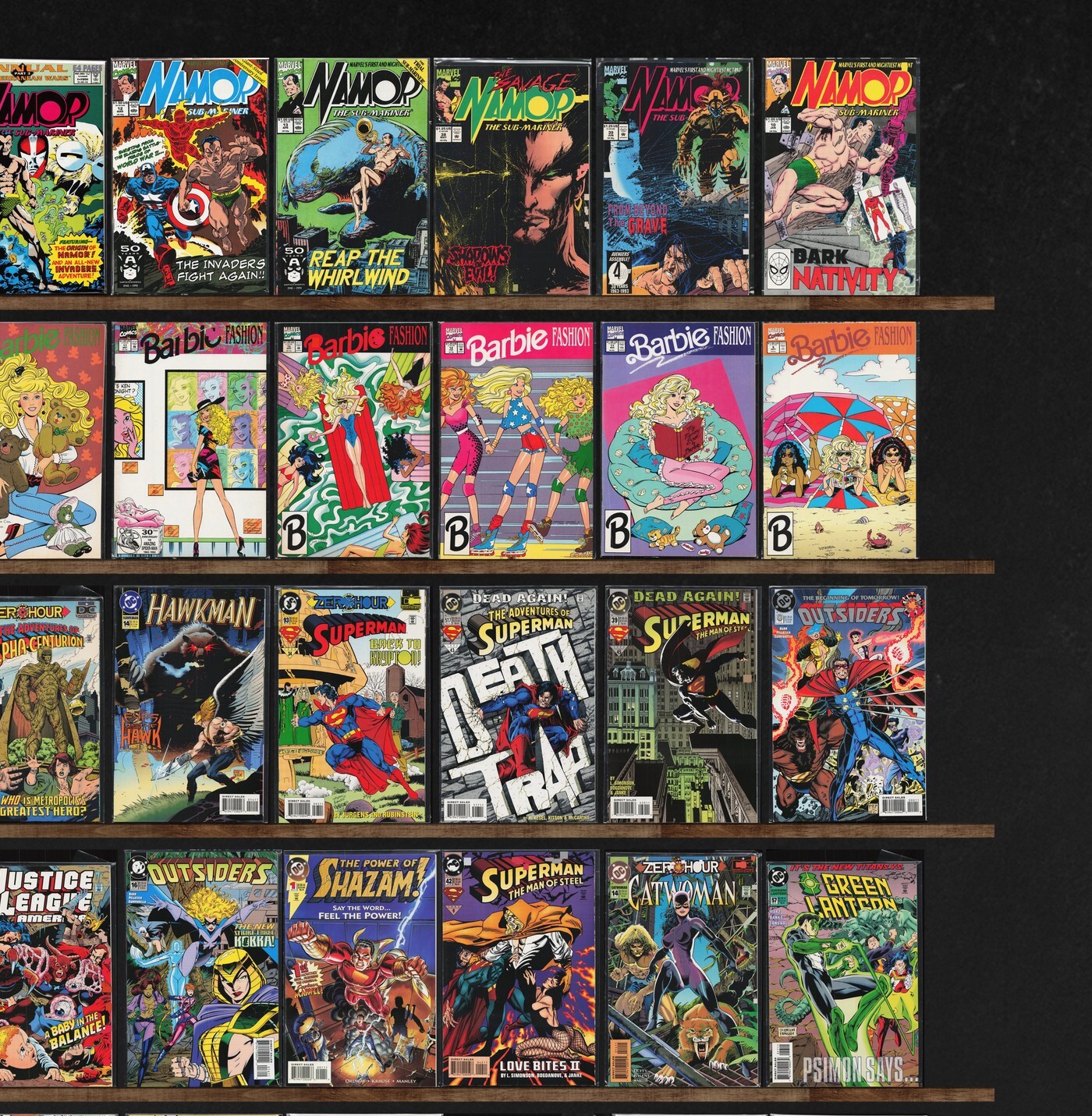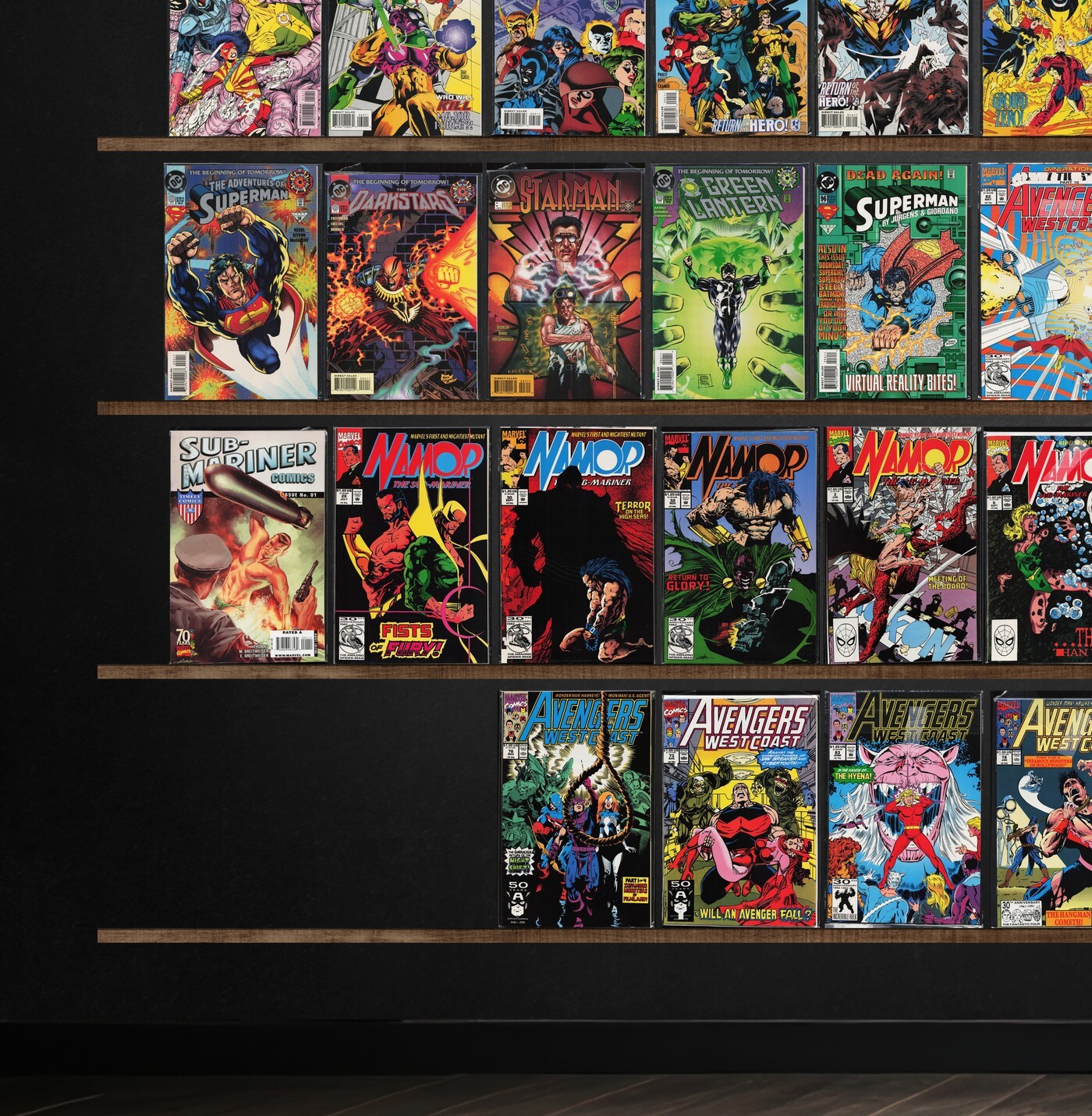 Namor, The Sub Mariner, Avengers West Coast, Barbie Fashion, Outsiders, Superman, Green Lantern, Justice League America, Aquaman, Action Comics, Adventures Of Superman, The Flash, Valor, Hawkman, What If...?, Superm ... Read More