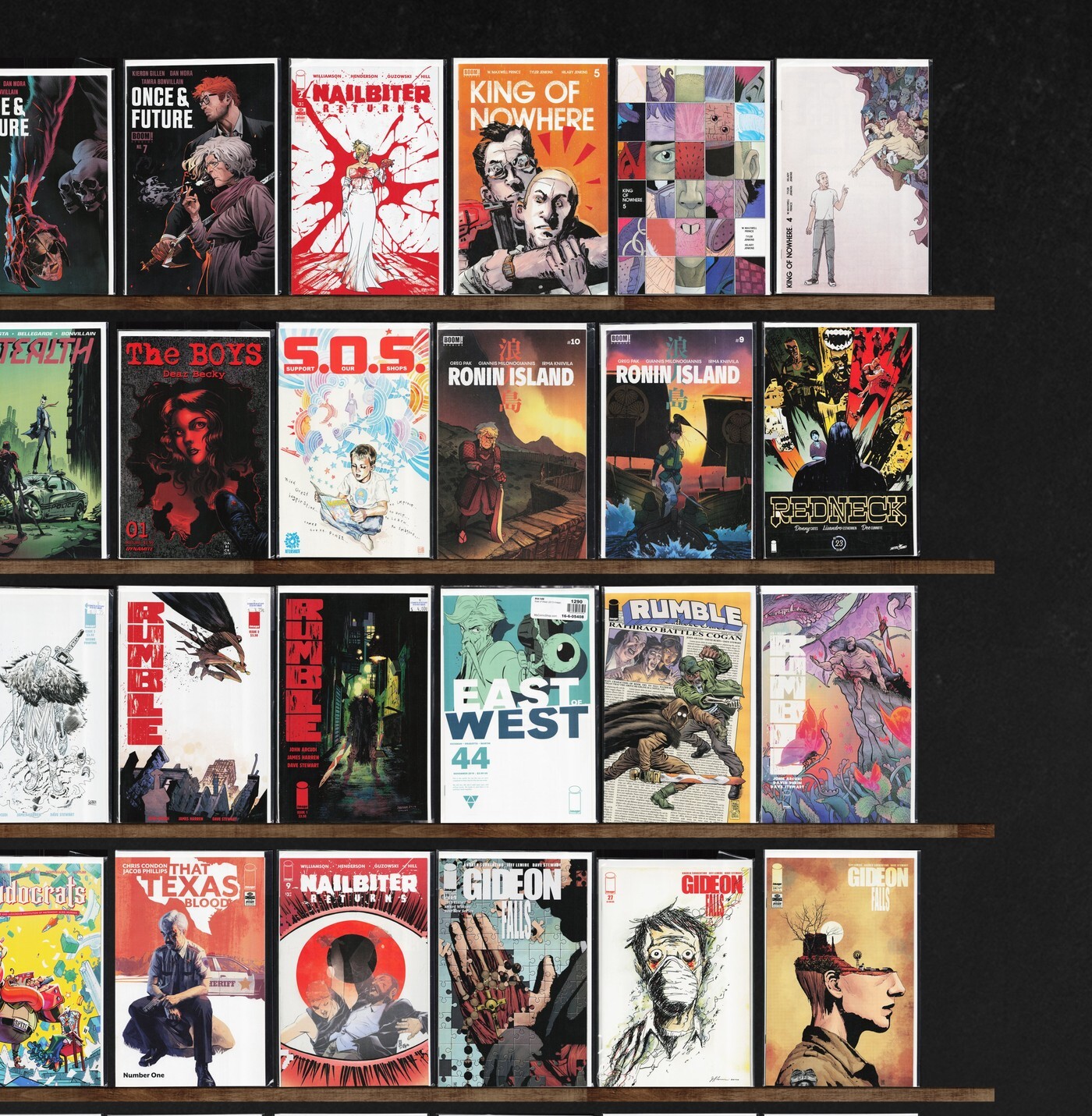 Rumble, Fantastic Four, Alpha Flight, Once & Future, King Of Nowhere, Nailbiter Returns, Redneck, Gideon Falls, Stealth, Over The Ropes, Dead Eyes, That Texas Blood, Wynd, Canto, Vigilante, The Uncanny X-Men, Ronin ... Read More