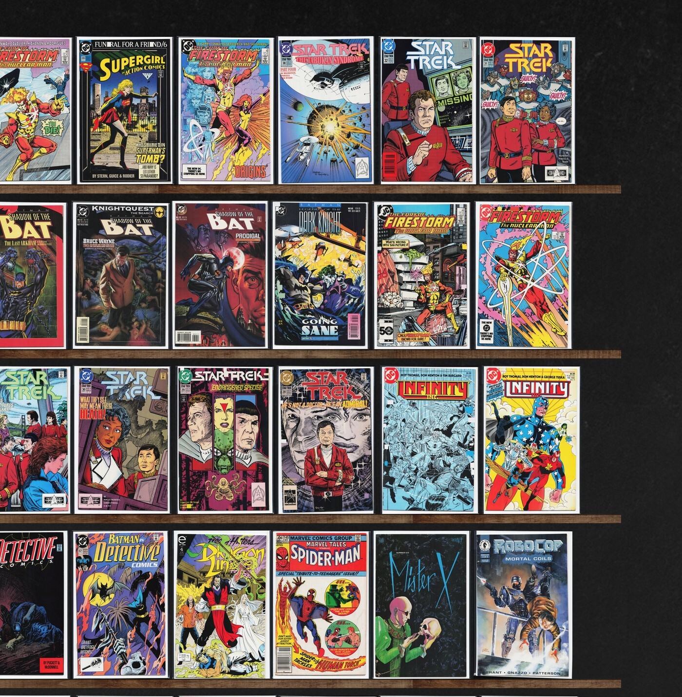 Star Trek, Batman, Fantastic Force, Fantastic Four, Infinity, Inc., Detective Comics, Fantastic Four Unplugged, Cyberforce, Robocop: Mortal Coils, Fantastic Four Unlimited, Iron Man, The Mighty Thor, Action Comics, Dragon Lines, Fantastic Four 2099, Cosmic Powers, Fate, Bloodshot, The Maxx, Archer & Armstrong, Thor, Brigade, Freak Force, Secret Origins, Batman Annual, World Of Krypton, Marvel Tales, Mister X, Marvel Team Up, Night Thrasher, Marvel Super Heroes, Men Of War, Dellec, Time Bomb, T.H.U.N.D.E.R. Agents, The Avengers, Dennis The Menace