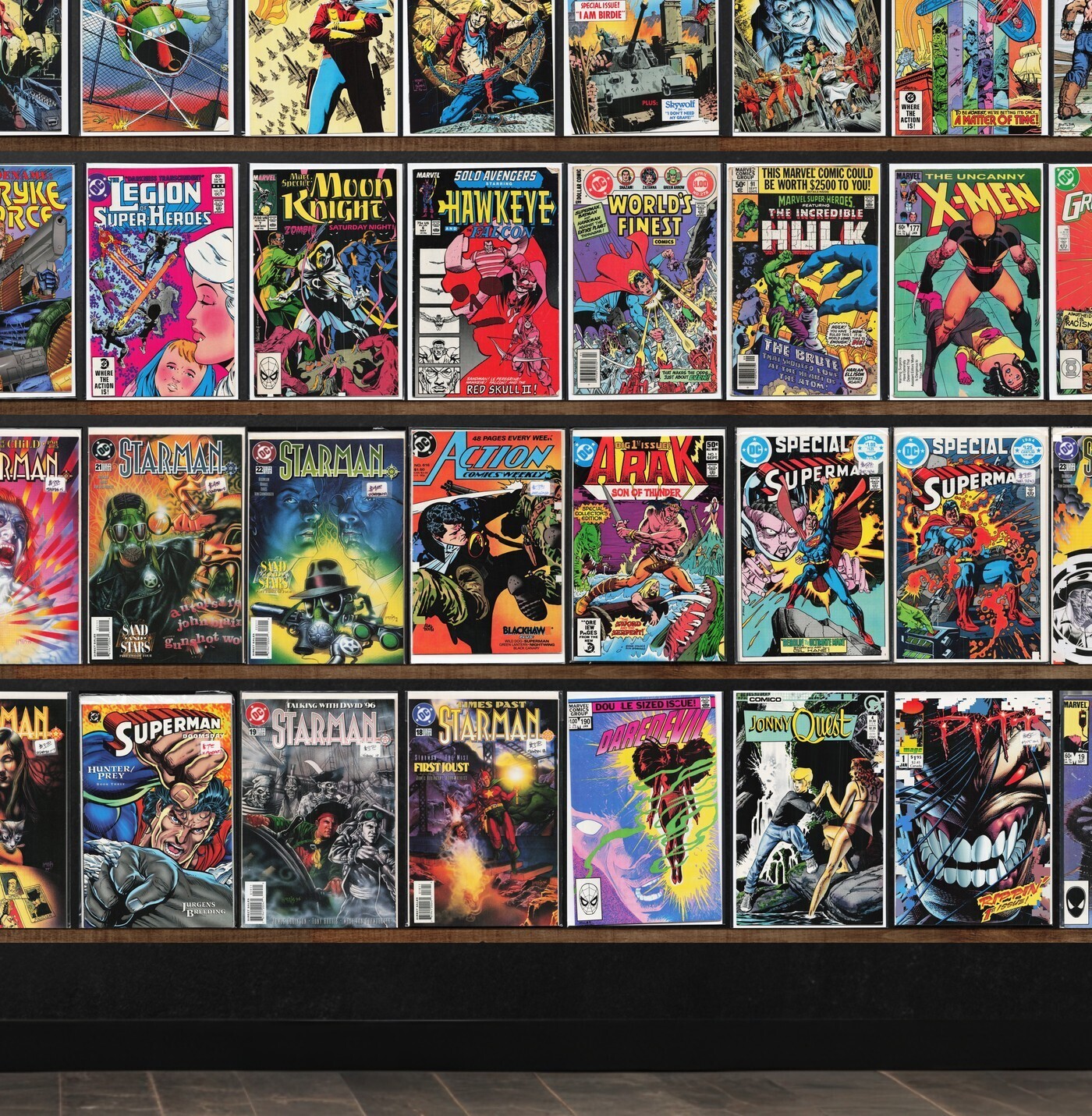 Starman, Airboy, Jonny Quest, Ka Zar The Savage, X-Factor, The H.A.R.D. Corps, Rai, Megaton Man, The Uncanny X-Men, Action Comics Weekly, Magnus Robot Fighter, The Final Night, Legion Of Super Heroes, Strontium Dog, The Spectacular Spider-Man, Death Rattle, Manhunter, Miami Mice Comic, The Badger, Kick Ass, Warrior, Superman Special, Daredevil, The Incredible Hulk, The Maxx, Justice League Europe, Shadow Riders, Dc Universe: Trinity, Whisper, Transmetropolitan, Poison Elves, Operation: Knightstrike, Raver, Twilight Man, Realm, Avengers Strikefile (1994), Taoland, Hellshock, Silver Surfer, Amazing X-Men, Necroscope, Dalgoda, Boris The Bear, The Flash, Nexus, Iron Man, Codename: Strykeforce, Solo Avengers, World'S Finest Comics, Marvel Super Heroes, Green Lantern Special, Micronauts, Captain Savage, Power Man, Americomics, What If?, Infinity, Inc., Superman/Doomsday: Hunter/Prey, Pitt, The New Mutants