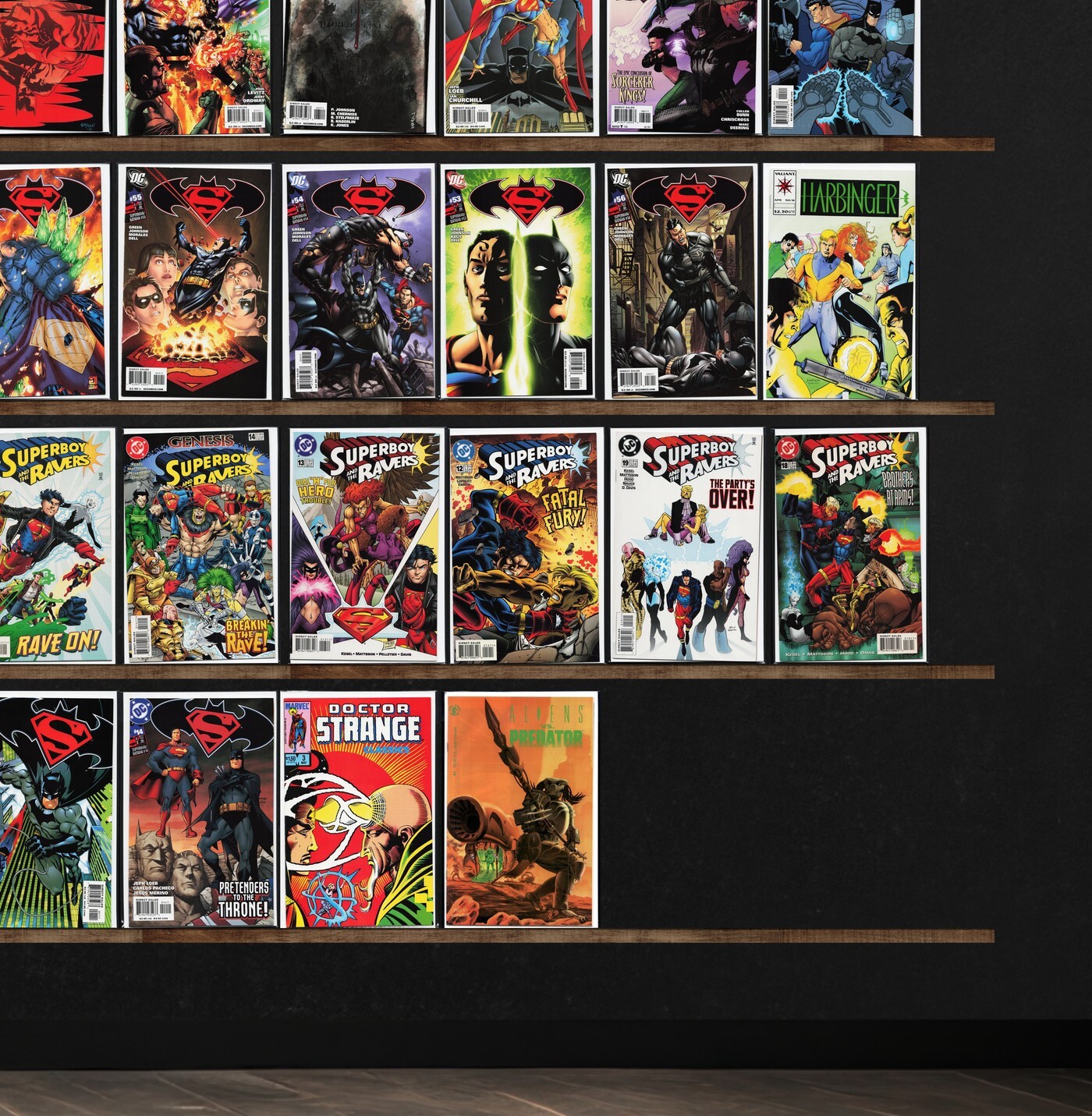 Superman / Batman, Hourman, 52, Justice League International, Action Comics, The Strangers, Day Of Judgment, Nightwing, Robin: Year One, Underworld Unleashed, Wrath, Teen Titans, Harbinger, Prime, Genesis, Wolverine, Turok, Dinosaur Hunter, Doctor Strange Classics, Aliens Vs. Predator