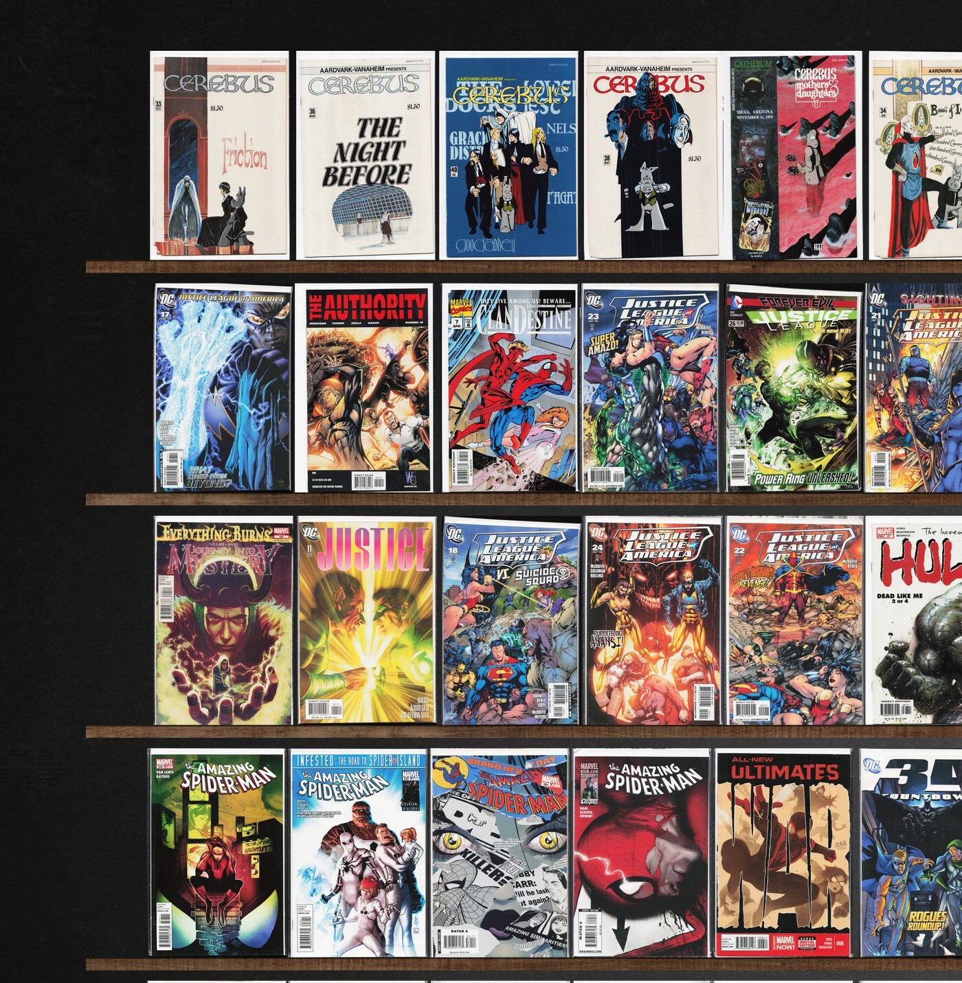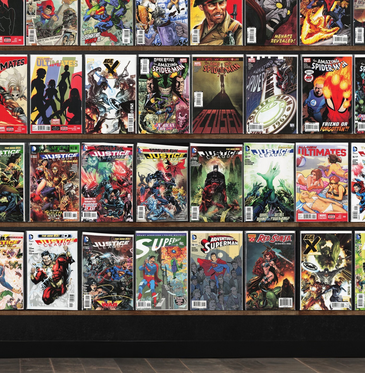 The Amazing Spider-Man, Justice League, Journey Into Mystery, Cerebus, All New Ultimates, Adventures Of Superman, Exiles, Incredible Hulk, The Authority, Hulk: Gray, Action Comics Annual, Clandestine, Justice, Justice League International, Countdown, All Star Superman, Red Sonja, Action Comics