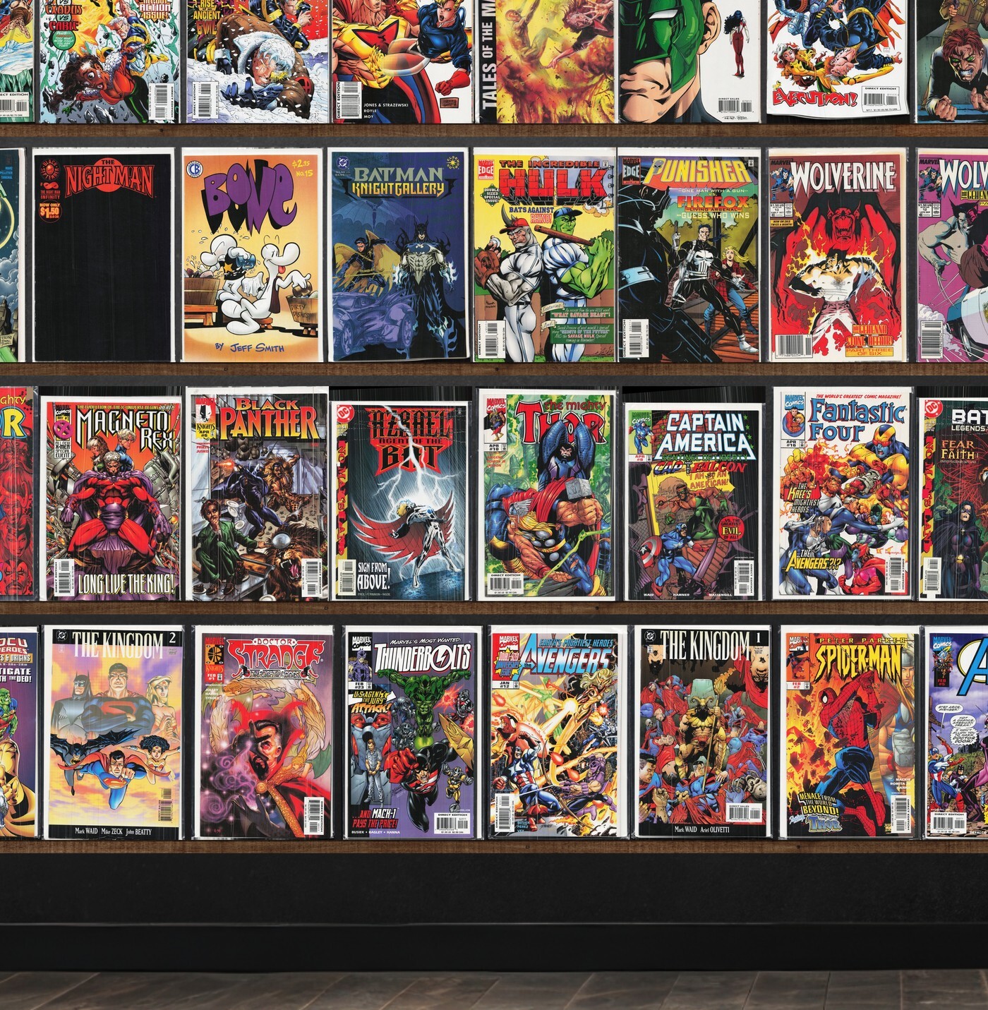The Flash, Wolverine, Captain America, Green Lantern, Superboy, Resurrection Man, Mutant X, The Uncanny X-Men, Thor, Thunderbolts, Impulse, Inhumans, Black Panther, A Next, Cable, The Incredible Hulk, The Titans, Hardcase, X-Man, Punisher, Young Justice, Fantastic Four, The Kingdom, Hulk, Spider-Girl, J2, Tom Strong, Uncanny Origins, X-Calibre, Daredevil, Prime, The New Shadowhawk, Cyber Force, X-Men Unlimited, Azrael Annual, Azrael, Manhunter, Bone, X-Men, Detective Comics, Magneto Rex, The Punisher, Avengers