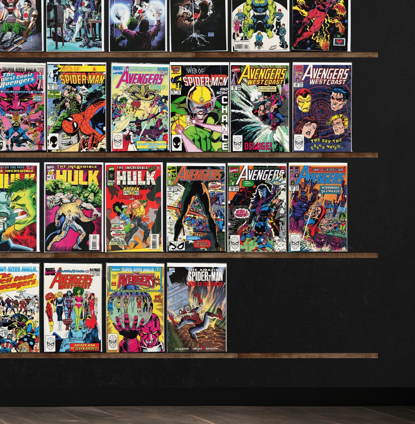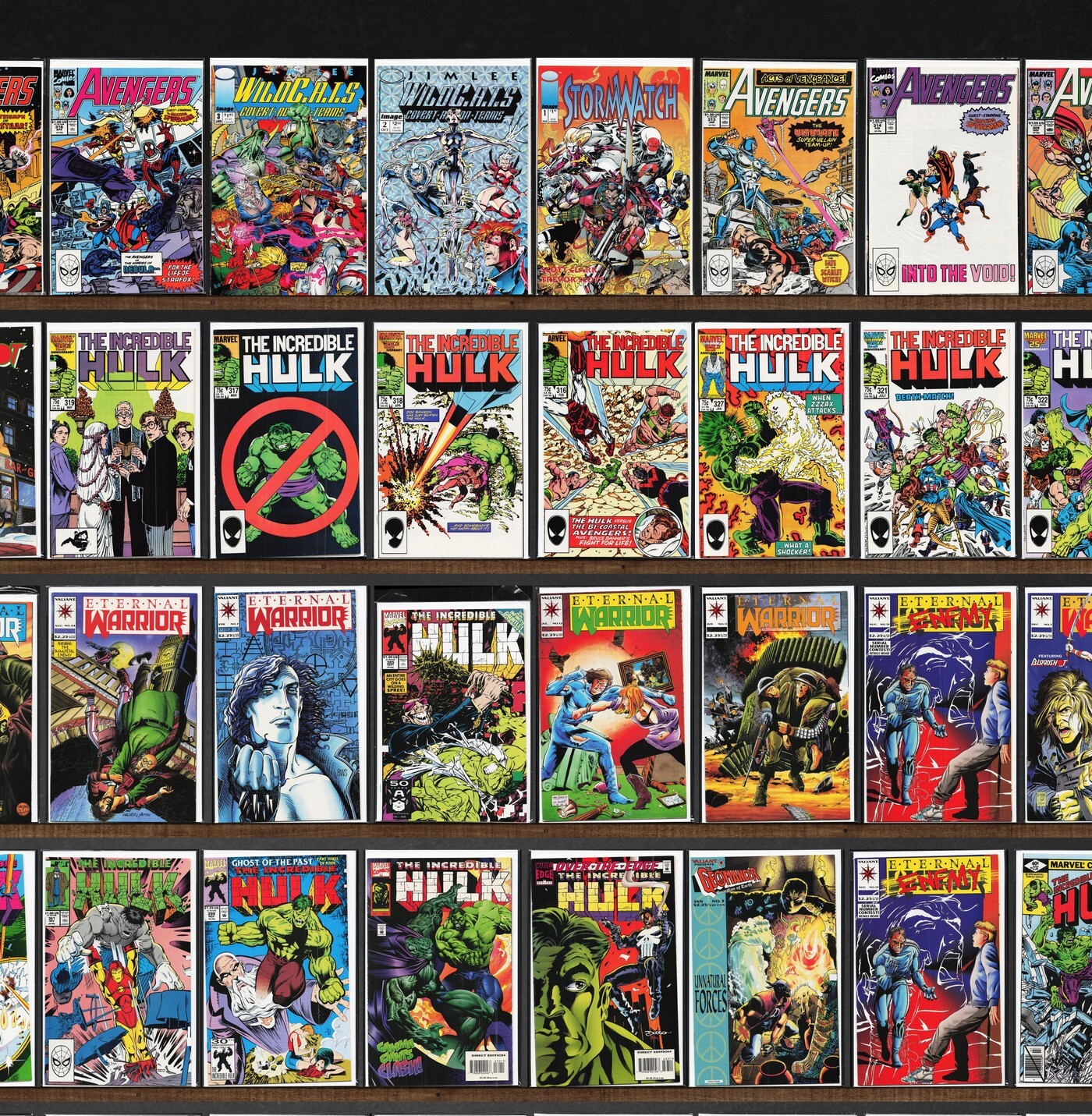 The Incredible Hulk, Eternal Warrior, West Coast Avengers, Bloodshot, The Avengers, Web Of Spider-Man, Avengers Spotlight, Avengers West Coast, The Avengers Annual, Geomancer, Stormwatch, Archer & Armstrong