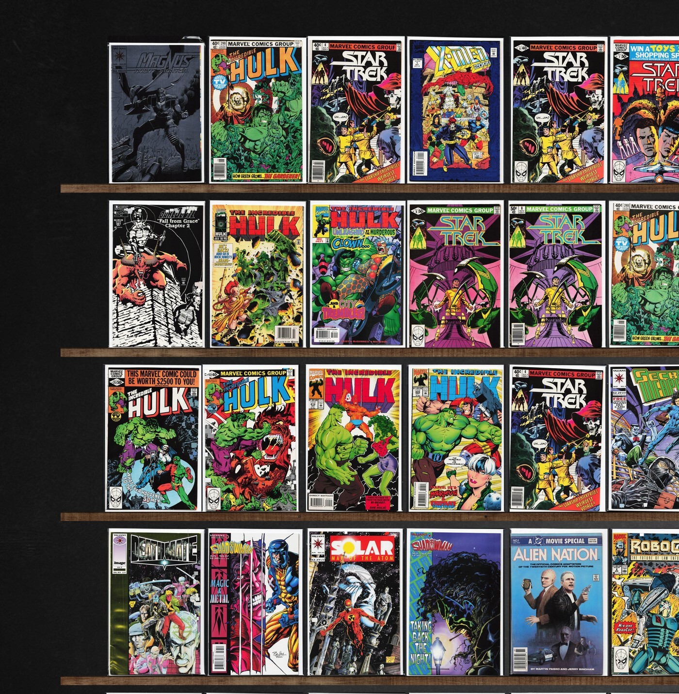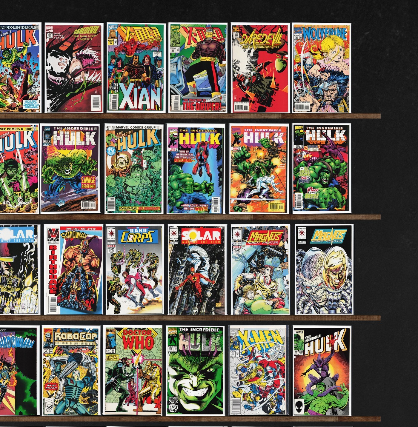 The Incredible Hulk, Star Trek, Shadowman, X-Men 2099, Daredevil, X-Men, Magnus Robot Fighter, Deathmate, Silver Surfer, Babylon 5, Robocop, Doctor Who, Wolverine Saga, Classic X-Men, Wolverine, Secret Weapons, Unit ... Read More