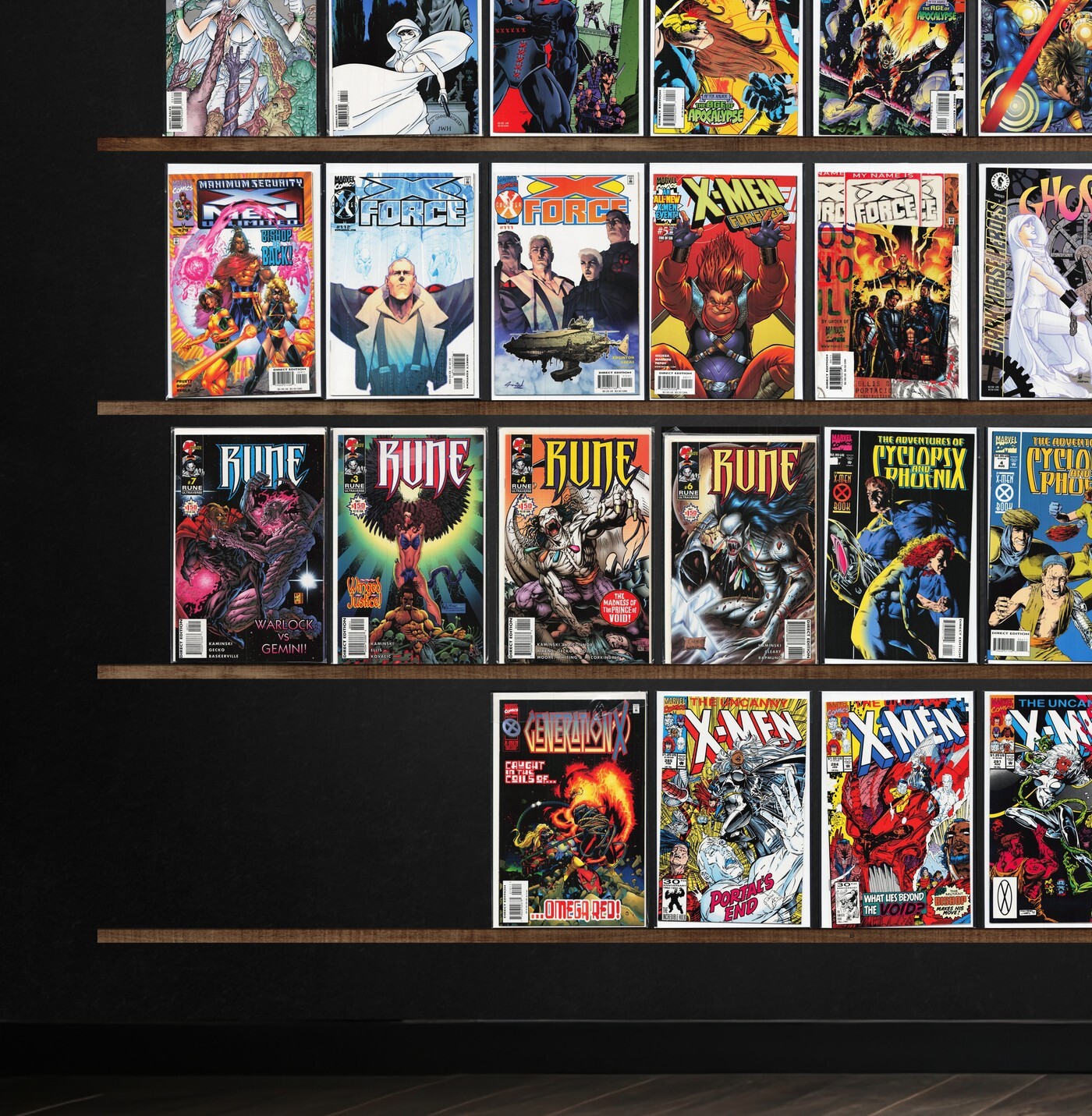 The Uncanny X-Men, Cable, Ghost, Supergirl, X-Force, X-Men Unlimited, Clandestine, Mutant X, X, Rune, X-Men Forever, Weapon X, Stormwatch, The New Mutants, X-Factor Annual, Secret Wars Ii, Prime, Regulators, What The ?!, Factor X, Astonishing X-Men, Amazing X-Men, Ultraforce: Infinity, Supergirl Annual, X-Men: Phoenix, Elektra, Wildstorm Rising, Youngblood Strikefile, Generation X, Gambit