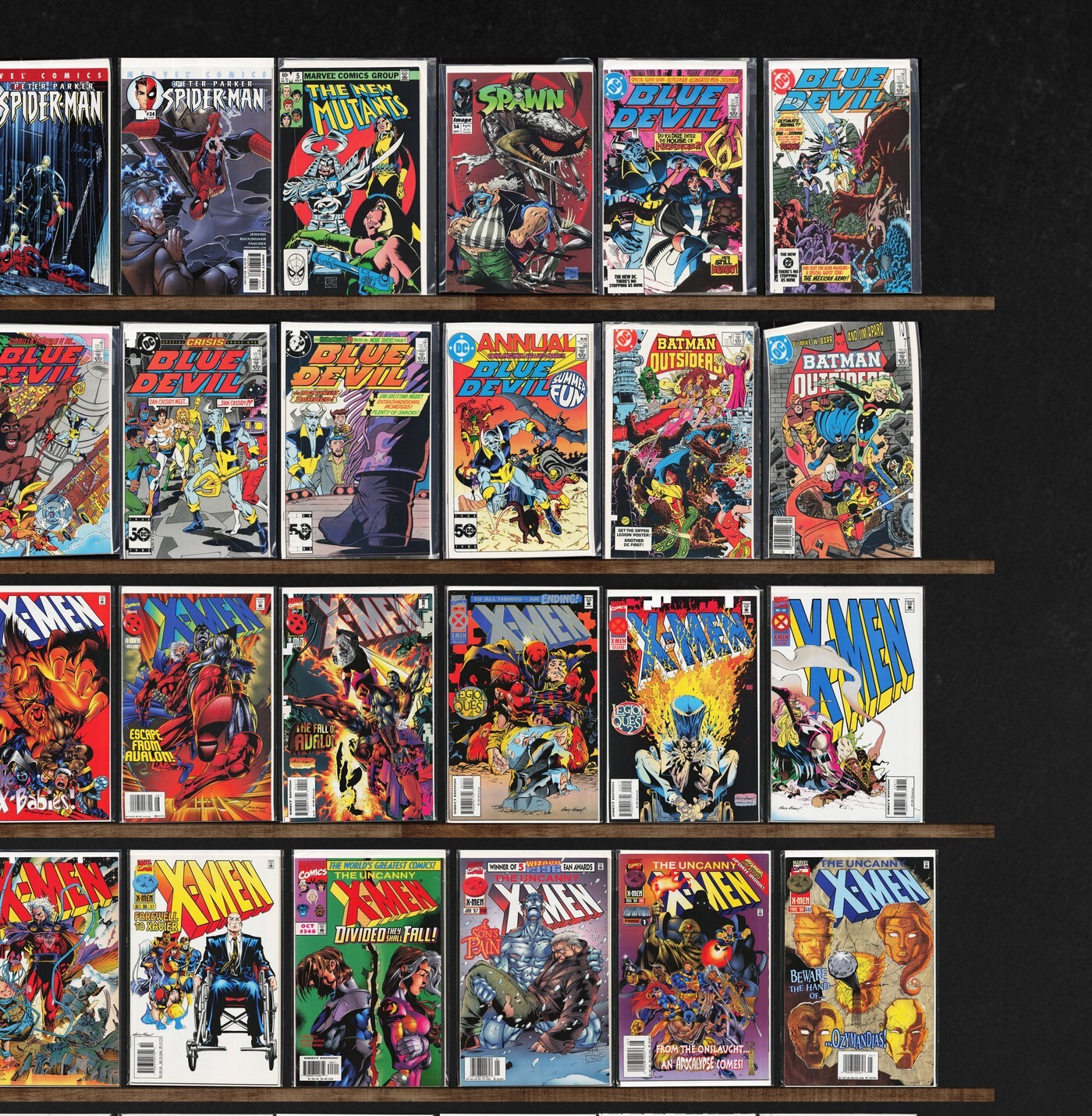 The Uncanny X-Men, X-Men, Peter Parker: Spider-Man, Blue Devil, Alpha Flight, The New Mutants, Spawn, Spider-Man: Chapter One, X-Men/Alpha Flight, Wolverine, X-Men Annual, Hasbro/X-Men