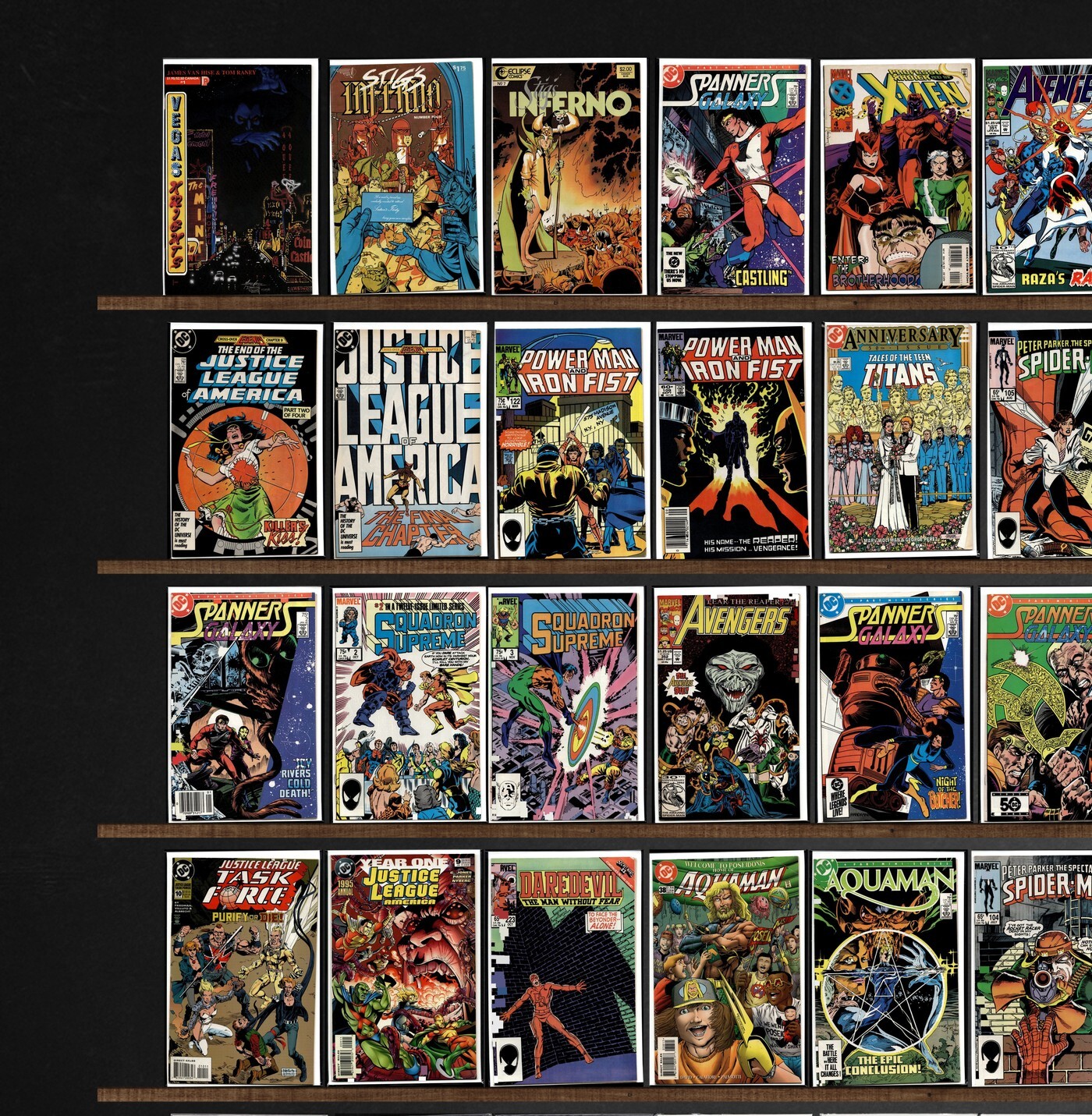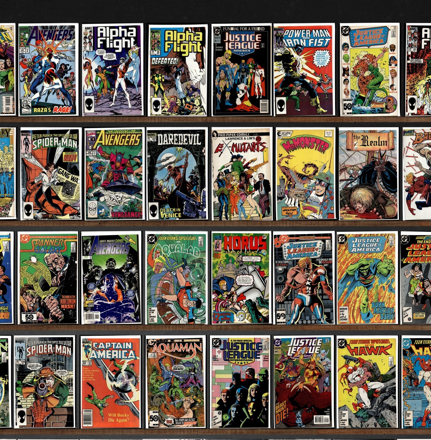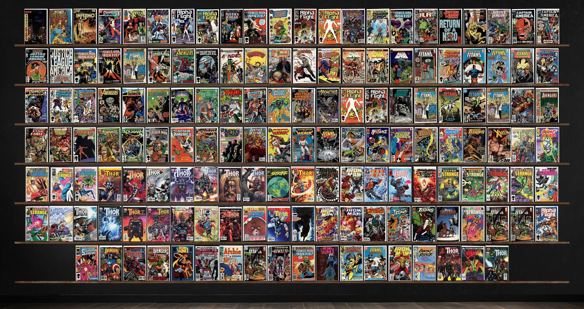 Thor, Doctor Strange, The Avengers, Alpha Flight, Iron Man, Spanner&, Squadron Supreme, Ghost Rider, The New Titans, Stig&, Avengers, Justice League International, Captain America, The New Humans, Teen Titans Spotlight, Aquaman, Justice League America, The Spectacular Spider-Man, Daredevil, Team Titans, Thunderstrike, Hero Sandwich, Vegas Knights, Jla: Year One, Justice League Europe, Ex Mutants, Doc Stearn...Mr Monster, Realm, Badger, Hero Premiere Edition, Promethea, Gambit, Hercules, Archie, Hawkeye