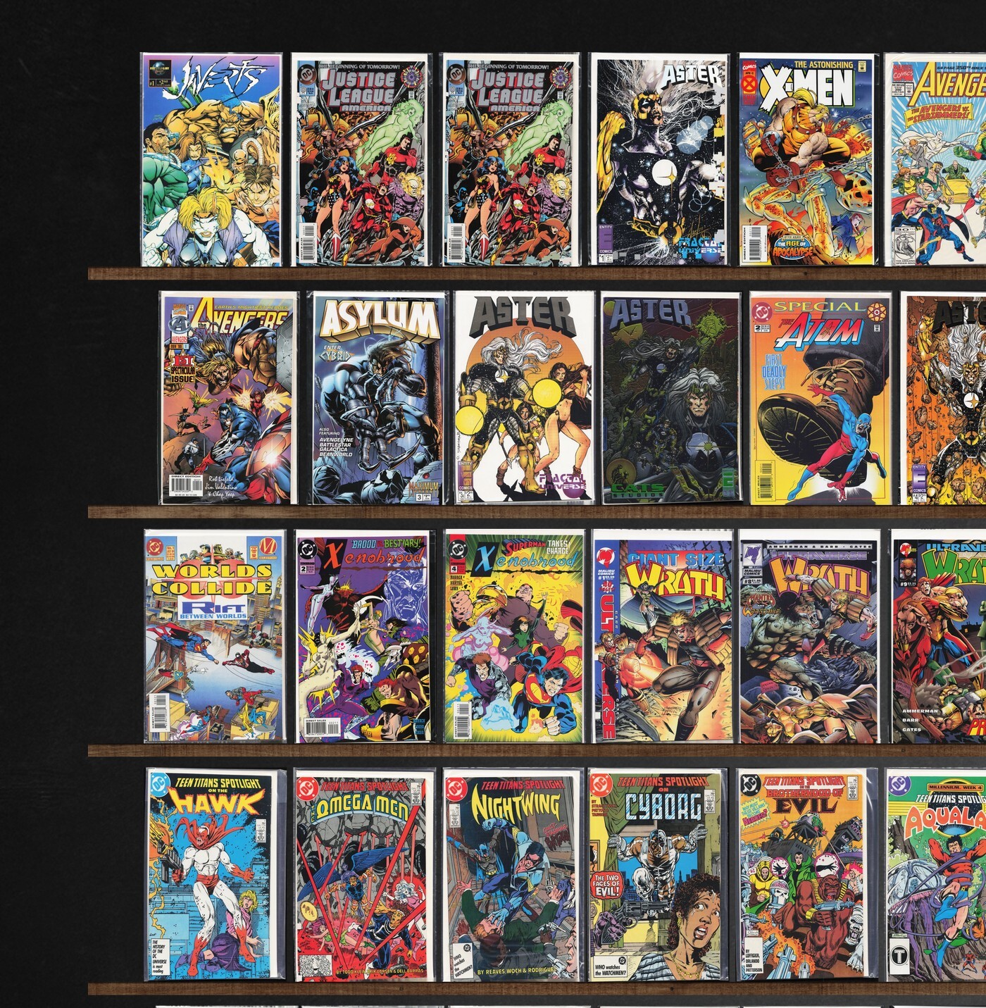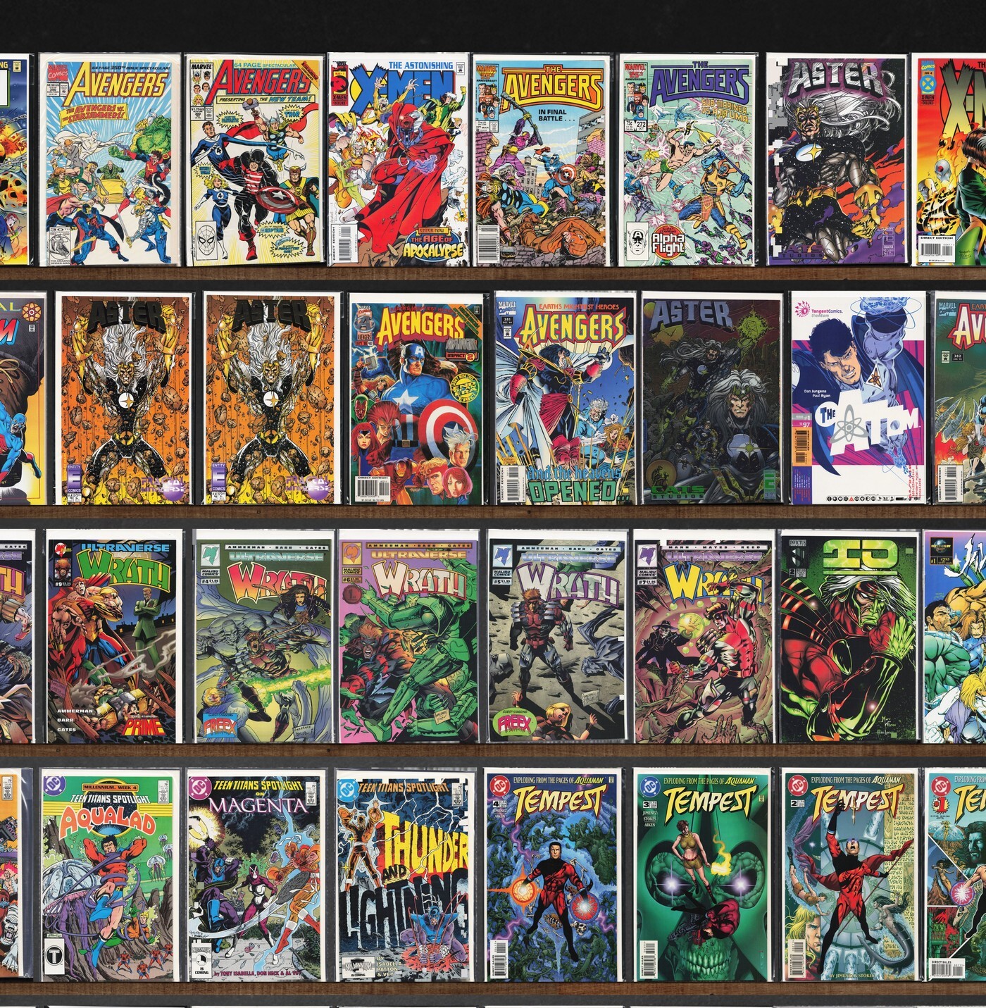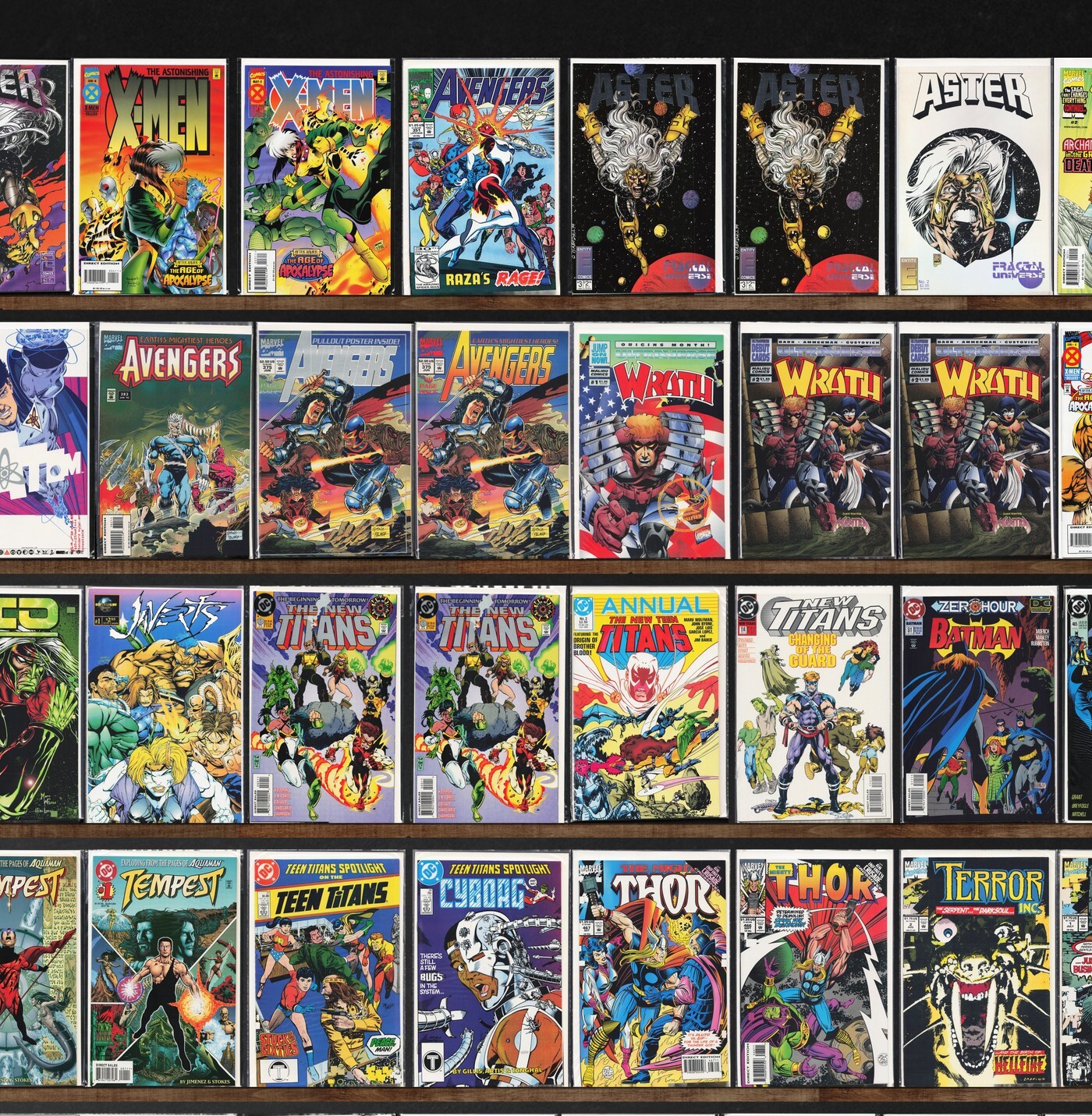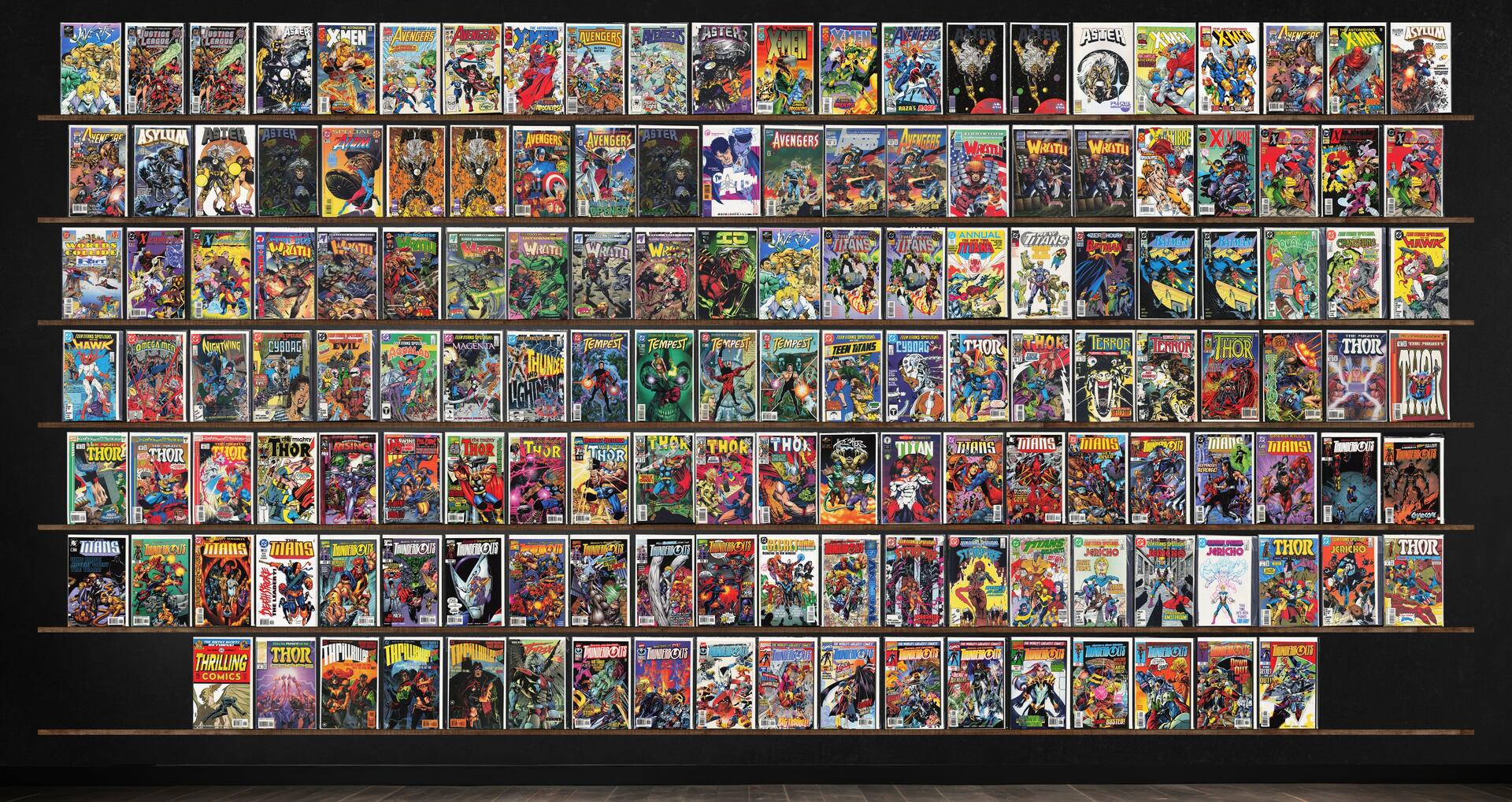 Thunderbolts, Teen Titans Spotlight, The Avengers, The Mighty Thor, Wrath, The Titans, Astonishing X-Men, Aster, Xenobrood, Thor, Tempest, The New Titans, Batman, Thor Corps, Javerts (1994), Justice League America, Avengers, Asylum, X-Calibre, Terror Inc., Atom Special, Wildstorm Rising, Thresherz (1994), Titans Secret Files, Titans Sell Out (1992), Thrax Thrax