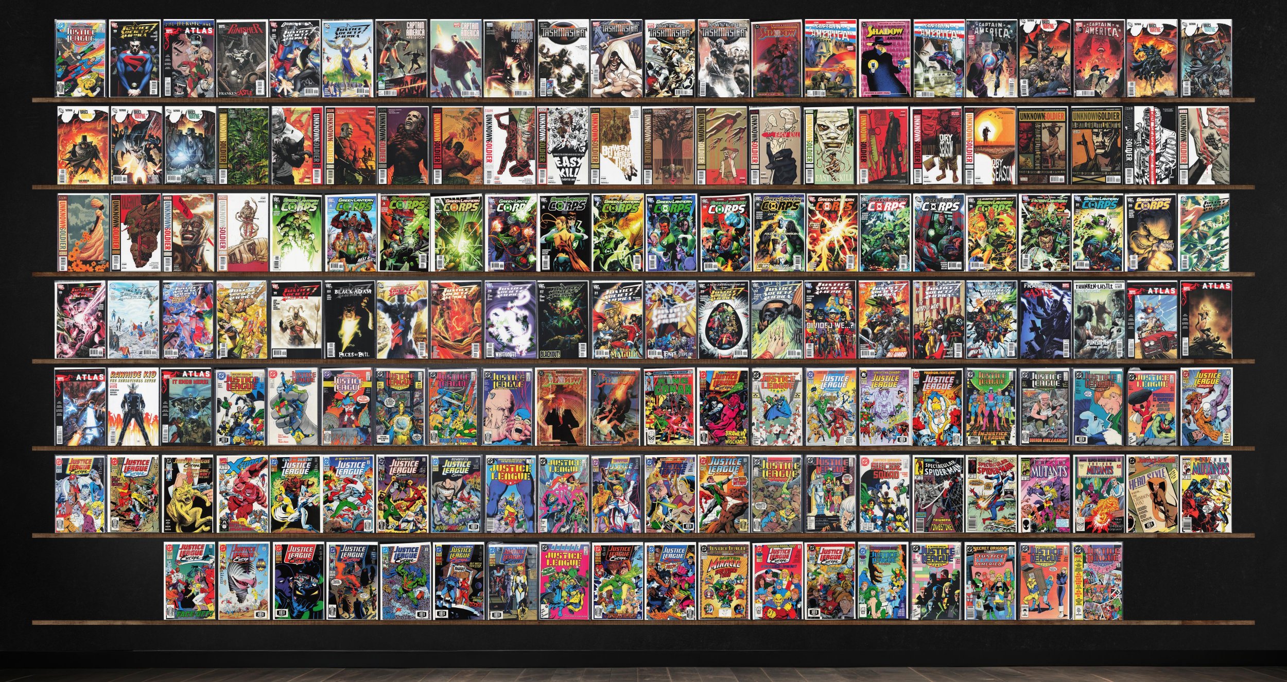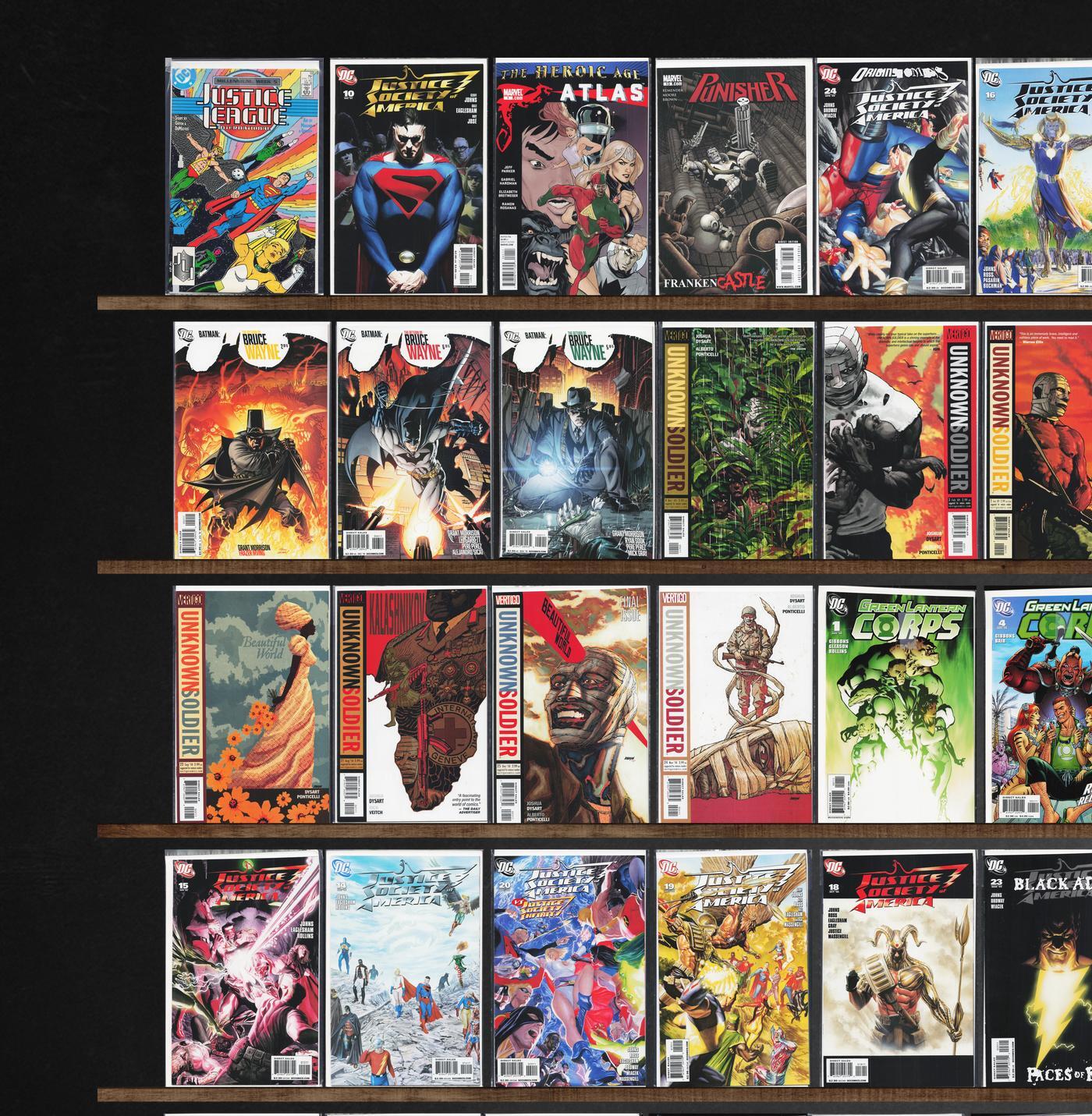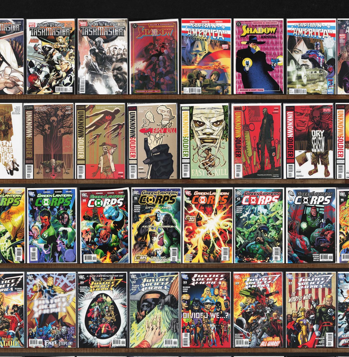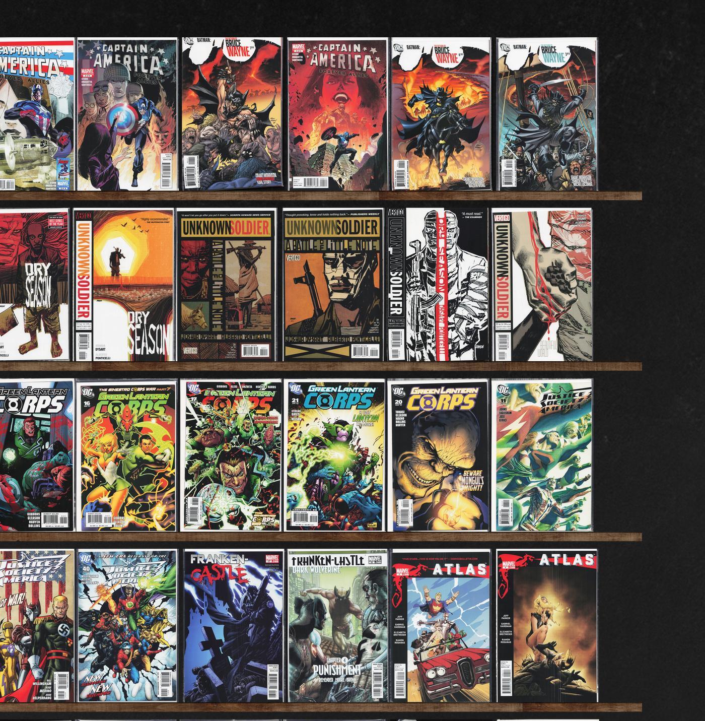 Unknown Soldier, Justice League International, Justice League Europe, Green Lantern Corps, Atlas, Taskmaster, Justice League, Captain America: Patriot, The Shadow, Franken Castle, The Spectacular Spider-Man, The New ... Read More