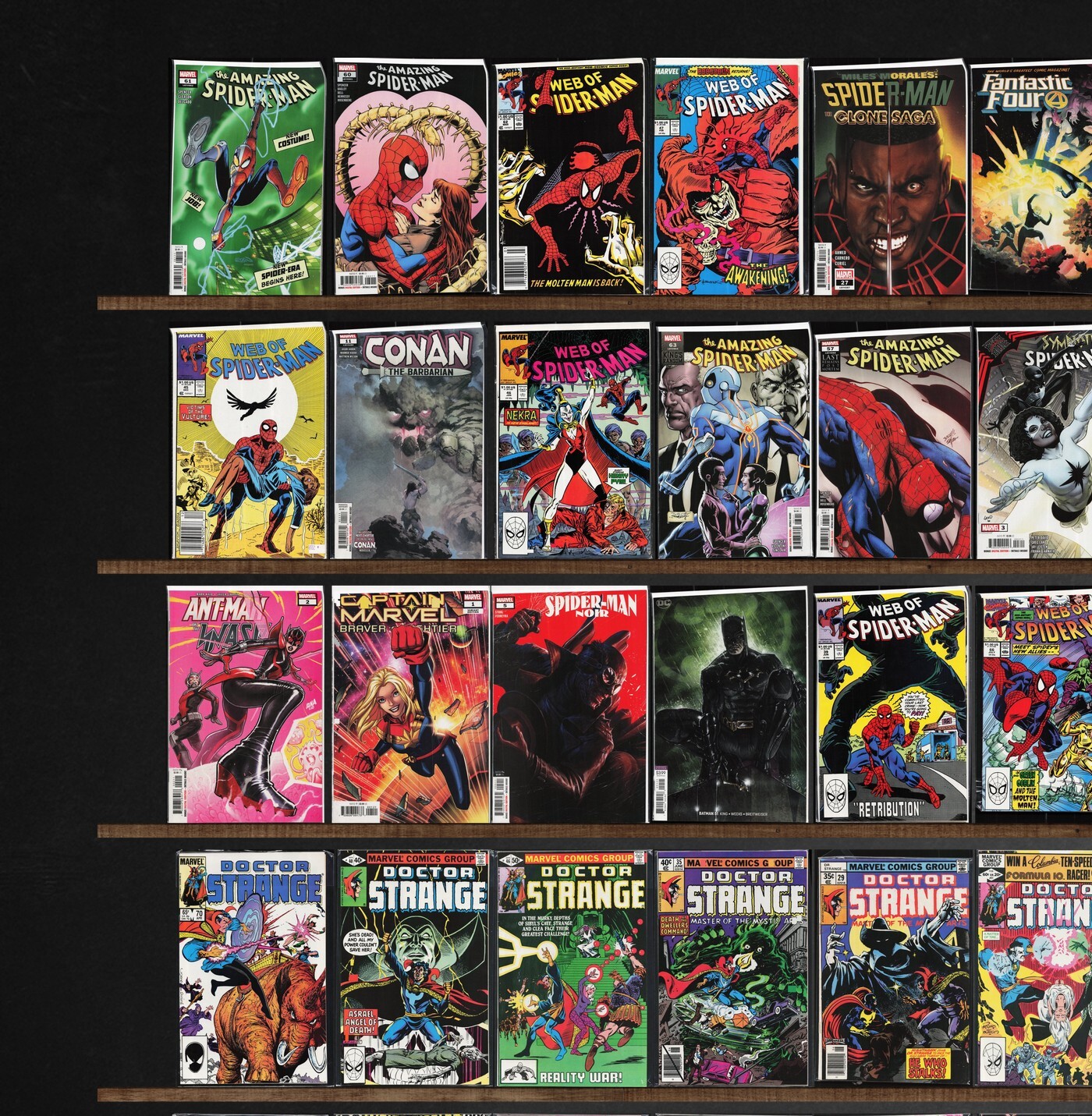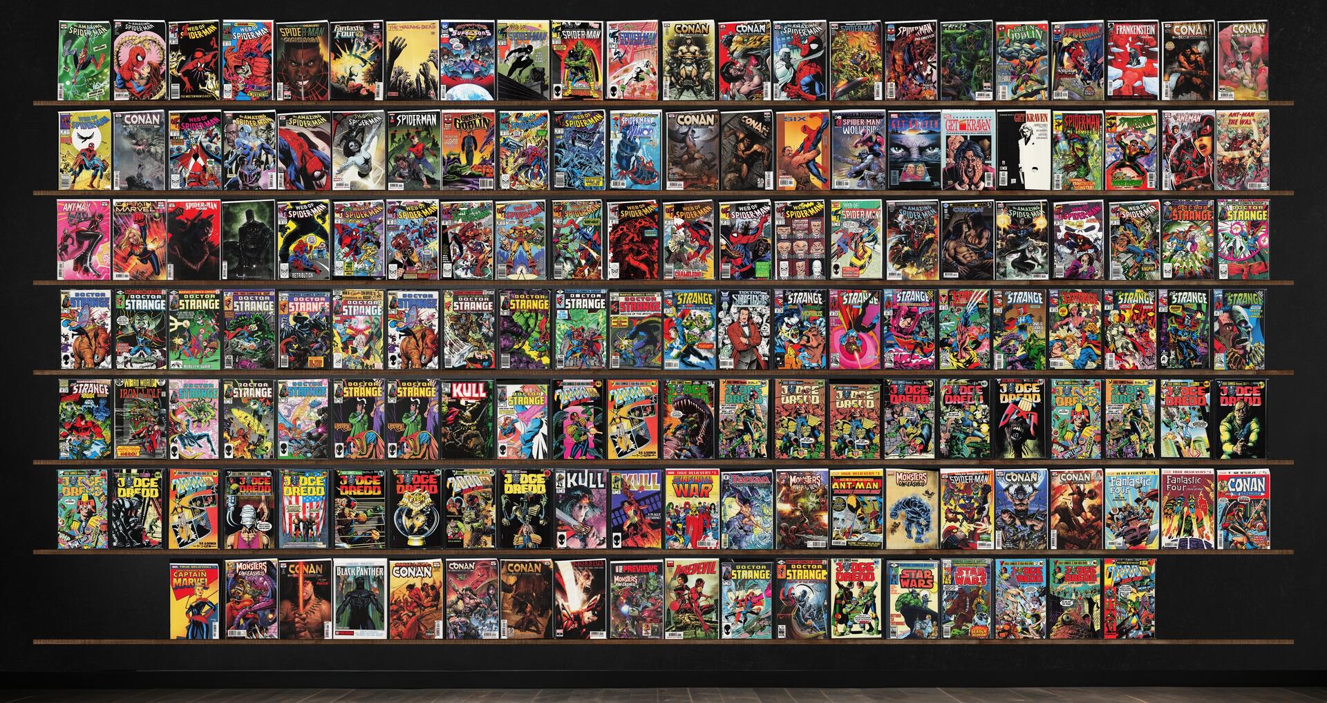 Web Of Spider-Man, Doctor Strange, Conan The Barbarian, The Amazing Spider-Man, Eden, Spider-Man Unlimited, Miles Morales: Spider-Man, Spider-Man&, Kull The Conqueror, Monsters Unleashed!, Green Goblin, Star Wars, Fantastic Four, The Walking Dead, The Immortal Hulk, Frankenstein Undone, Spider-Man, Marvel Team Up, Ultimate Six, Spider-Man Noir, Batman, Wonder Woman/Conan, Weird Worlds, Tarzan, Morbius