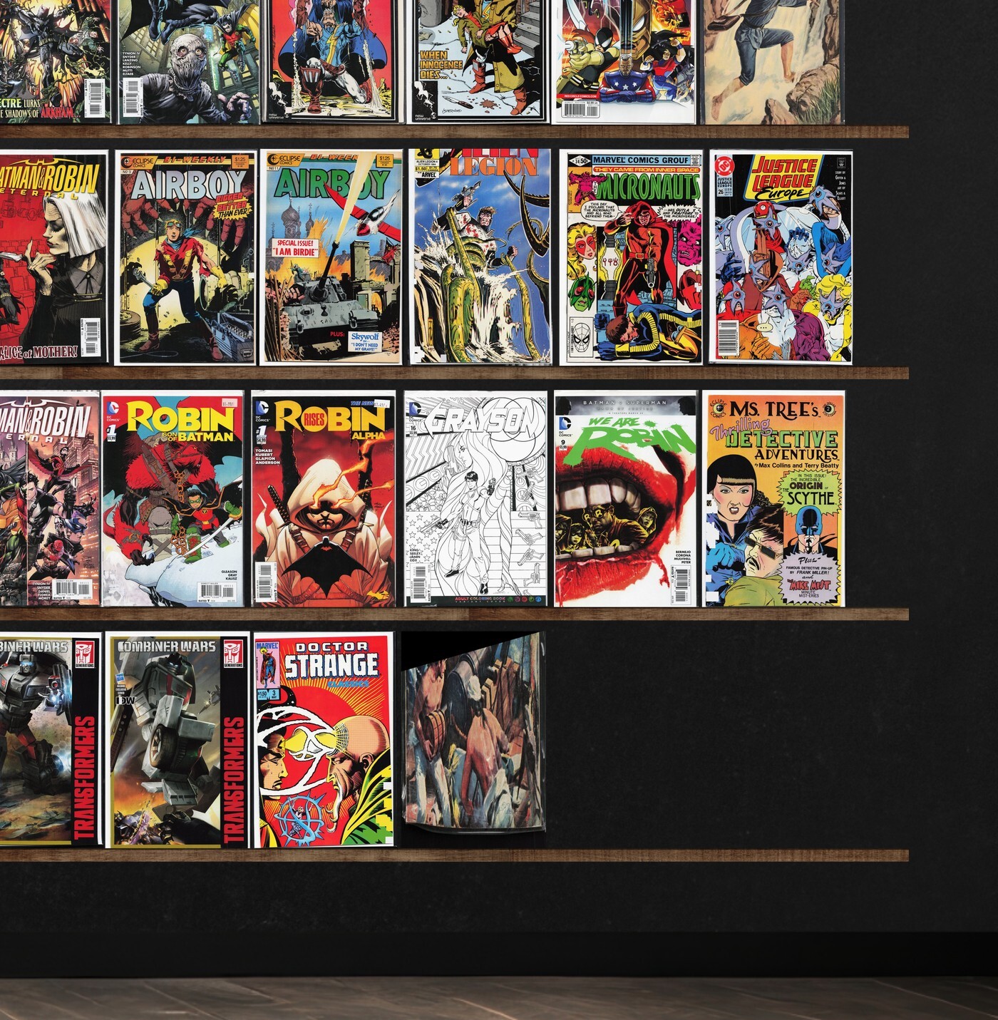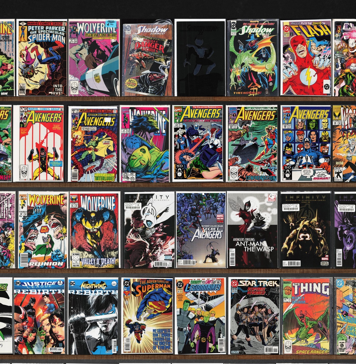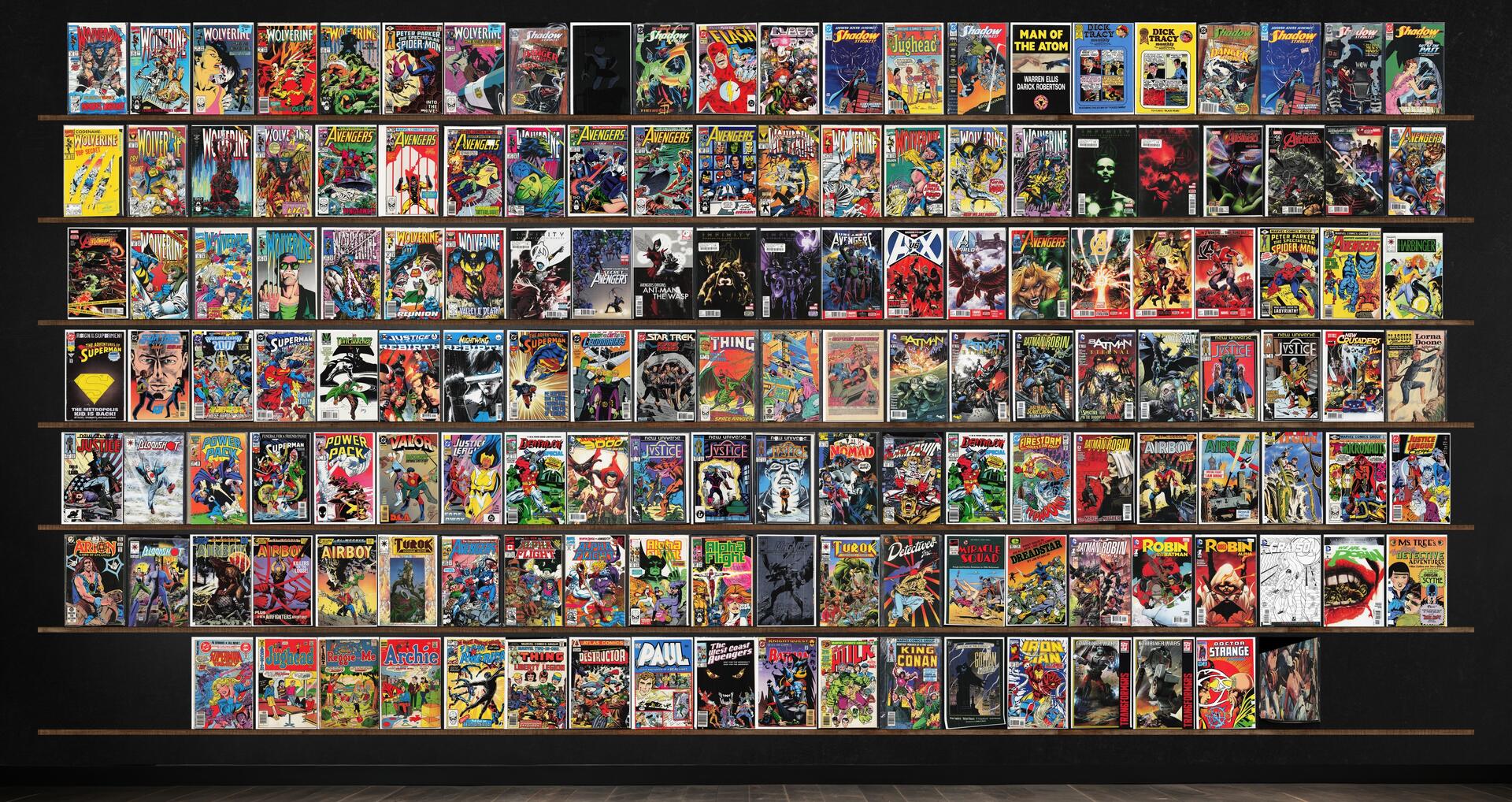 Wolverine, Avengers, The Avengers, The Shadow Strikes, Justice, Airboy, Batman Eternal, Alpha Flight, The Spectacular Spider-Man, Jughead, Dick Tracy Monthly/Weekly, All New, All Different Avengers, Uncanny Avengers, Adventures Of Superman, Bloodshot, Power Pack, Deathlok Special, Turok, Dinosaur Hunter, The Transformers, Shadowhawk Ii, The Flash, Cyberforce, Secret Avengers, Avengers Vs. X-Men, Avengers World, New Avengers, Harbinger, Armageddon 2001, Timewalker, Legionnaires, Star Trek, The Thing, Legion Of Super Heroes, Superman, Valor, Justice League International, Justice League 3000, Nomad, Daredevil, Alien Legion, Micronauts, Justice League Europe, Alpha Flight Special, Magnus Robot Fighter, Detectives, Inc., The Miracle Squad, Grayson, We Are Robin, Eden, The Superman Family, Reggie And Me, Archie, Team America, Marvel Two In One, Paul (1978), West Coast Avengers, Detective Comics, The Incredible Hulk, King Conan, Iron Man, Doctor Strange Classics