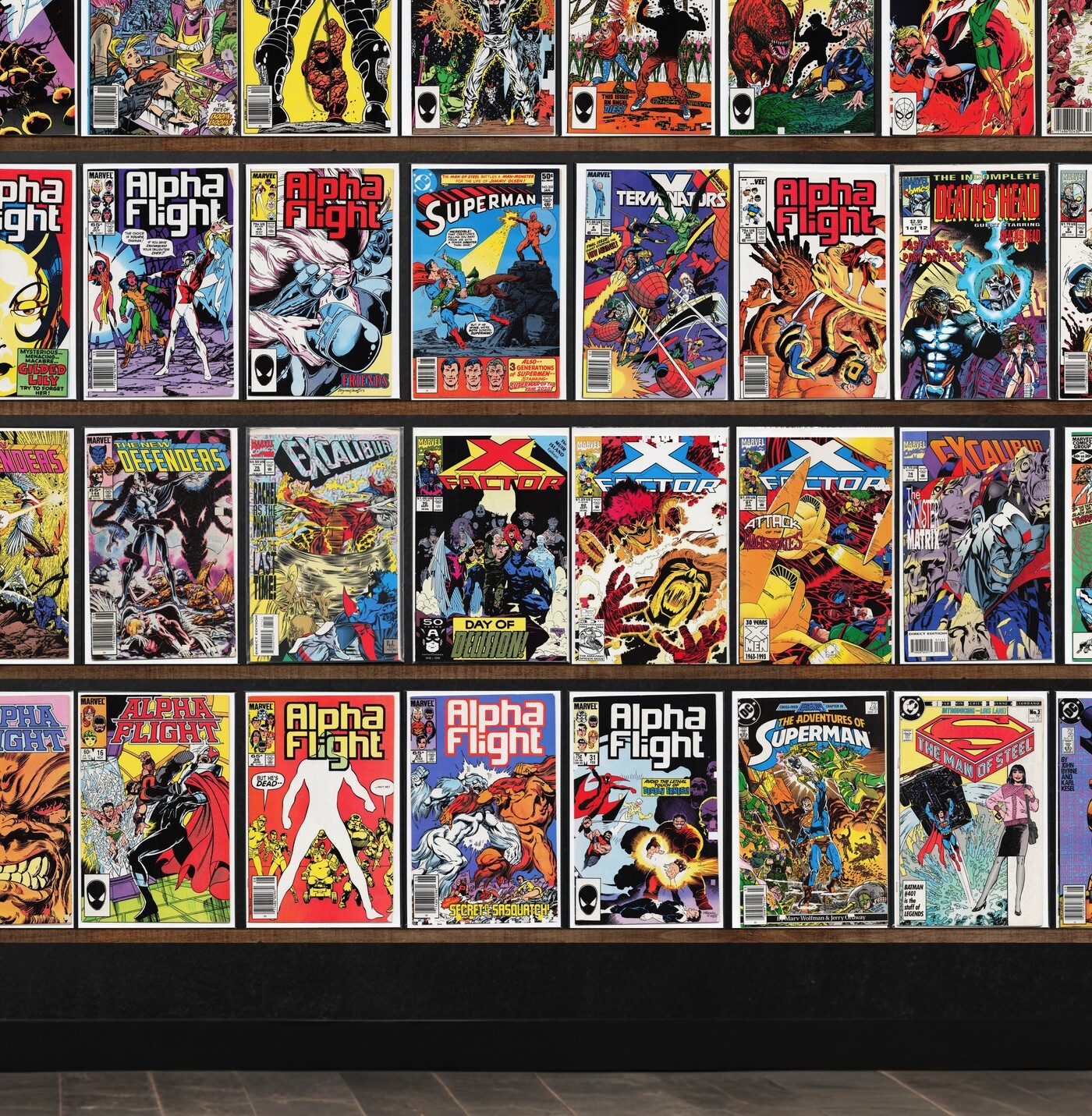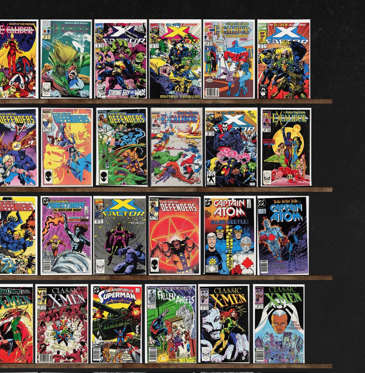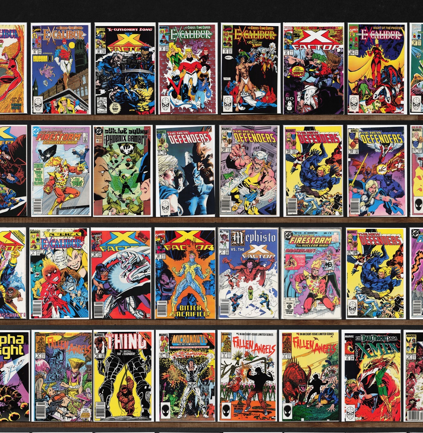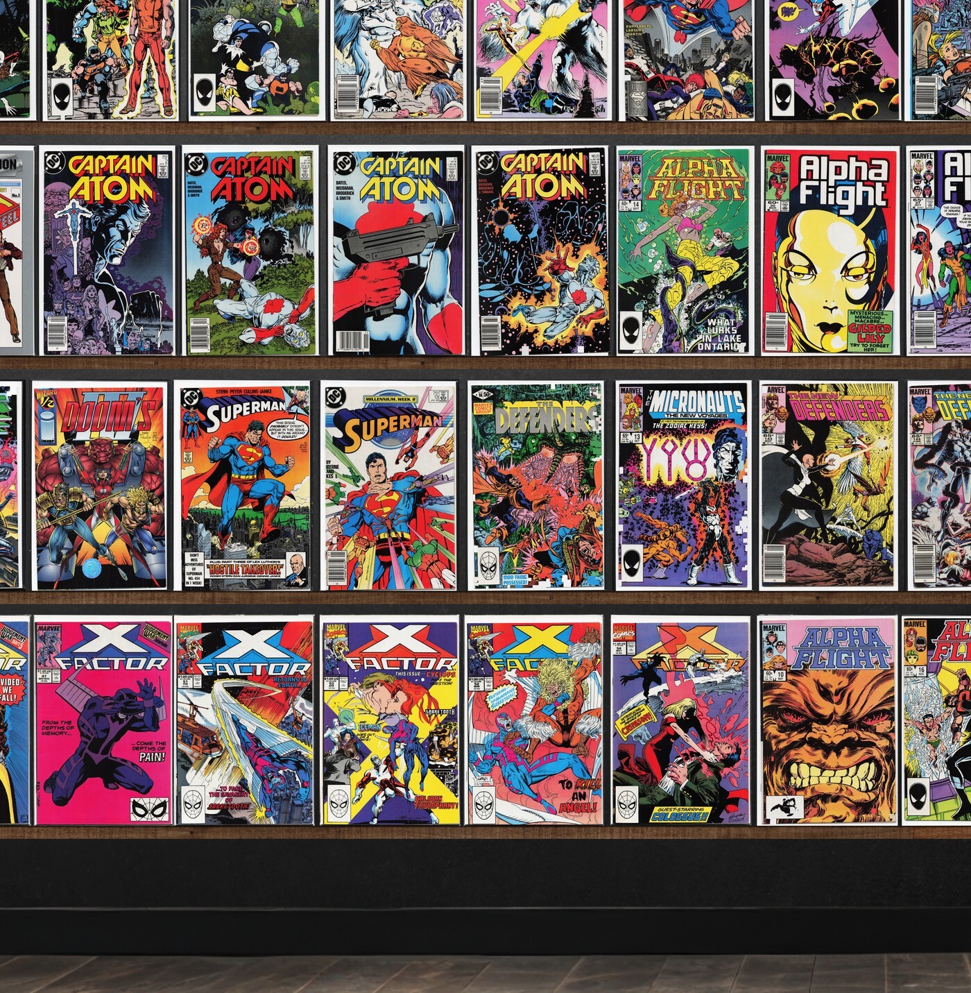 X-Factor, Excalibur, Alpha Flight, The Defenders, Captain Atom, Marvel Comics Presents, Adventures Of Superman, Superman, Classic X-Men, Fallen Angels, Deathblow, Suicide Squad, The Incredible Hulk, Doom'S Iv, Mephisto Vs. ..., Alpha Flight Annual, Doom Patrol, The Thing, Superman Annual, X-Terminators, Deathlok, Wildc.A.T.S Trilogy, Cybernary, Cyber Force, Dazzler, The Invaders