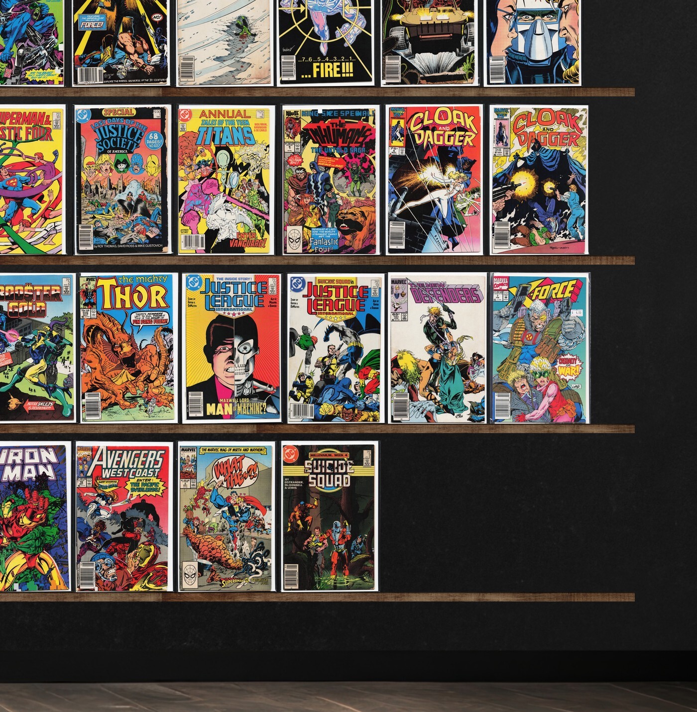 X-Factor, Excalibur, What If...?, Alpha Flight, Marvel Comics Presents, The New Warriors, The New Mutants, Ghost Rider, Dc Comics Presents, Cloak And Dagger, Thor, The Mighty Thor, Fantastic Four, X-Factor Annual, What If?, Sectaurs, The Avengers Annual, The Avengers, Justice League International, X-Force, Knights Of Pendragon, Deadman, Batman, Marvel Tales, Blue Beetle, Classic X-Men, Quasar, The Uncanny X-Men, X-Men Annual, Star Blazers, Marvel Fanfare, Booster Gold, The Defenders, Namor, The Sub Mariner, West Coast Avengers, Mark Hazzard: Merc, The Punisher, Iron Man, Avengers West Coast, What The ?!, Suicide Squad