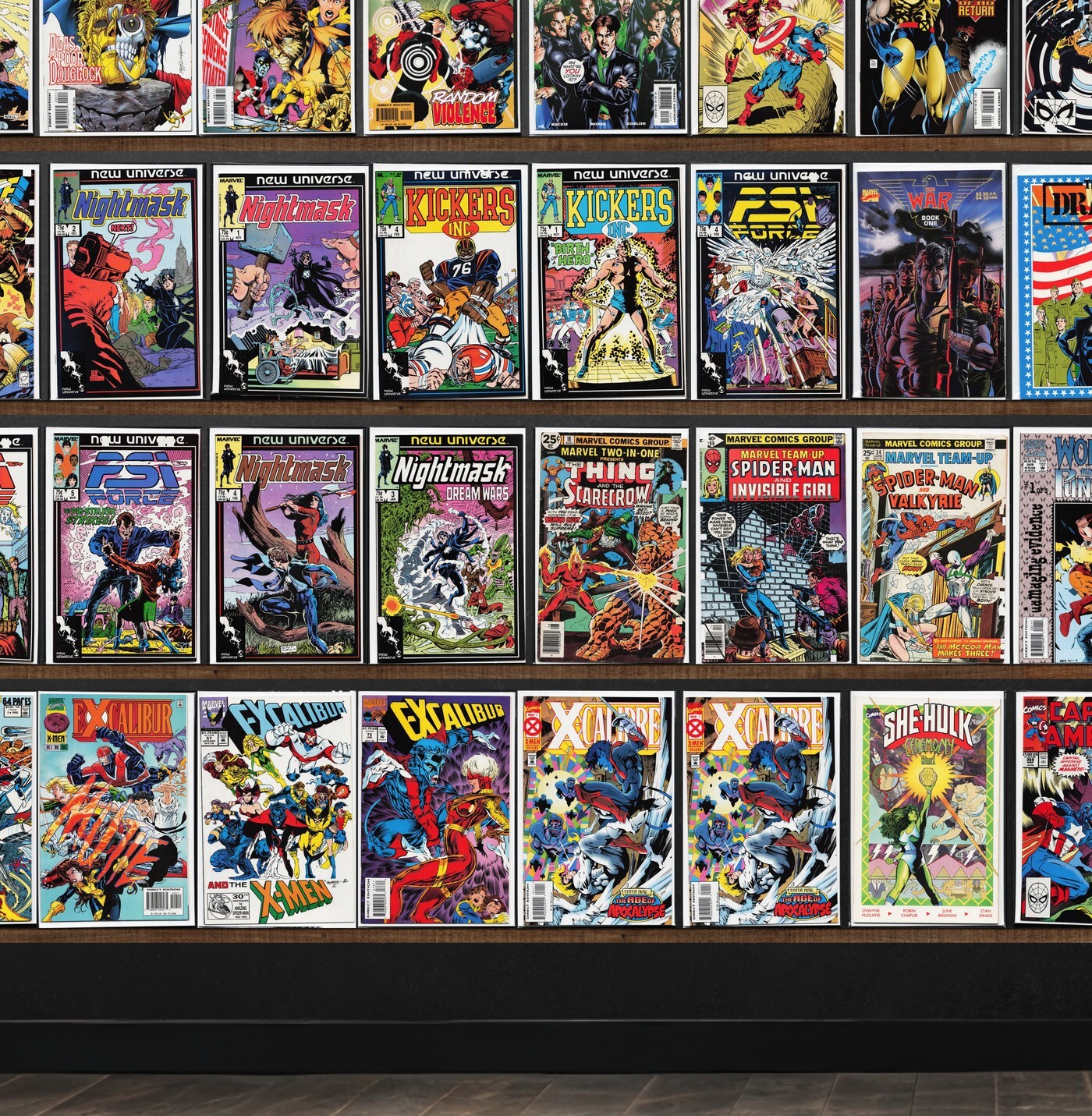 X-Factor, Excalibur, X-Force, Mutant X, Captain America, Nightmask, Wolverine, Kickers, Inc., Psi Force, Factor X, X-Factor Annual, X-Calibre, Wolverine/Gambit: Victims, Marvel Comics Presents, Namor, The Sub Mariner, Marvel Two In One, The War, Marvel Team Up, Excalibur Annual, Origin, Captain America Annual, X-Force Annual, Silver Surfer, She Hulk: Ceremony, The Eternals