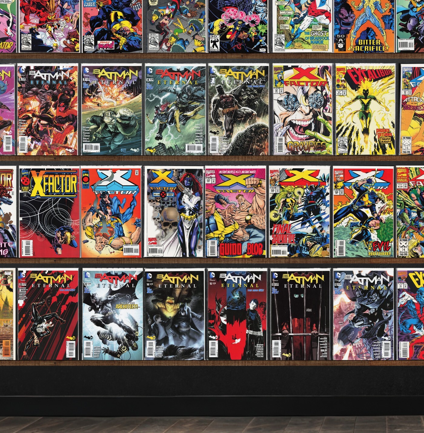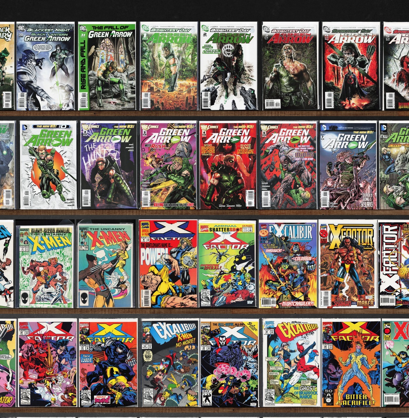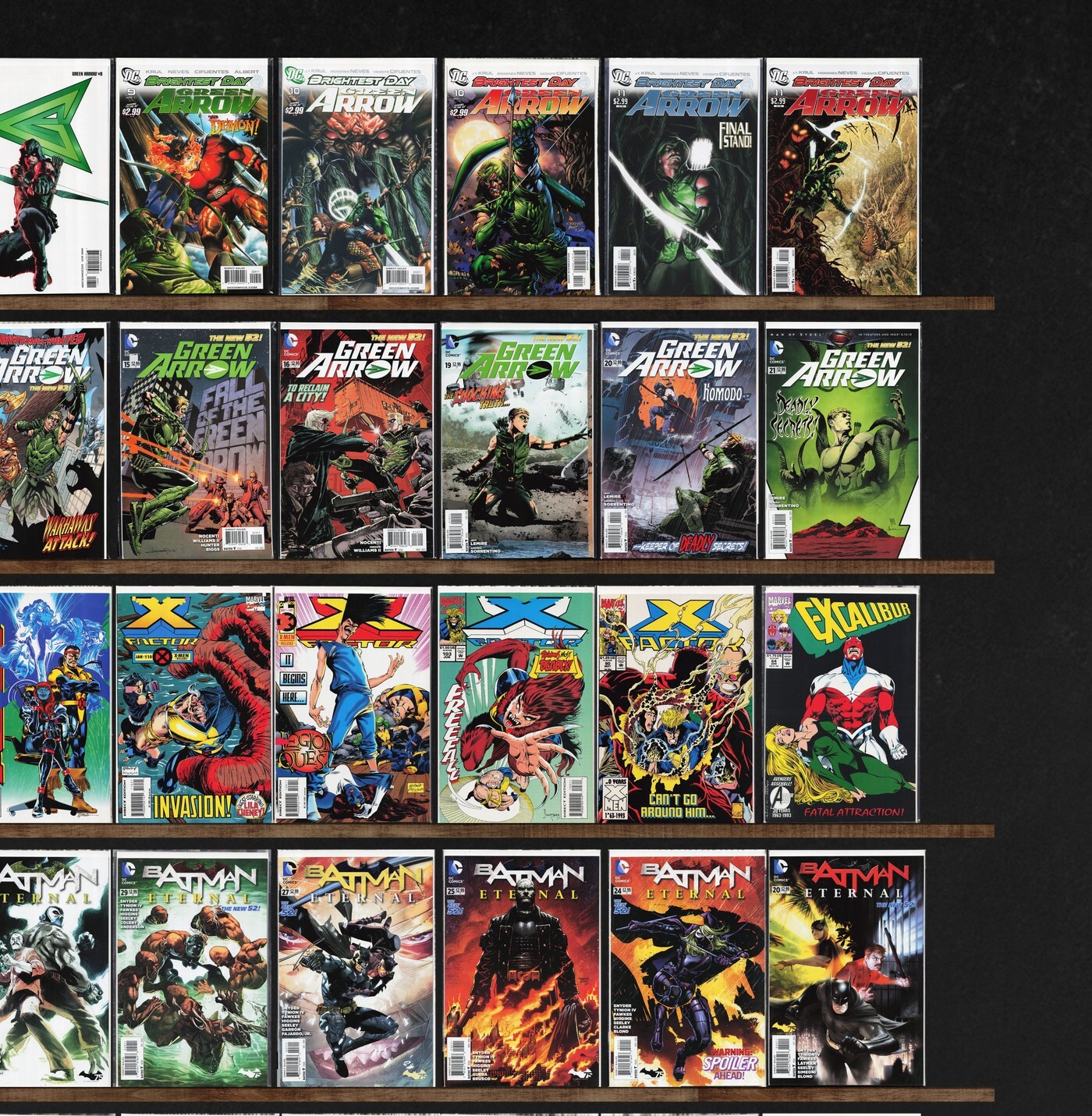 X-Factor, Green Arrow, Batman Eternal, Excalibur, The Uncanny X-Men, X-Factor Annual, Robin, X-Men Annual, Green Arrow/Black Canary, Batman, X-Calibre, Superman, X-Force