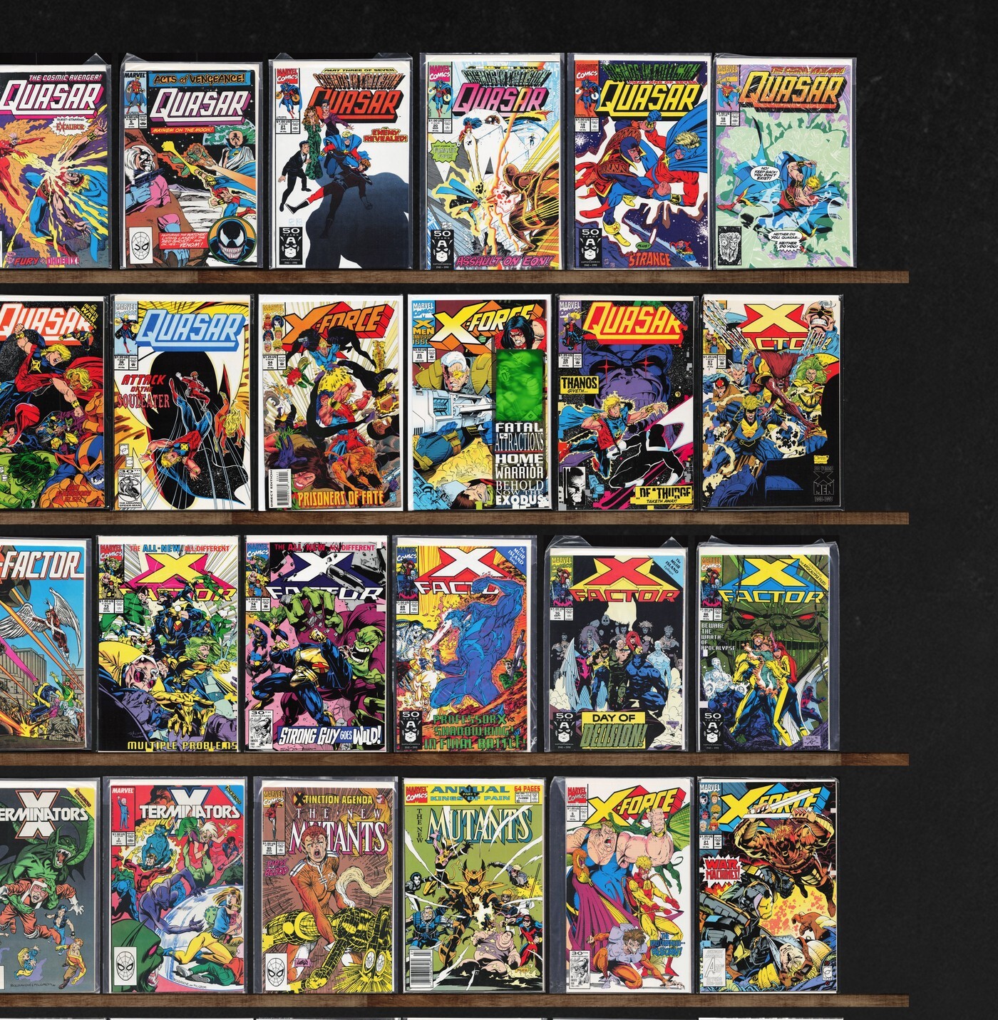 X-Factor, Quasar, The H.A.R.D. Corps, X-Force, Spider-Man 2099, Ravage 2099, The Infinity Gauntlet, Cable, X-Terminators, Firestar, Doom 2099, Old Man Hawkeye, The New Mutants, X-Factor Annual, The Mighty Thor, Eternals, Dc Connect, X-Men Omega (1995), X-Men, X-Force Annual, The Uncanny X-Men, Cyberrad, The Comet, Thor Annual, Marvel Fanfare, Bloodseed, Nomad, Cage, The Incredible Hulk, Deathlok