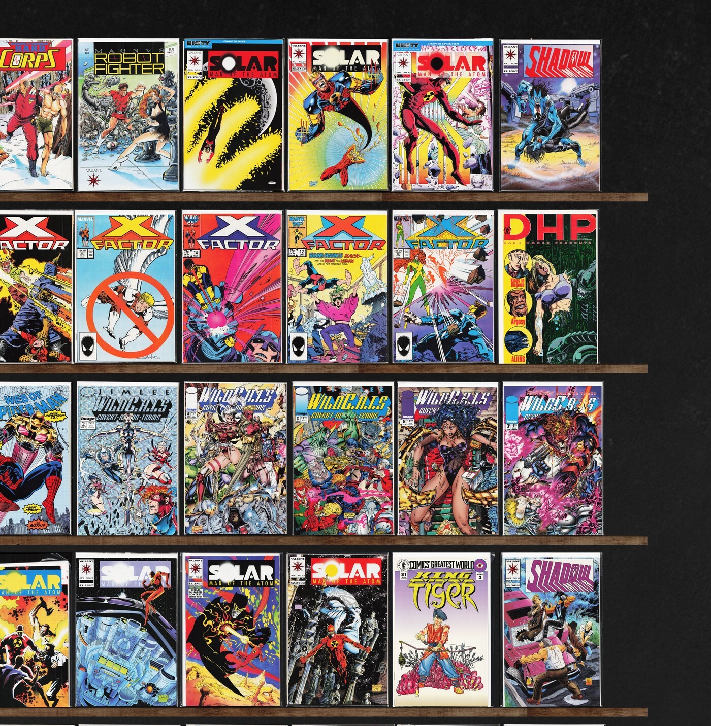 X-Factor, Wolverine, Fantastic Four, The H.A.R.D. Corps, Web Of Spider-Man, Deathlok, Shadowman, X-Men, The New Warriors, Predator: Cold War, Charlemagne, Dark Horse Presents, Wonder Man, Cyber Force, Magnus Robot Fighter, Dreadstar, Marvel Comics Presents, X-O Manowar, Youngblood, B.E.A.S.T.I.E.S. (1994) B.E.A.S.T.I.E.S., Wildc.A.T.S Trilogy, X, Nomad