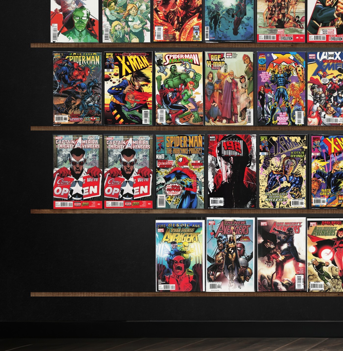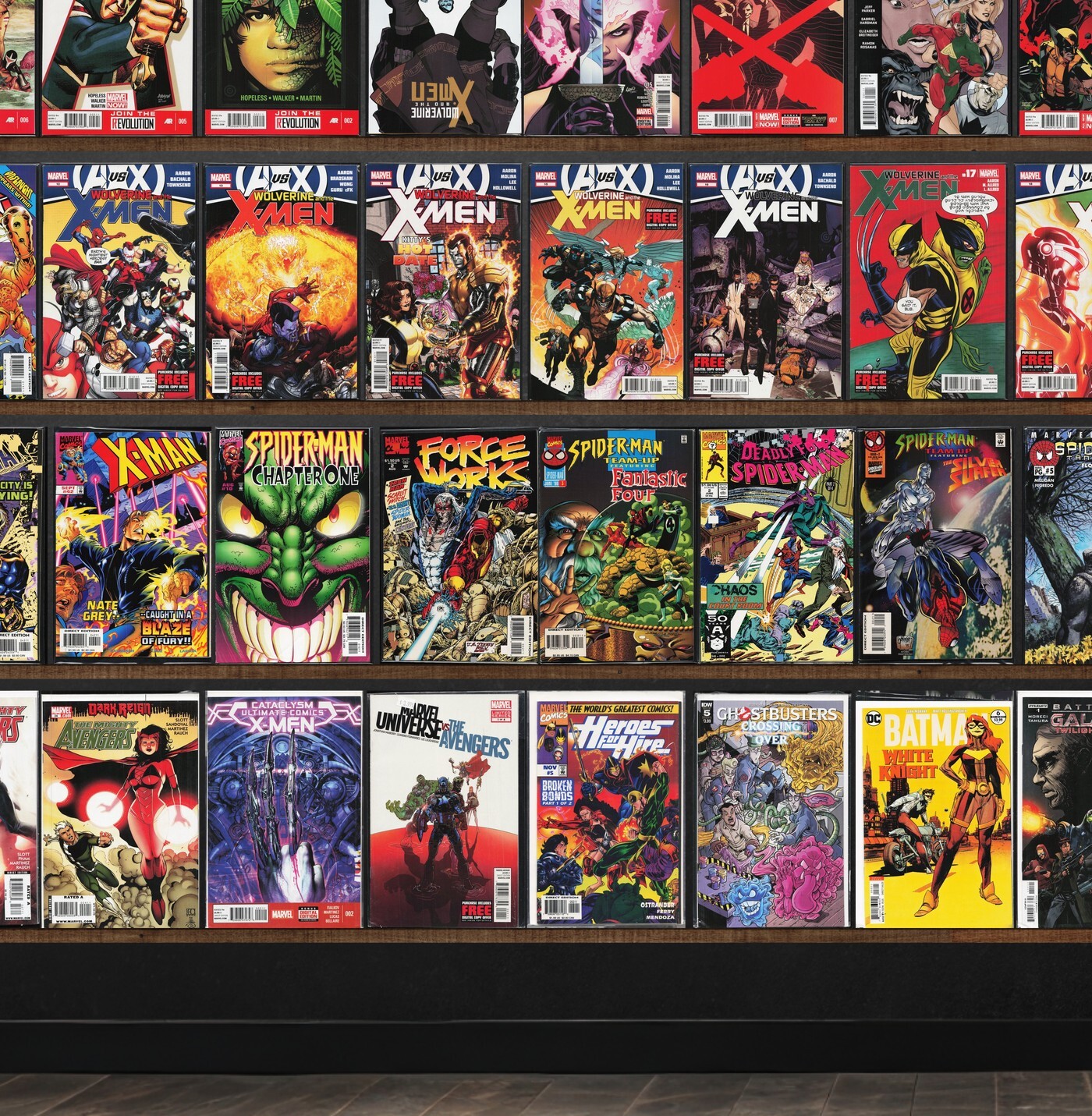 X-Man, Avengers Arena, Force Works, Spider-Man'S Tangled Web, X-Men: Emperor Vulcan, X-Statix, New Avengers, Spider-Man: Chapter One, Spider-Man Team Up, Siege: Embedded, Axis: Revolutions, Spider-Man, Avengers Assemble, Spider-Man Unlimited, Avengers: The Initiative, X-Factor, X-Men: The 198, Uncanny X-Men, Spider-Man Family, The Mighty Avengers, Solo, X-Treme X-Men, Avengers Spotlight, Peter Parker, X-Men Unlimited, Marvel Action, Avengers A.I., Dark Avengers, Starr The Slayer, Eternals, Atlas, A+X, The Ultimates 2, Cataclysm: Ultimate X-Men, Heroes For Hire, Ghostbusters: Crossing Over, Batman: White Knight, Battletide, Detective Comics, Blood Wing, My Greatest Adventure, Mechanoids