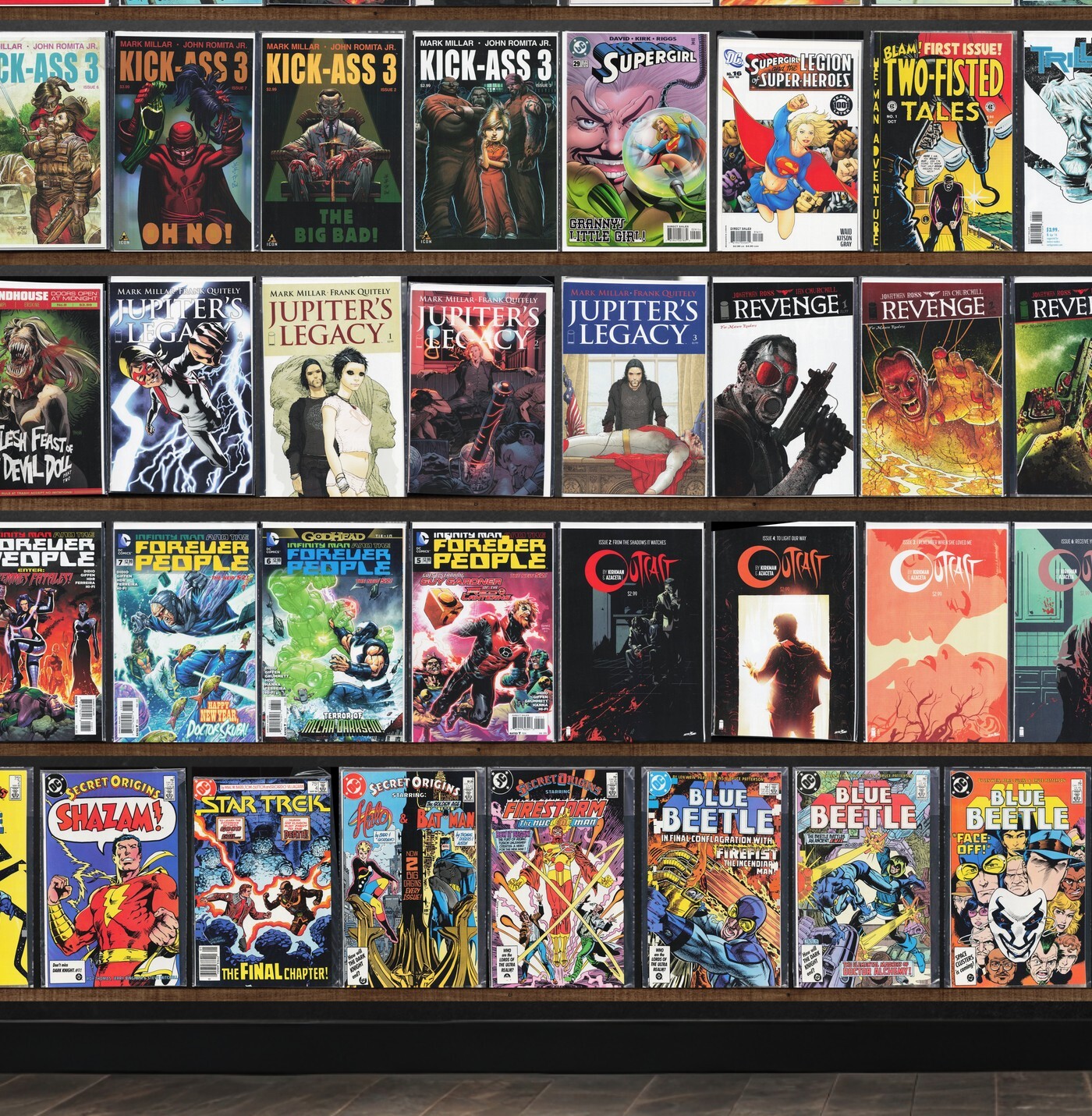 Old Man Hawkeye, Weapon H, Trillium, Supergirl, Superman Unchained, All New X-Men, Kick Ass 3, Blue Beetle, Superman, All New Invaders, Miracleman, Domino, Jupiter'S Legacy, Dead Body Road, Egos, Brain Boy, Revenge, Resurrectionists, Secret Origins, Men Of Wrath, Superboy, Wolfpack, Bad Ass, The Superman Family, Cable And X-Force, Uncanny X-Men, Two Fisted Tales, Robotech Defenders, Star Trek, The Flash, Eden