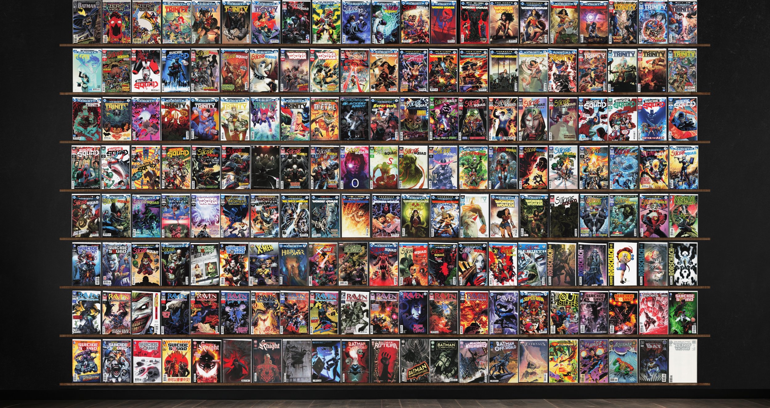 Suicide Squad, Wonder Woman, Trinity, New Suicide Squad, Rorschach, Batman: The Knight, Raven, Batman: Off World, Batman, Super Sons, X-Men, Hellblazer, X-Force, Gamma Flight, Batwoman, New Super Man, Outsiders, Bat ... Read More