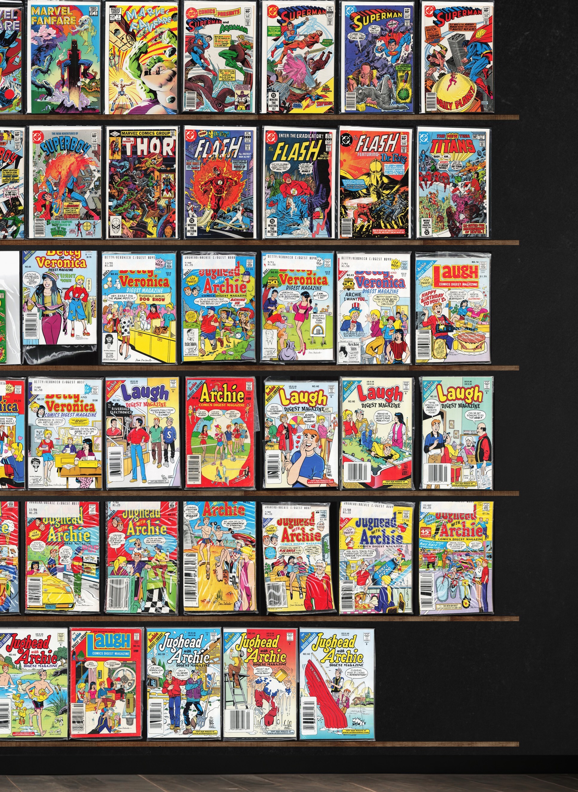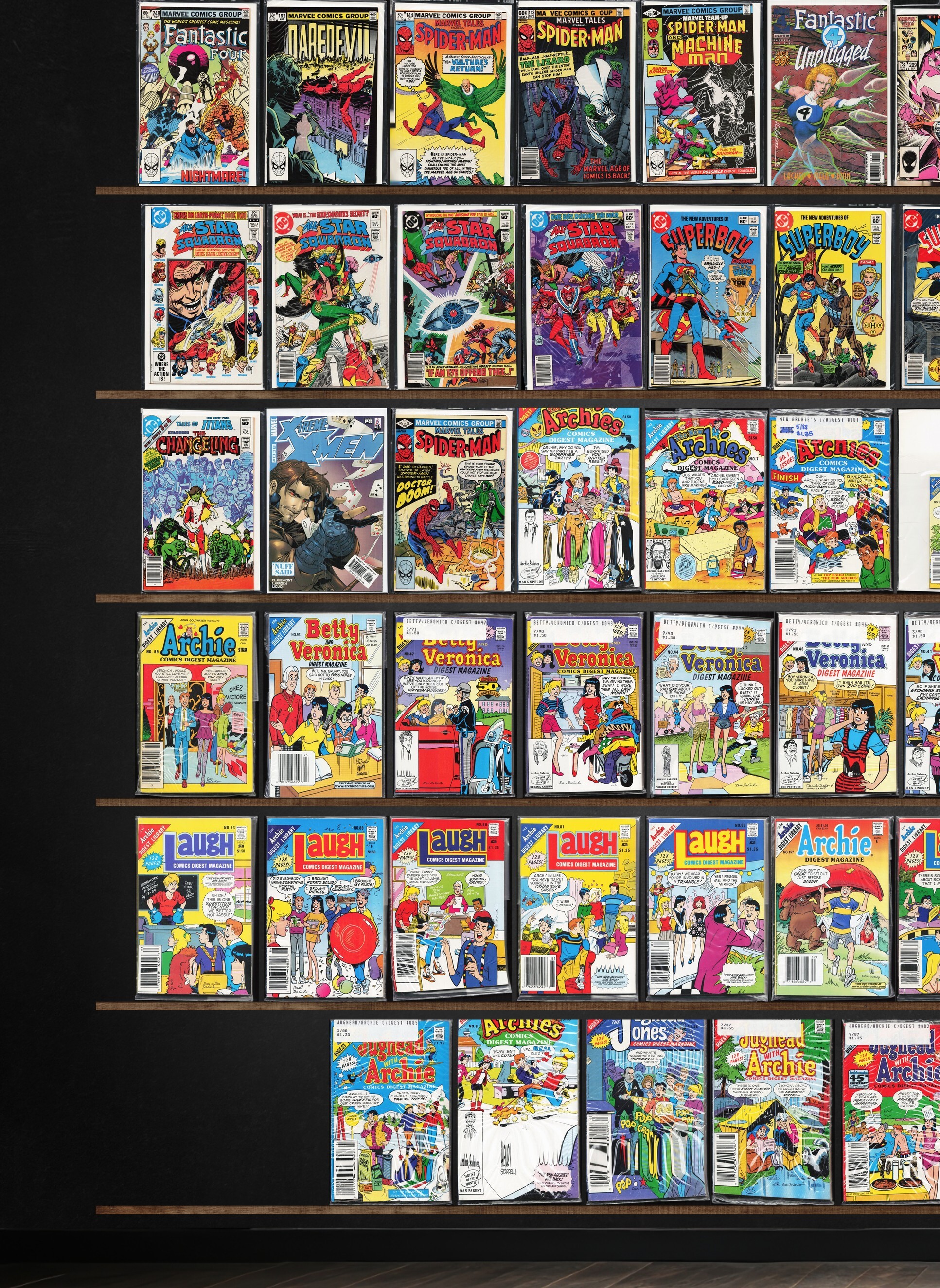 Laugh Comics Digest, Archie Digest Magazine, Marvel Fanfare, All Star Squadron, Marvel Tales, Superman, The Flash, Fantastic Four, Daredevil, Marvel Team Up, Fantastic Four Unplugged, The Uncanny X-Men, Night Force, ... Read More
