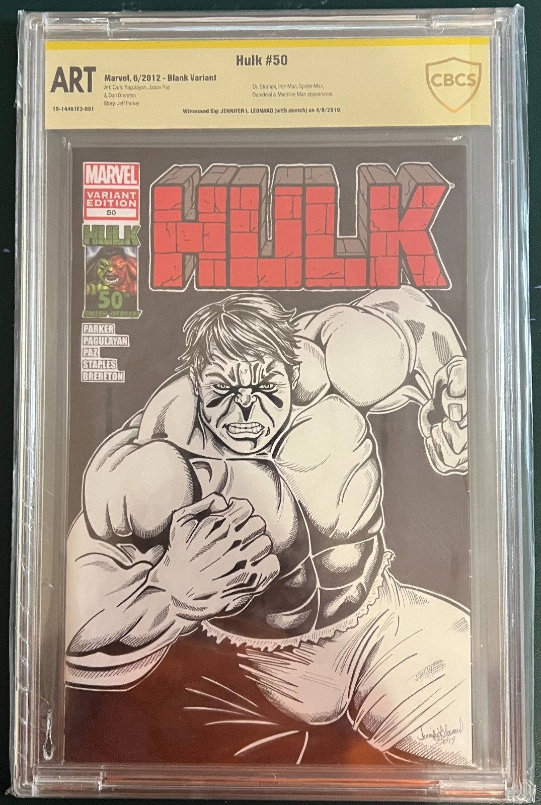 Hulk #50 2012 Jennifer Leonard Hulk Sketch CBCS Slab Art GB02